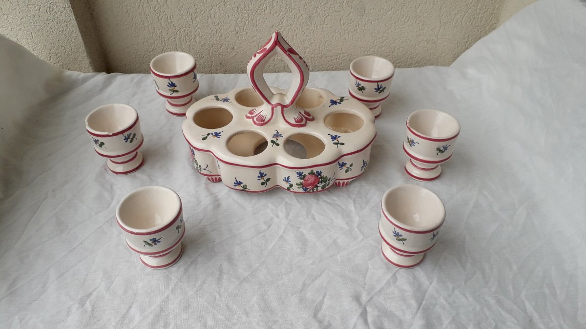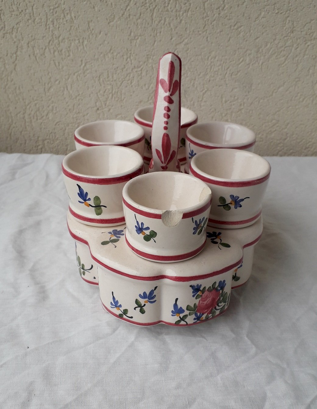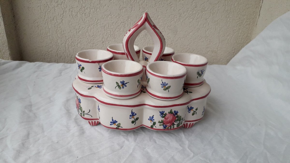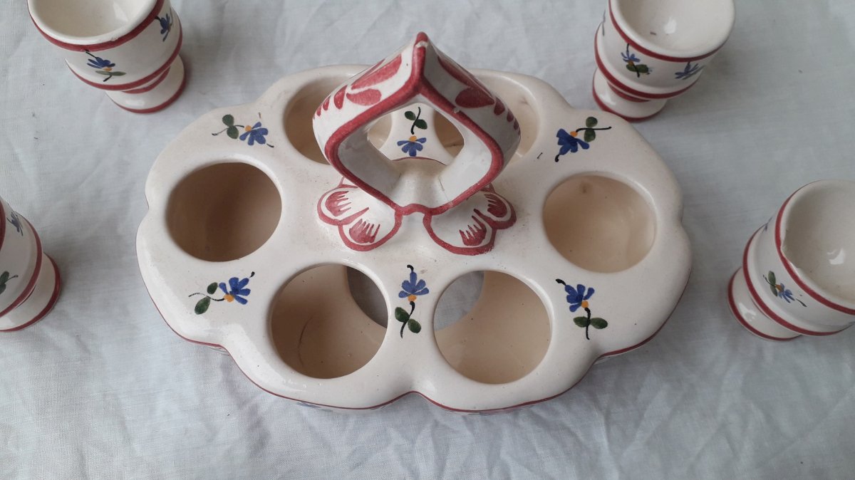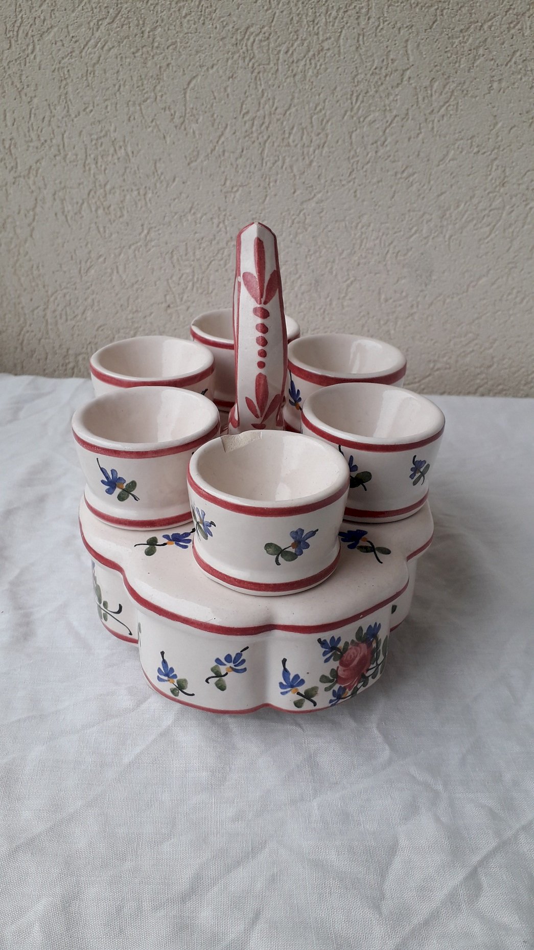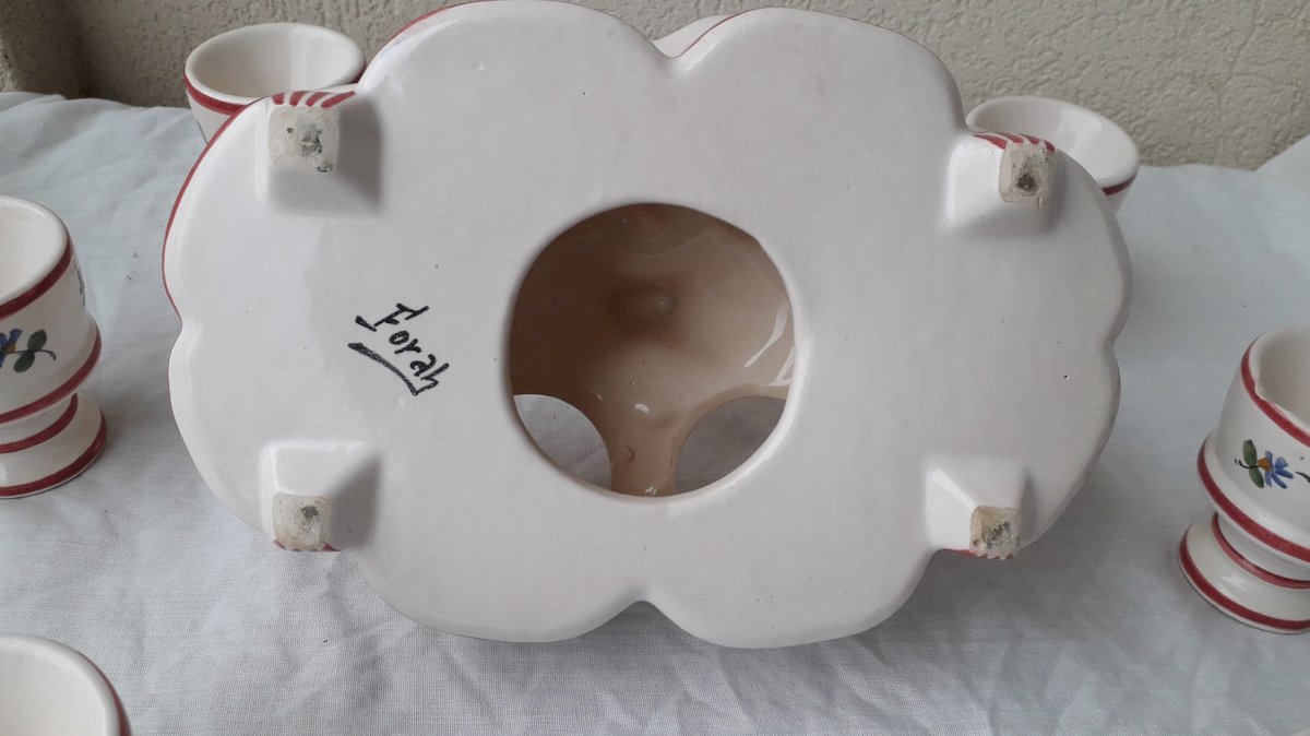 Display stand for 6 egg cups in earthenware, signed "Forah" made by René Anchierri (1905-1987).