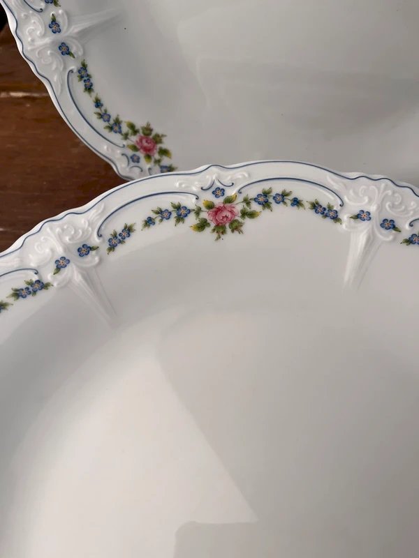 6 elegant flat plates Hutschenreuther model Isabelle in German porcelain.