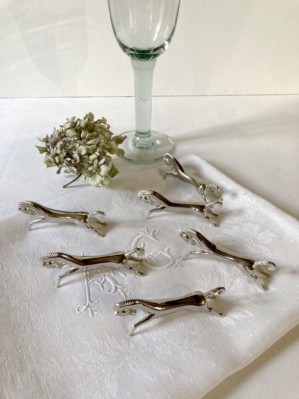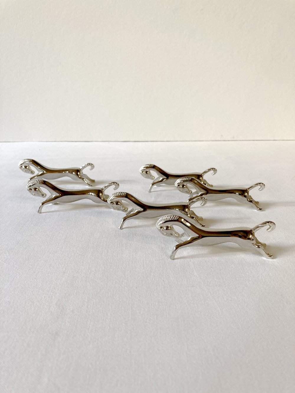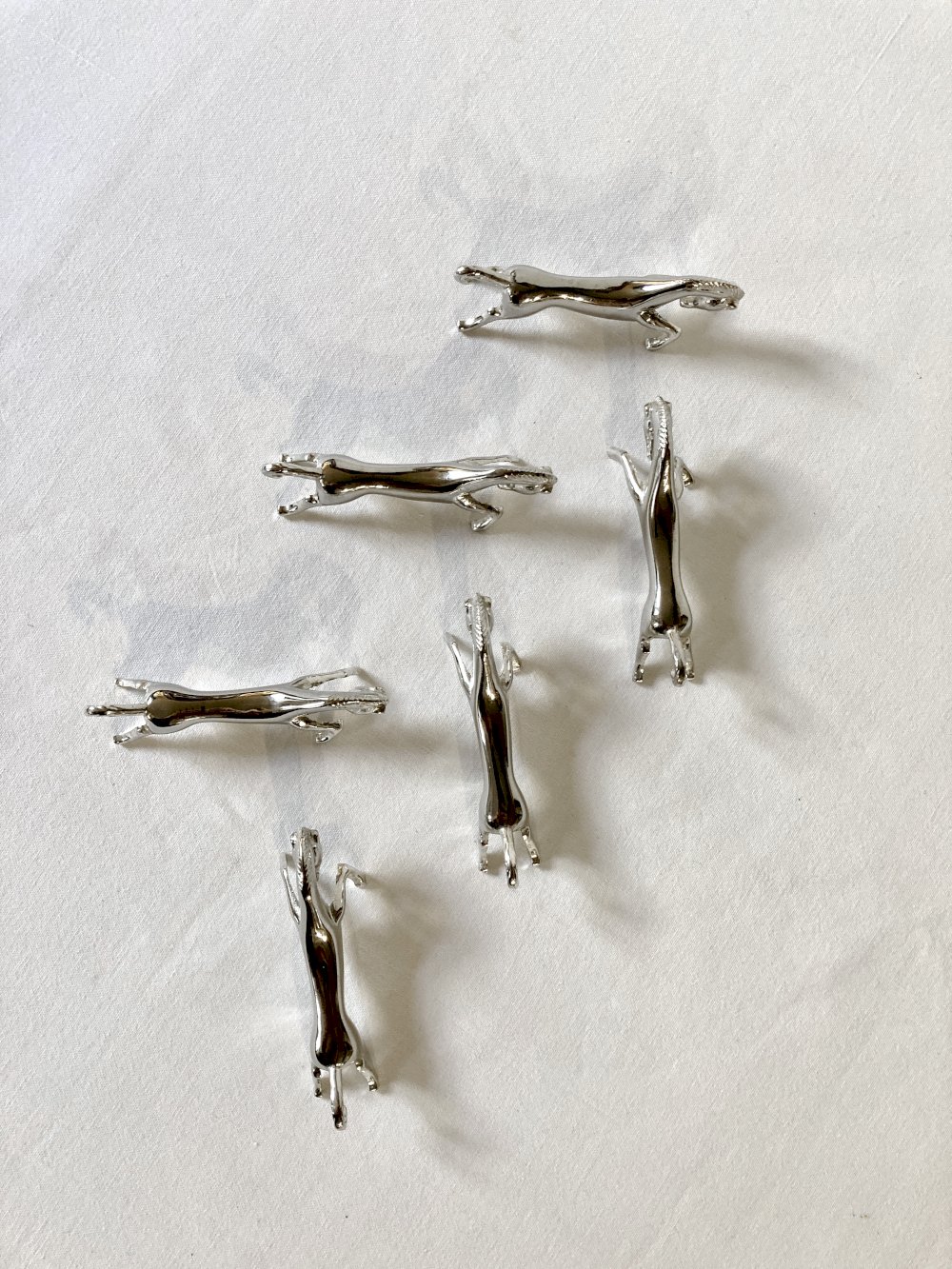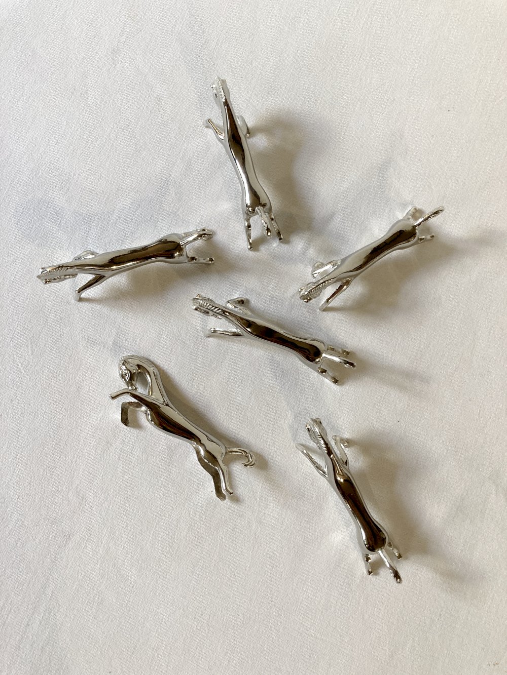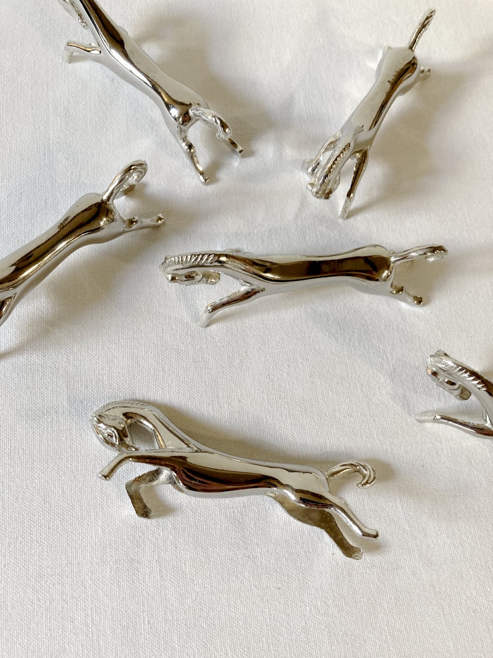 Set of 6 racehorse-shaped knife rests, in silver-plated metal. 1960s.