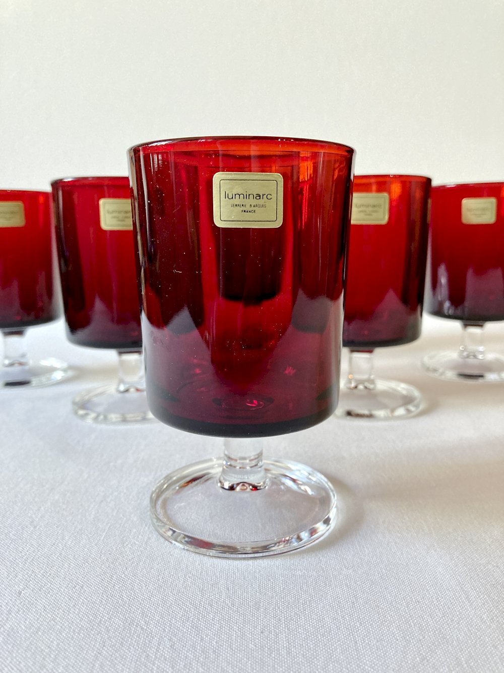6 stemmed glasses Luminarc, model Sweden no. 2, original box Red