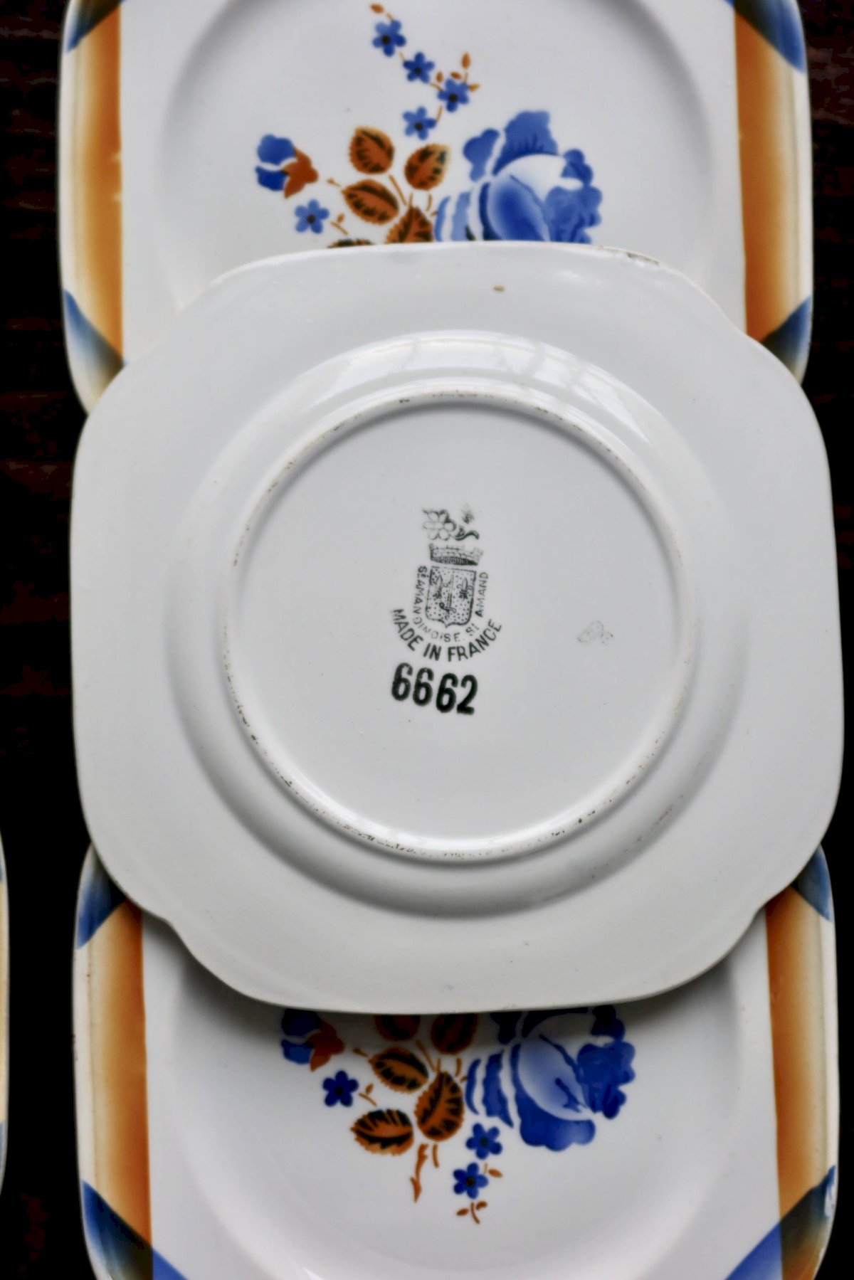 6 vintage square dessert plates in Saint Amandinoise earthenware. Ceramic