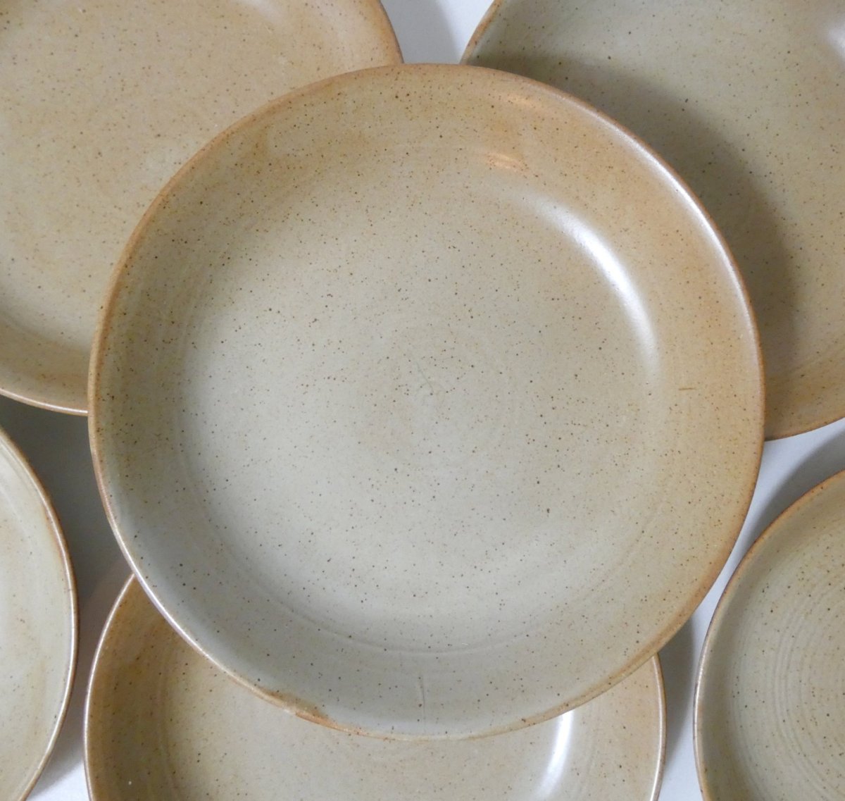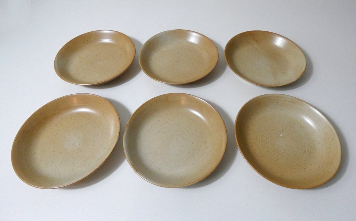 6 deep plates in Village stoneware, 1970s. Diameter: 19 cm. Height: 4 cm. In perfect condition. This is the best in terms of stoneware quality. No sandy or grainy effect. The plates are handmade, each one is unique, with its own nuances. Condition: Used Item that has been used. Item showing some signs of superficial wear, fully operational and functioning correctly. It may be a demonstration model or an item returned to the store after a short period of use. Any possible imperfections. Color: Beige Brand: Village Type: Plate Material: Stoneware (ceramic)