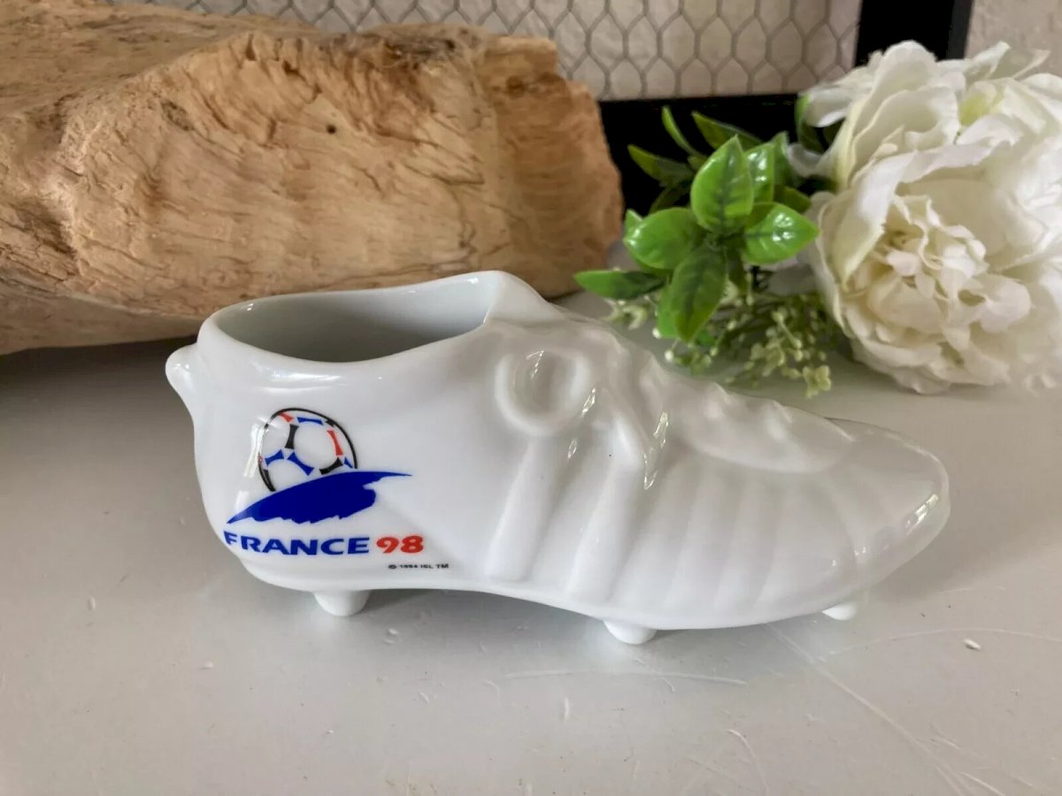 ⚜️ Porcelain Ashtray Yves Deshoulières Apilco World Cup France 98 Footix ⚜️ Length 14 cm Color: White Type: Ashtray Country of origin: France