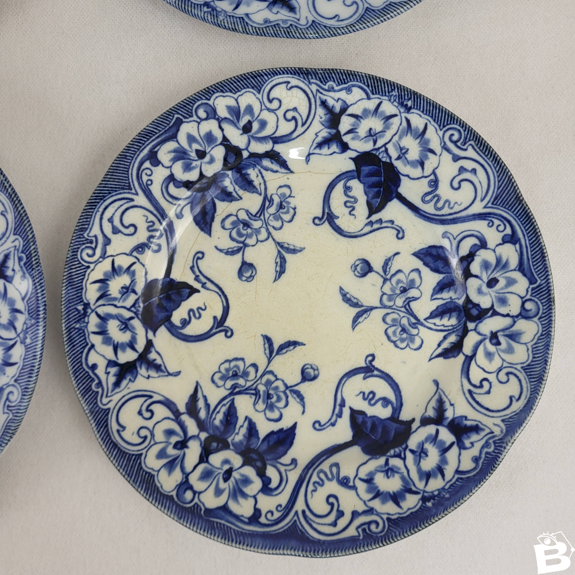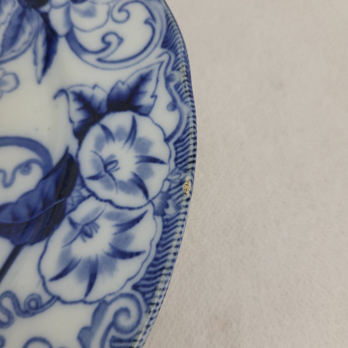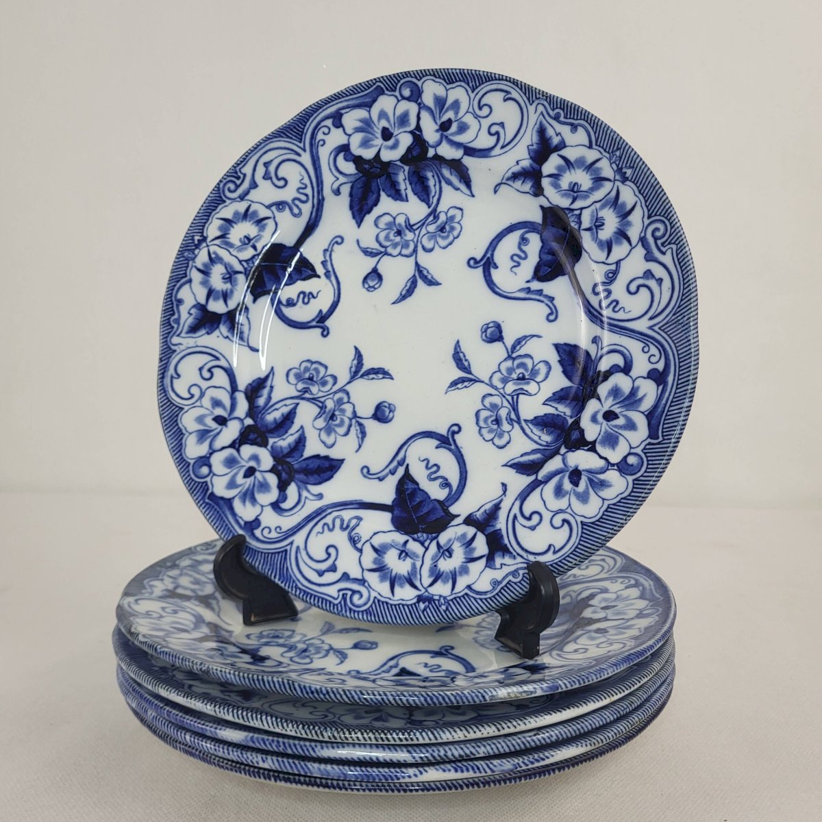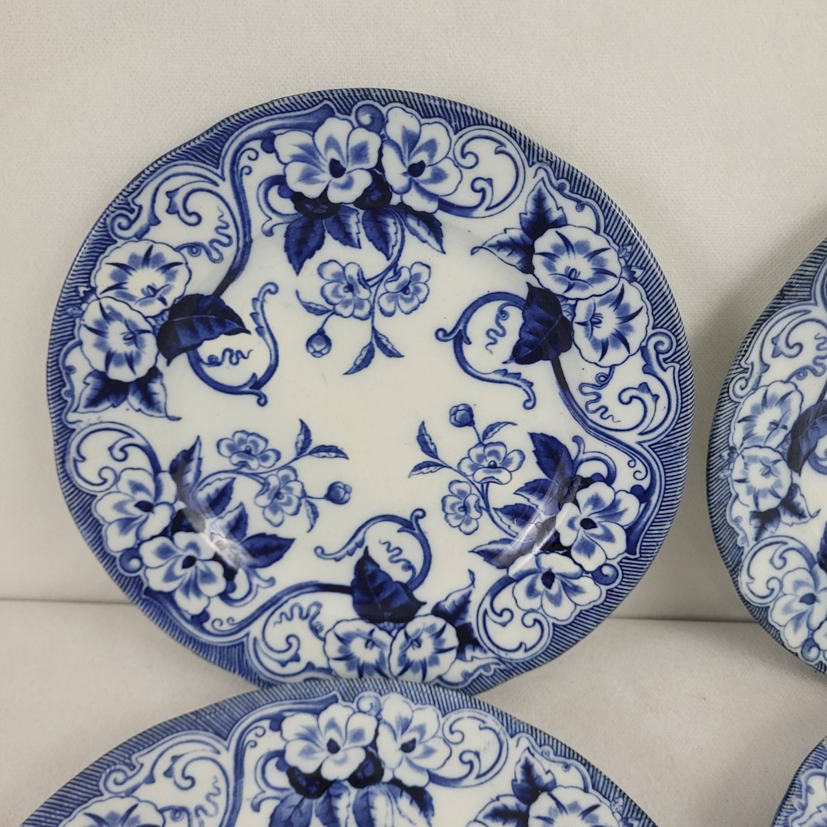 6 flat plates Creil & Montereau Flora. 6 flat faience plates from Creil & Montereau model Flora, 19th century. Diameter 23 cm. Height 2.2 cm. One chip on the set of 6 and one earthenware plate. Chips on the additional plate. Normal use and age. Careful packaging and fast delivery. L: 23 W: 23 H: 2