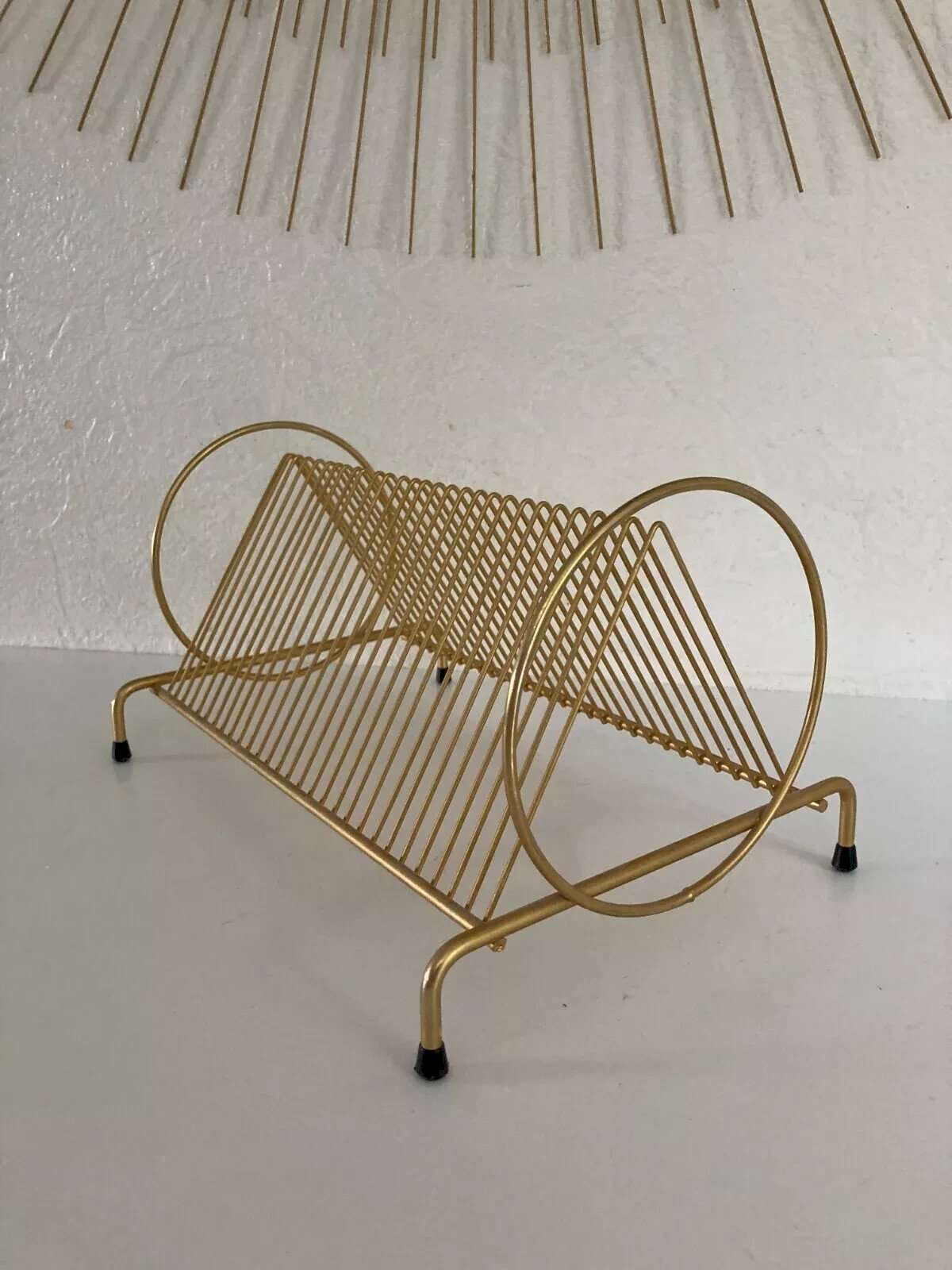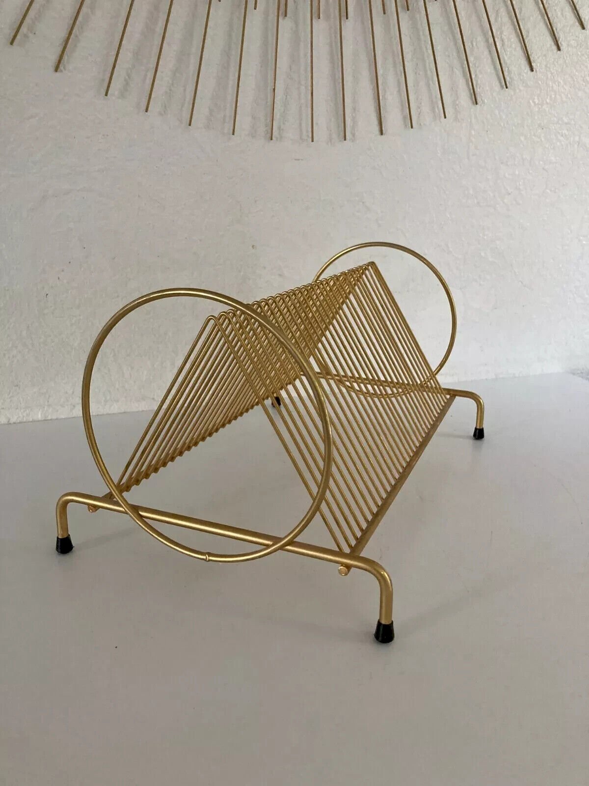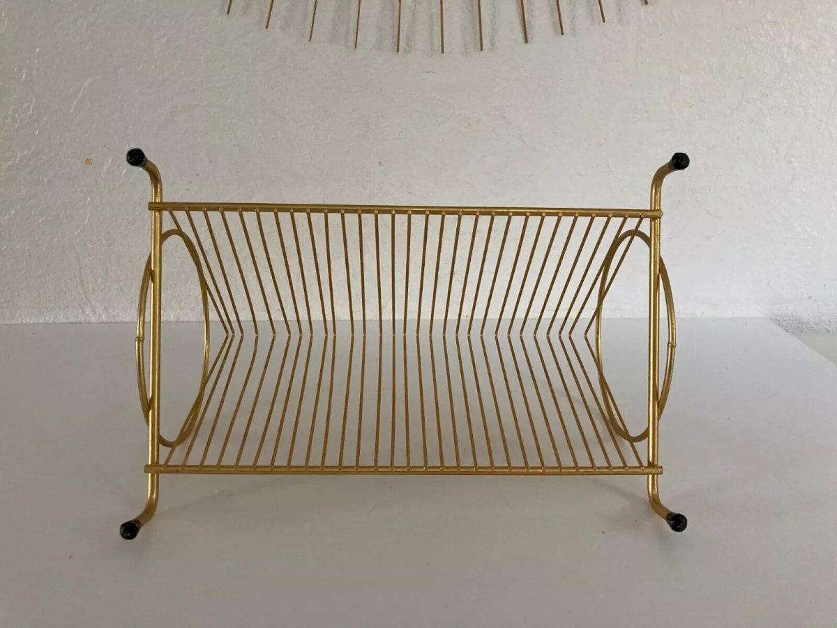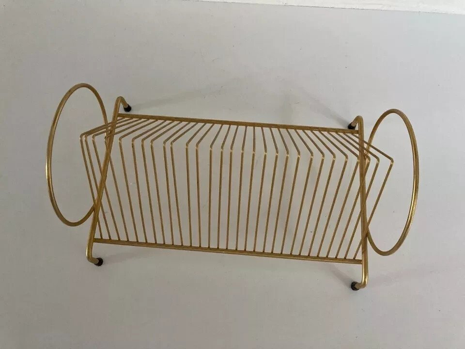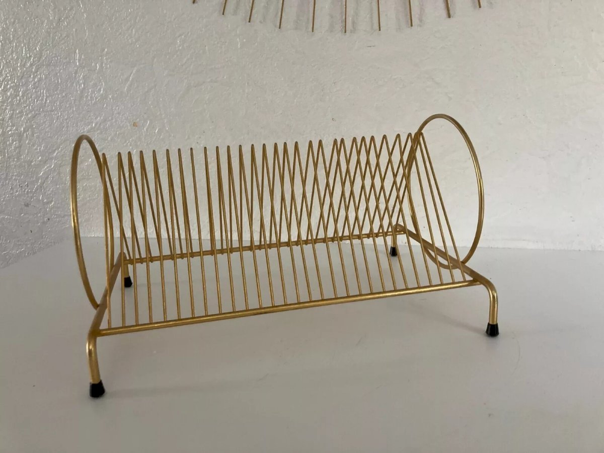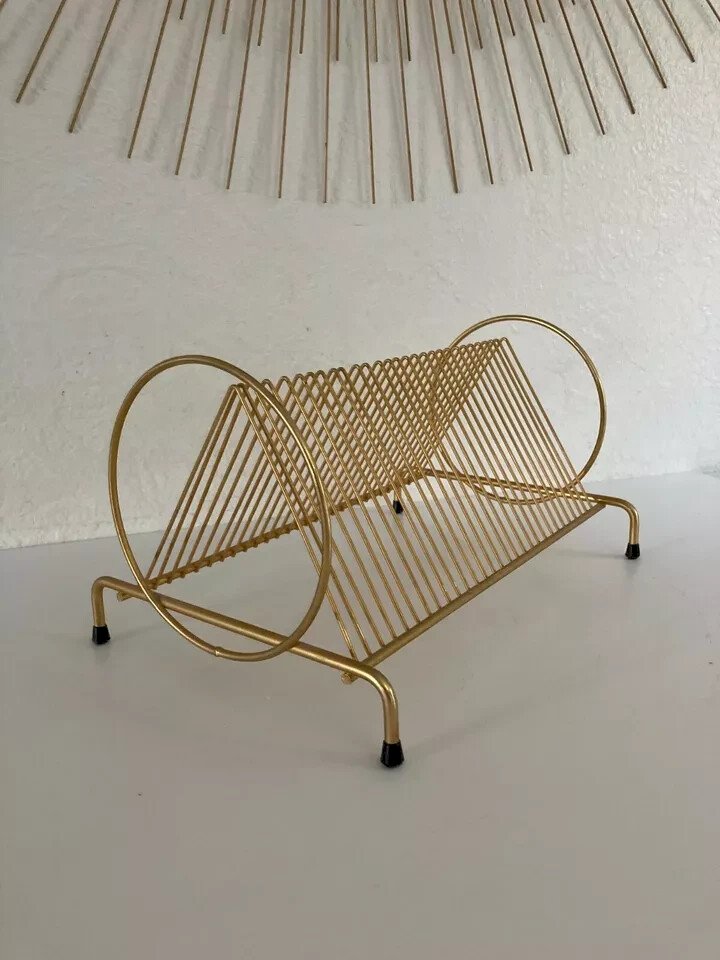 ? Vintage Retro Design Gold Metal Vinyl Record Holder ? Length 30 cm, Height 17 cm Color: Gold Type: Storage Height: 17 Material: Metal Length: 30 Country of origin: France