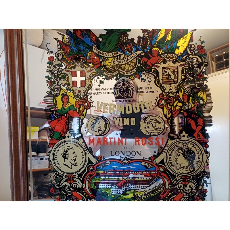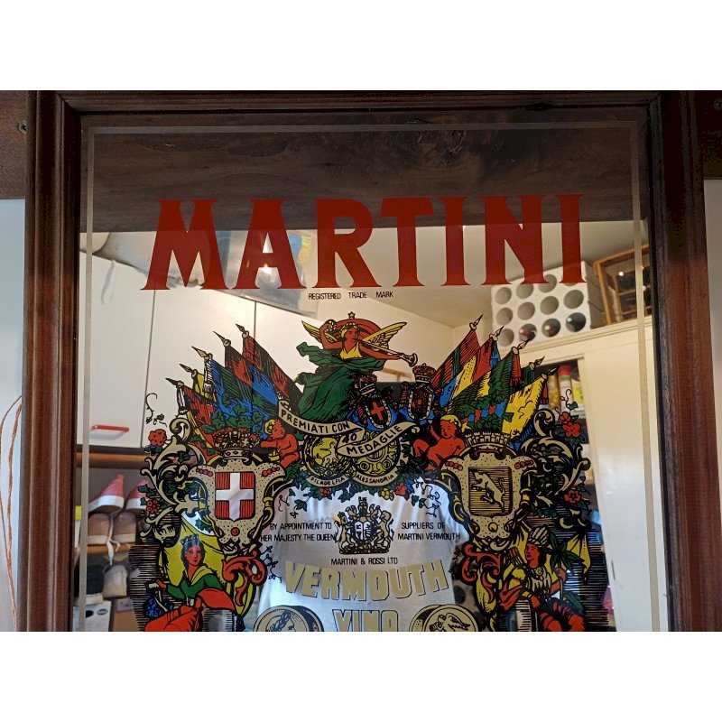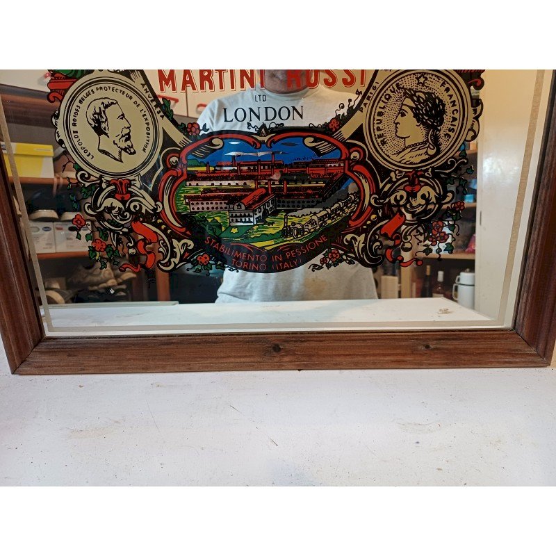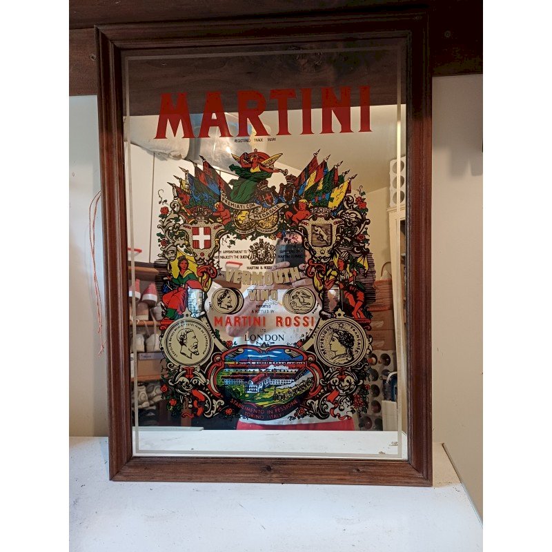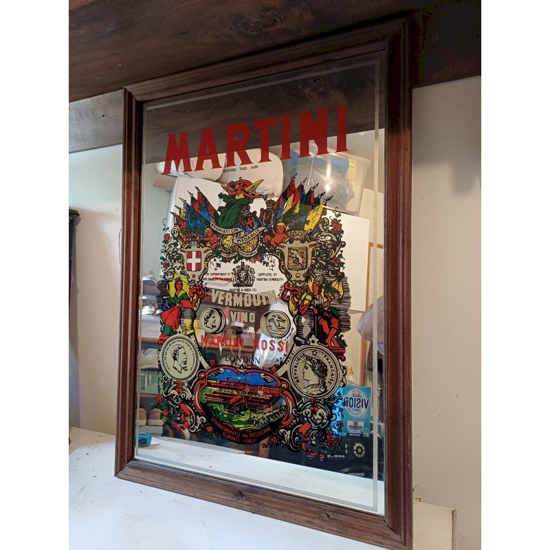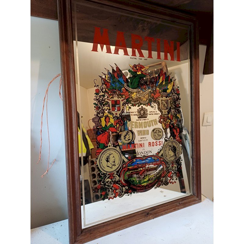 1970s "Martini" advertisement framed in wood and mirror, Height: 69 cm, Length and Width: 63 cm on 2 cm, weight: 5 kg, very good condition.