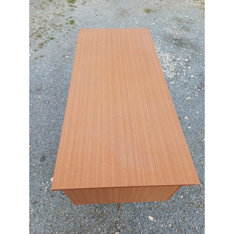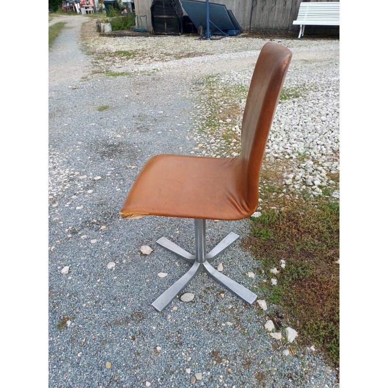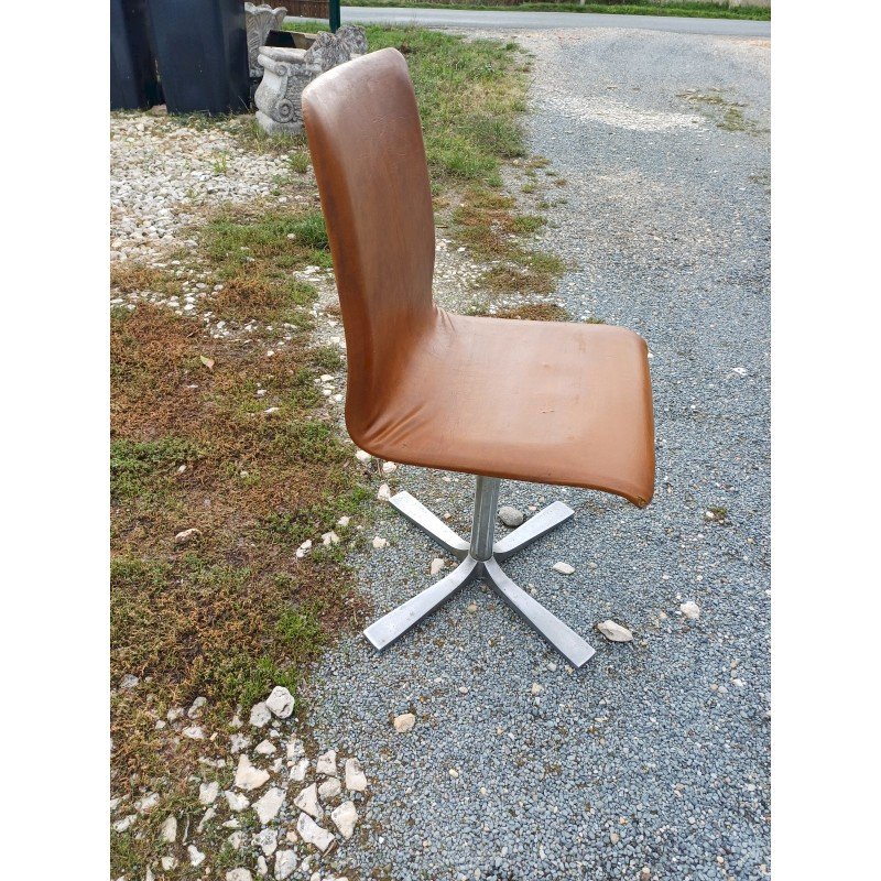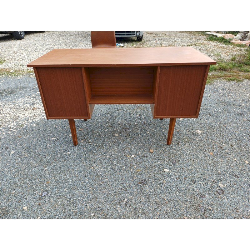 1970s Vintage Desk Height: 70 cm, length and width: 120 cm by 54 cm, 1 door, 3 drawers + Skai and aluminum chair, very good condition.