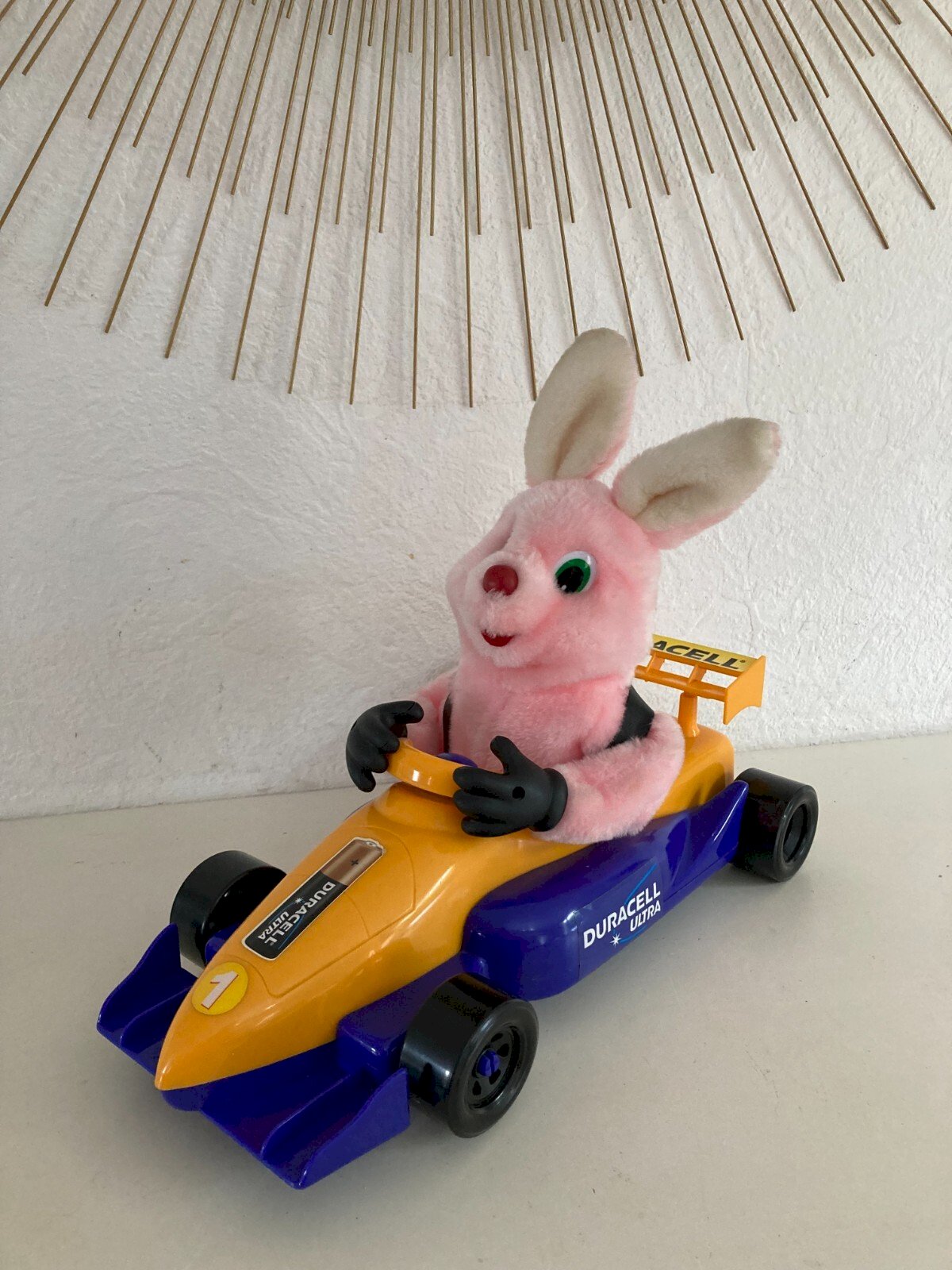 ⚜️ Promotional Plush Pink Rabbit Duracell Formula 1 Car ⚜️ Length 40 cm, Height 31 cm, Width 20 cm Important: does not work. Good condition Condition: Used: Item has been used. Check the seller's description for more details... Used: Item has been used. any possible imperfections. Brand: Duracell Country of origin: China