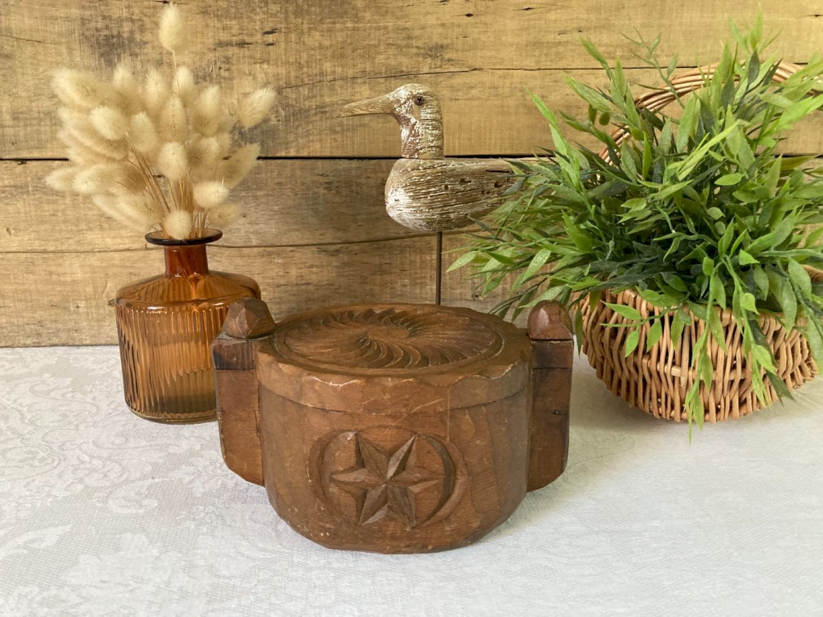 ⚜️ Vintage Wooden Carved Box Salt Cellar ⚜️ Height 10 cm, Diameter 13 cm Subtype: Box Material: Wood Country of origin: France