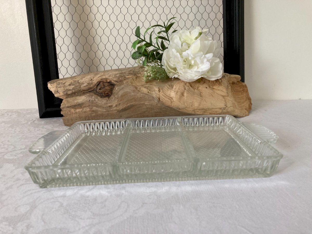 ⚜️ Vintage Glass Serving Tray Rectangular 3 Compartments ⚜️ Length 30 cm, Width 18 cm, Height 3 cm Subtype: Dish Material: Glass Country of origin: France