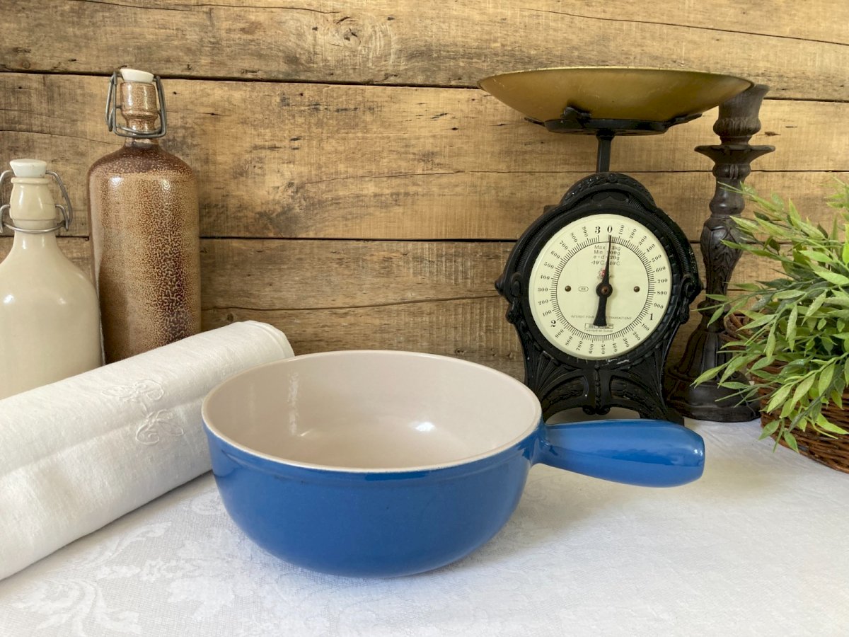 ⚜️ Vintage Le Creuset Caquelon Pan Pot 22 ⚜️ Height 9 cm, Diameter 22 cm Made In France Color Blue Condition: Used: Item has been used. Item shows some superficial signs of wear... Used: Item has been used. Item shows some superficial signs of wear, fully operational and functioning correctly. It may be a demonstration model or an item returned to the store after a short period of use. any possible imperfections. Country of origin: France Color: Blue Brand: Le Creuset Type: Pot Compatible stove types: Electric, Gas