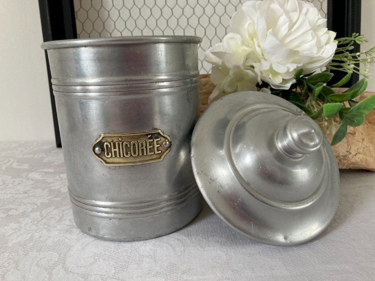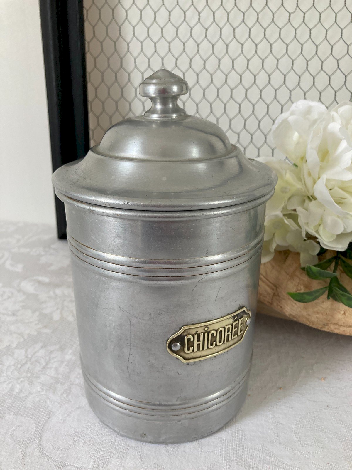 ⚜️ Vintage Authentic Chicory Spice Jar Tournus Unis France in Aluminum ⚜️ Height 20 cm, Diameter 12 cm Condition: Used: An item that has been used. Please consult the seller's description for more details... Used: An item that has been used. any imperfections. Color: Silver Type: Jar Subtype: Spice Jar Material: Aluminum Country of Origin: France