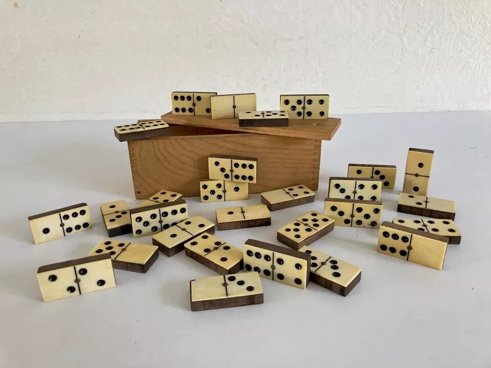 9 ⚜️ Antique Old Toy Board Game Wooden Box 28 Vintage Wooden Dominos Condition: Used: Item has been used. Please refer to the seller's description for more details ... Used: Item has been used. Possible imperfections. Type: domino Game Name: Dominos Material: Wood Country of Origin: France