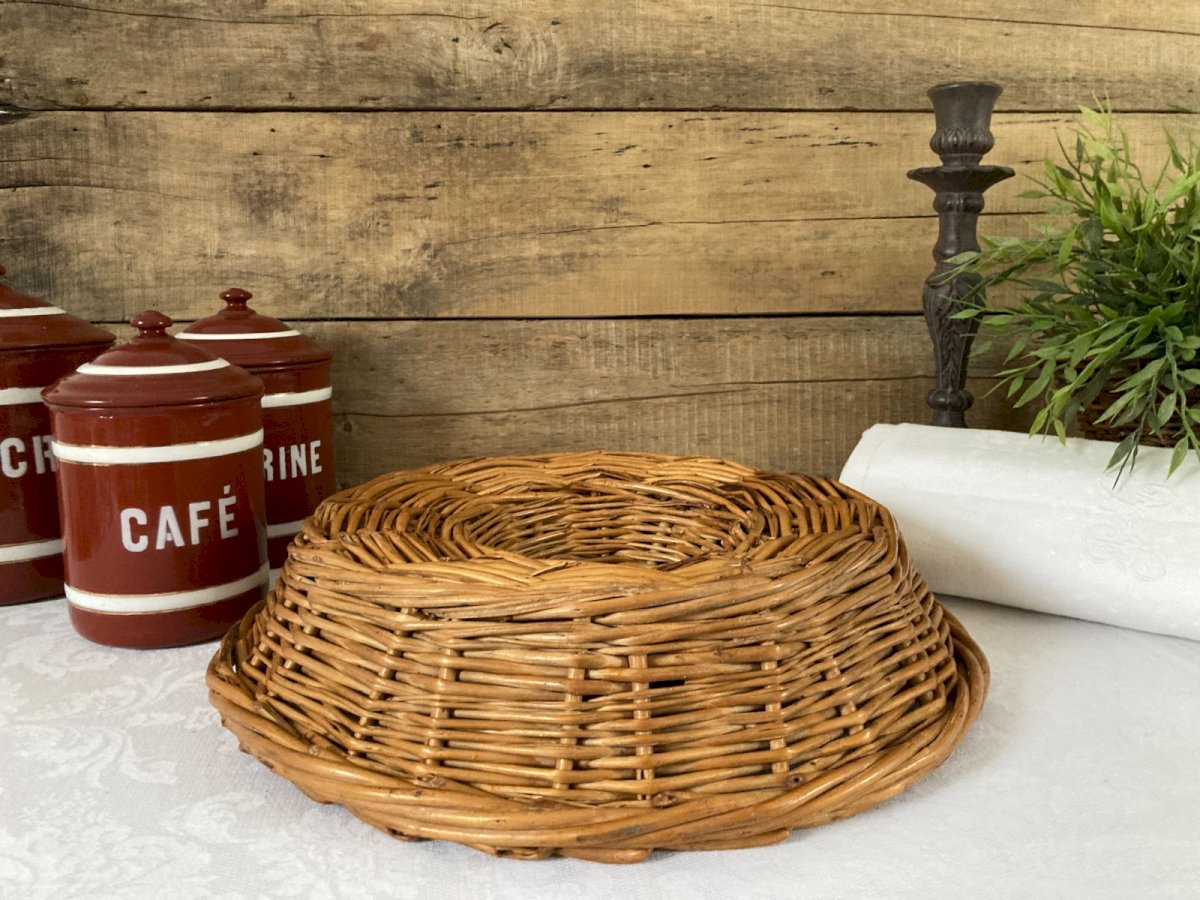 ⚜️ Vintage Round Bread Basket Crown Baker's Wicker Basket ⚜️ Diameter 35 cm, Height 8 cm Condition: Used: Item has been used. Item shows some signs of superficial wear... Used: Item has been used. Item shows some signs of superficial wear, fully operational and functioning correctly. It may be a display model or an item returned to the store after a short period of use. any possible imperfections. Type: Basket Height: 8 Length: 35 Width: .............. Shape: Round Country of origin: France