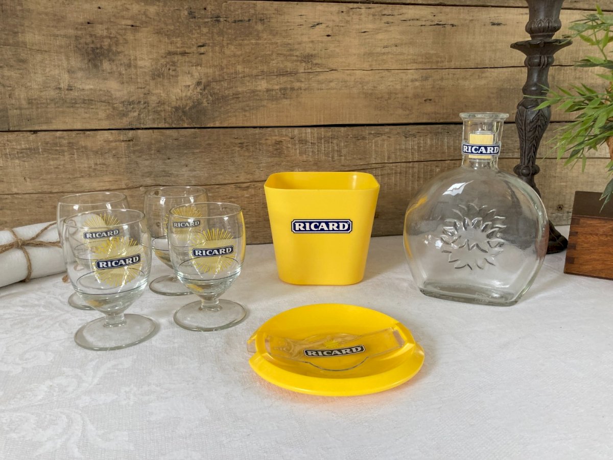 ⚜️ Ricard Advertising Lot 4 Glasses + One Carafe + One Ice Bucket + One Change Holder ⚜️ Height of the carafe 18 cm, Height of the glasses 10 cm, Height of the small ice bucket 11 cm Condition: Used: Item that has been used. Please check the seller's description for more details... Used: Item that has been used. any potential imperfections. Type: Ricard Lot Brand: Ricard Material: Plastic and glass Style: Advertising Country of origin: France