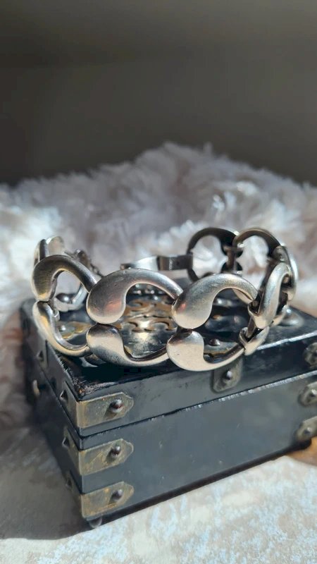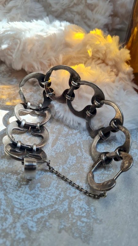 Above 25€, please choose a carrier if possible. Take the opportunity to buy in bulk: - 5 items - 10% - 10 items - 20% - 20 items - 30% Make sure to check the photos for imperfections. Dimensions: width: 2.8 cm, inner diameter: 19.5 cm. I think it goes with the necklace. Weight: 68 grams. #bracelet#bracelet#bracelet#gift#chic#collection#vintage#jewelry#bracelet#bracelet#antique bracelet#modernist bracelet