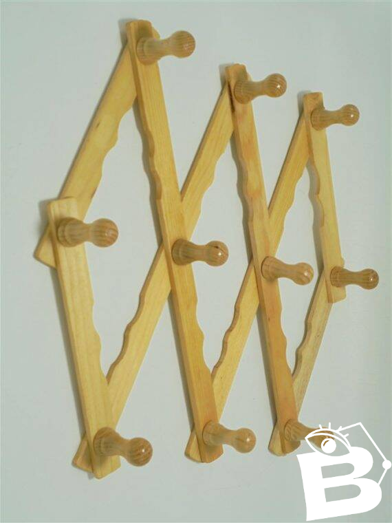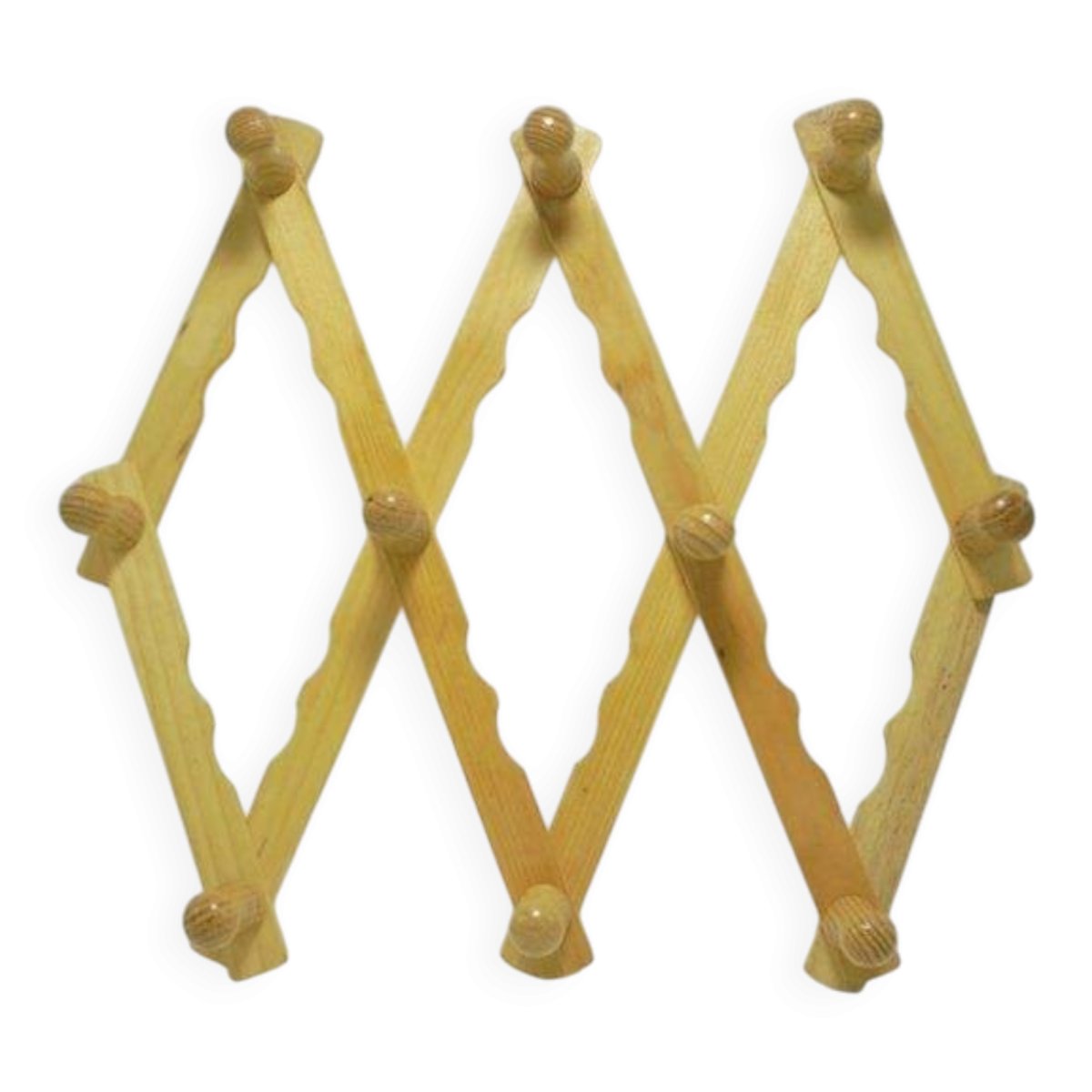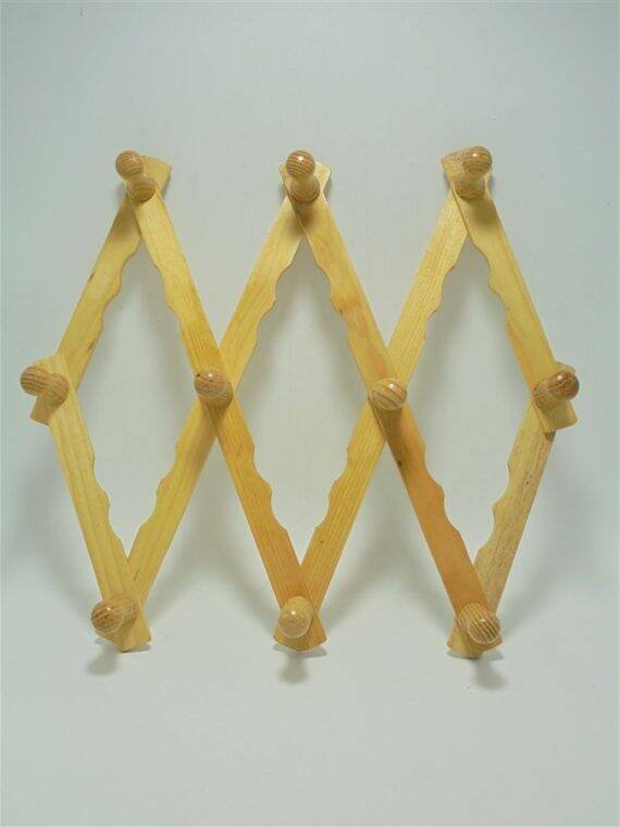 Pine accordion coat rack, 10 hooks. Average dimensions: 50 X 30 X 5.5 cm. Weight: 180 g. L: 50 W: 5.5 H: 30
