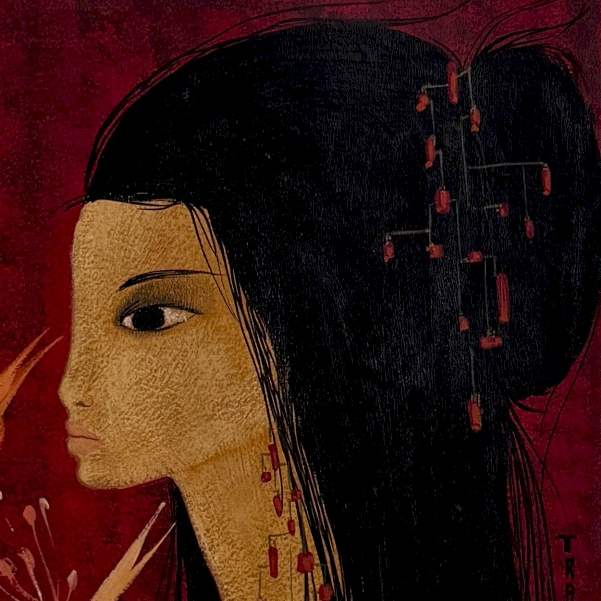 Acrylic on paper, Nude girl with peacock heads by Tran Long XXe A5758 This acrylic on paper was created by Tran Long and is typical of this artist. It depicts a nude girl accompanied by two peacock heads. The work is in superb condition, with only the margins affected. It will likely need to be framed. Mara Tran Long, born Marinette Védry, adopted her Vietnamese husband’s name as her painter's name. Her work, initially focused on realistic subjects, has evolved towards a more imaginative style, where refined drawing and deep colors dominate, while remaining centered on Asian inspiration. A prolific artist, she has presented her work at the Galerie Belle Gabrielle in Montmartre, the Galerie Moyon Avenard in Nantes and Aix-les-Bains, as well as the Espace 2000 in Brussels. Her recognition transcends borders with exhibitions in Los Angeles, Tokyo, and Oslo. Our photos allow you to appreciate the quality of the work. Please refer to the detailed photos for the condition. Feel free to zoom in. The photos are an integral part of the description. Dimensions: - Total Height: 65 cm Width: 50.5 cm Thickness: 0.1 cm - Artwork Height: 42.5 cm Width: 30.5 cm P: 1616342 I remain at your disposal for any questions. Authenticity: Unknown Weight: Unknown Country of manufacture: France Height: 65 cm Length: 0.1 cm Features: Signed Width: 50.5 cm Artist: Tran Long Type: Acrylic Style: Not specified Genre: Unknown Theme: Character