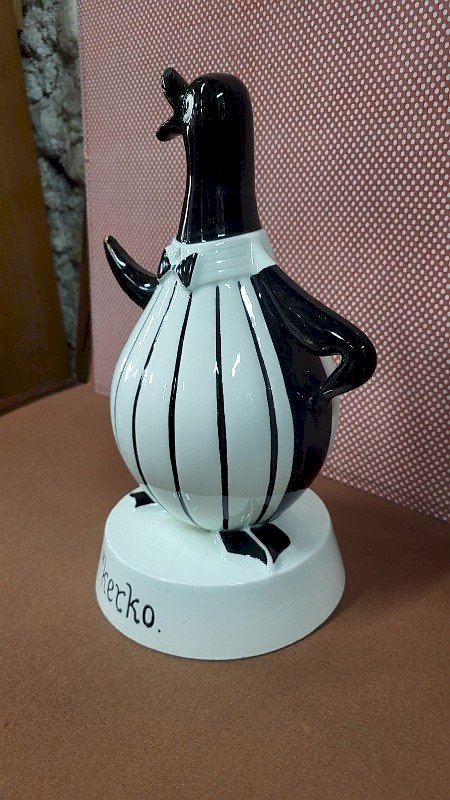 magnificent and rare advertising penguin ceramic NV Kerko it is a very beautiful piece there is a small chip on the bottom and one on the beak (see photos) it measures 31 cm high, 21 cm wide, and 16.5 cm in diameter for the base Condition: Used Item that has been used. any imperfections. Type: Figurine, Statue Material: CERAMIC