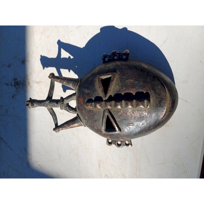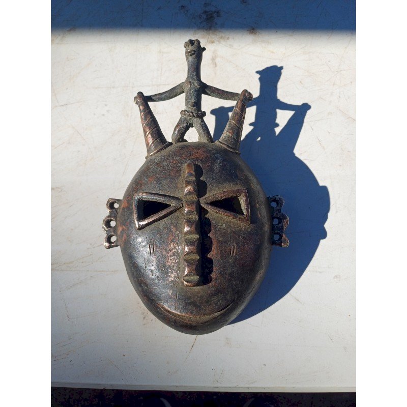 African Bronze Mask, Height: 25 cm, length and width: 8 cm by 16 cm, weight: 1.3 kg, very good condition.