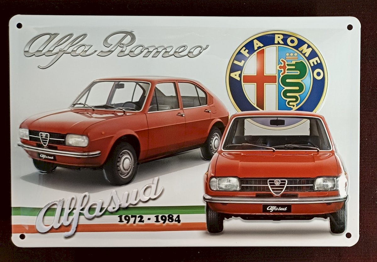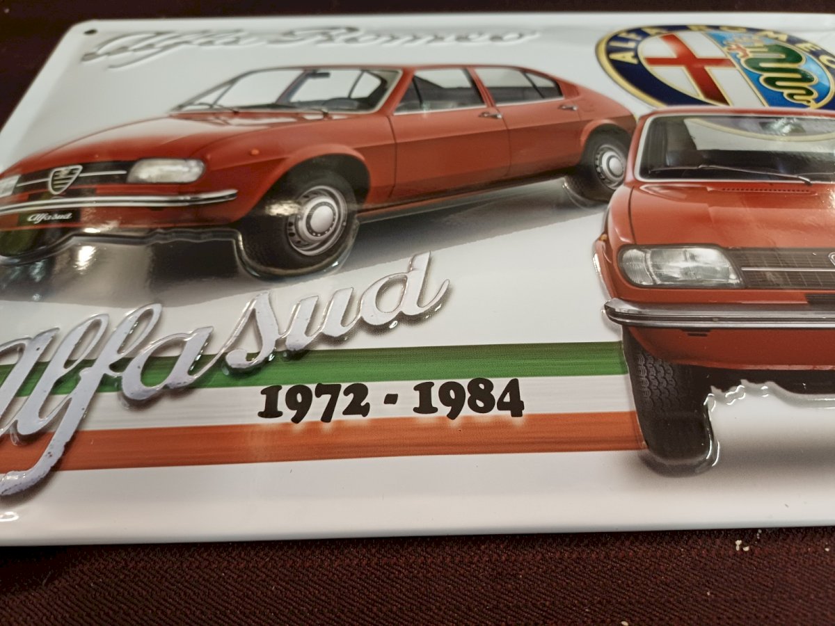 Alfa Romeo Alfasud metal sign 1972 1984 reproduction of an old advertisement Curved metal sign with relief dimensions 30 x 20 cm NEW ITEM Condition: New: New and intact item, never used, unopened. Check the seller's listing for ... New: New and intact item, never used, unopened. Check the seller's listing for more details. Original/reproduction: Reproduction Type: Curved sign Origin: Europe Period: 2000s and later Country of origin: France Features: Relief pattern Theme: Automobile Edition: Reissue Shape: Rectangular Product: Alfa Romeo
