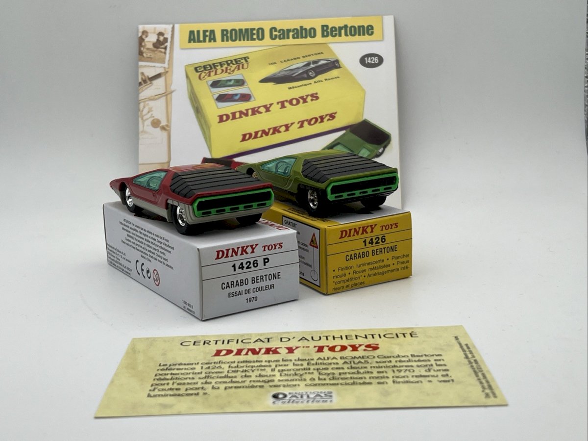 Alfa Romeo Carabo Bertone Duo red and green box 1/43 Dinky Toys No. 1426 Atlas Editions Condition: Used: Item that has been used. Please check the seller's description for more details ... Used: Item that has been used. any imperfections. Brand: Atlas Scale: 1:43 Country of origin: China Vehicle brand: Alfa Romeo