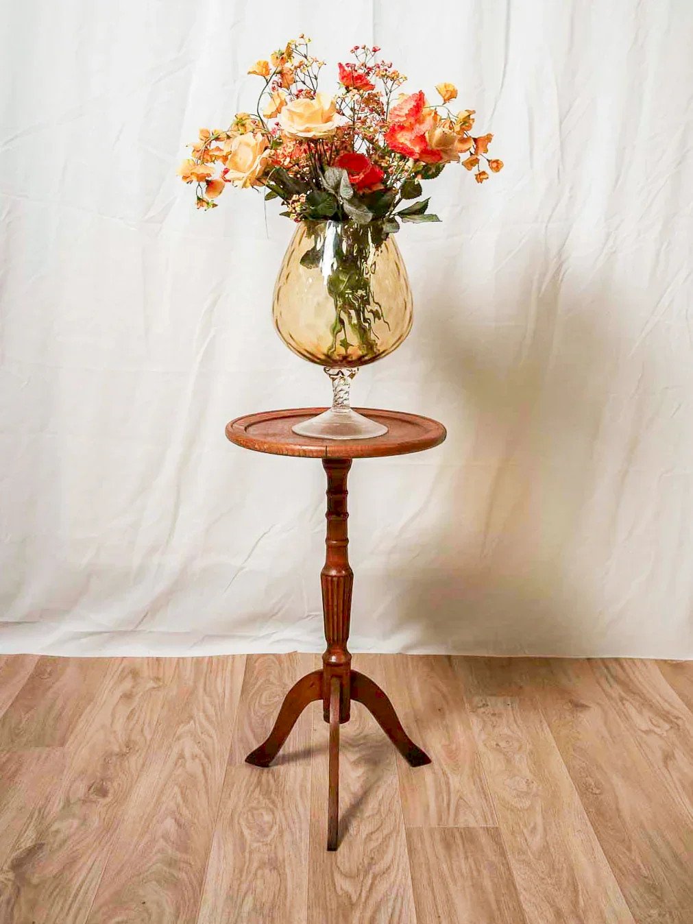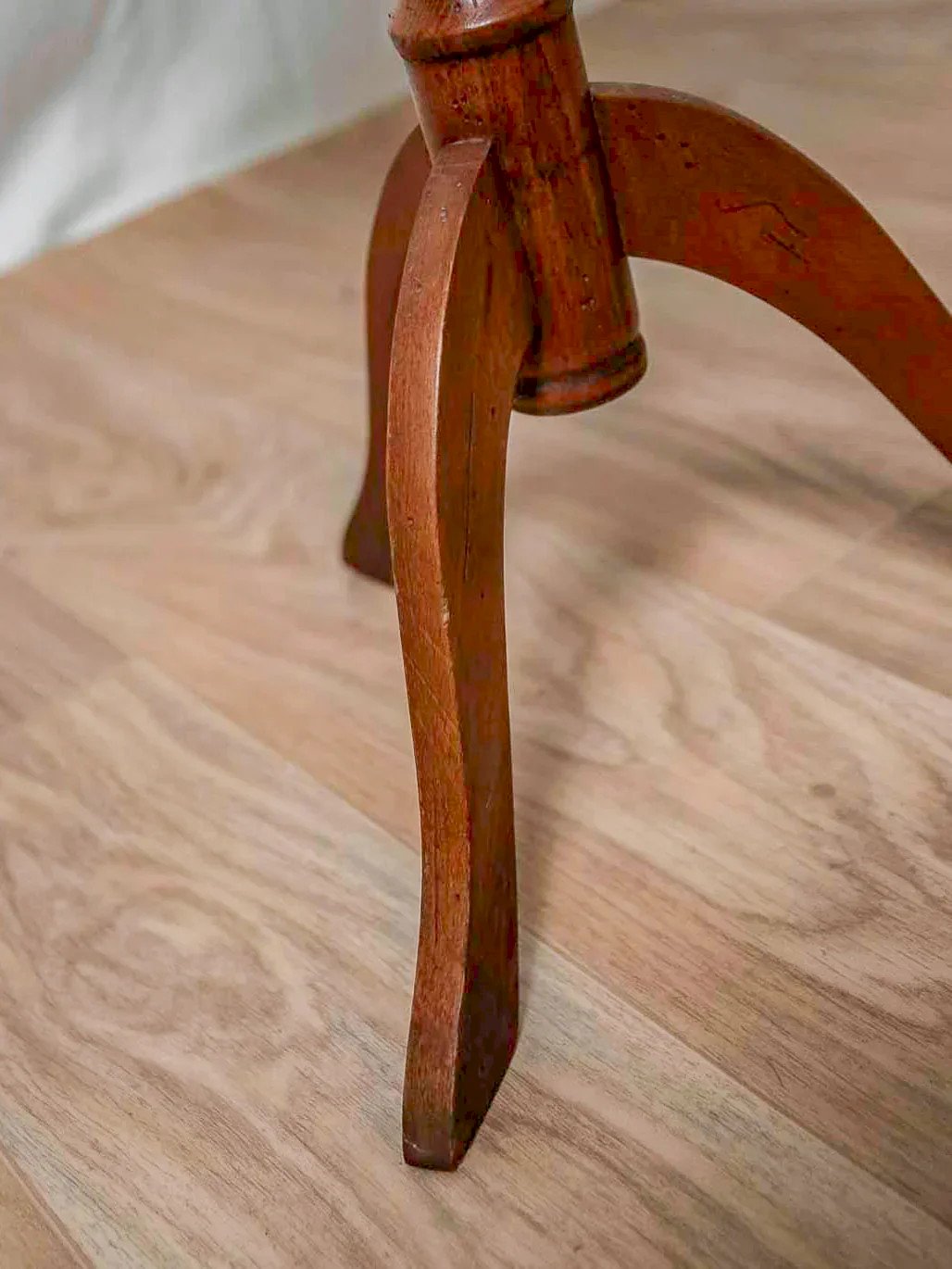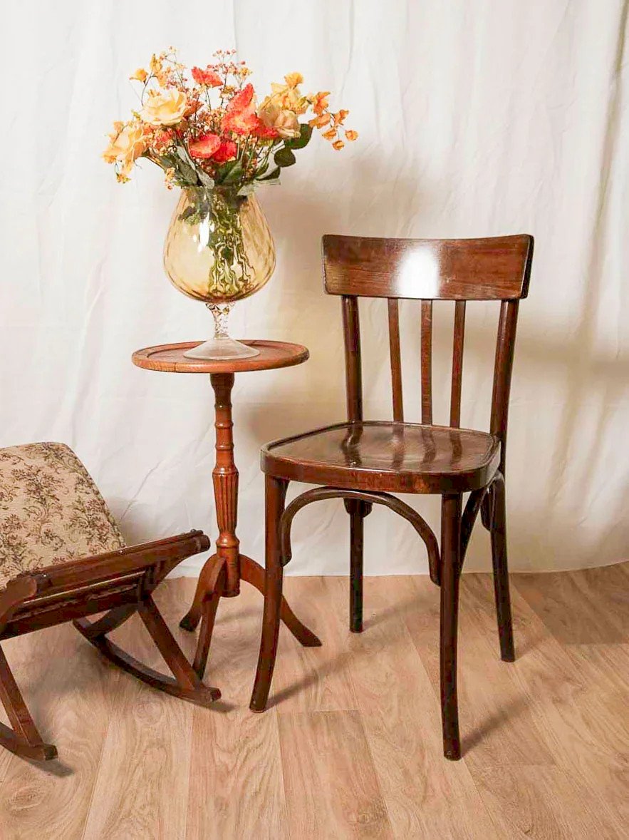 Discover this small light wood side table with a delicate grain that adds a warm and natural touch. Compact format and round top, ideal as a side table for a lamp, a book, or a serving tray. The edges are slightly detached due to time and the work of the wood, without any breaks or impact on its sturdiness. Patinated finish revealing the marks of experience, understated and full of character. Slight signs of wear that contribute to its charm. Height: 60 cm Diameter: 33.5 cm Condition: Used: Item that has been used. Item showing some superficial signs of wear, ... Used: Item that has been used. Item showing some superficial signs of wear, fully operational and functioning correctly. It may be a demonstration model or an item returned to the store after a short period of use. the possible imperfections. Brand: Debongout Type: Thrifted product Material: Wood Style: Rustic Customized: Side tables