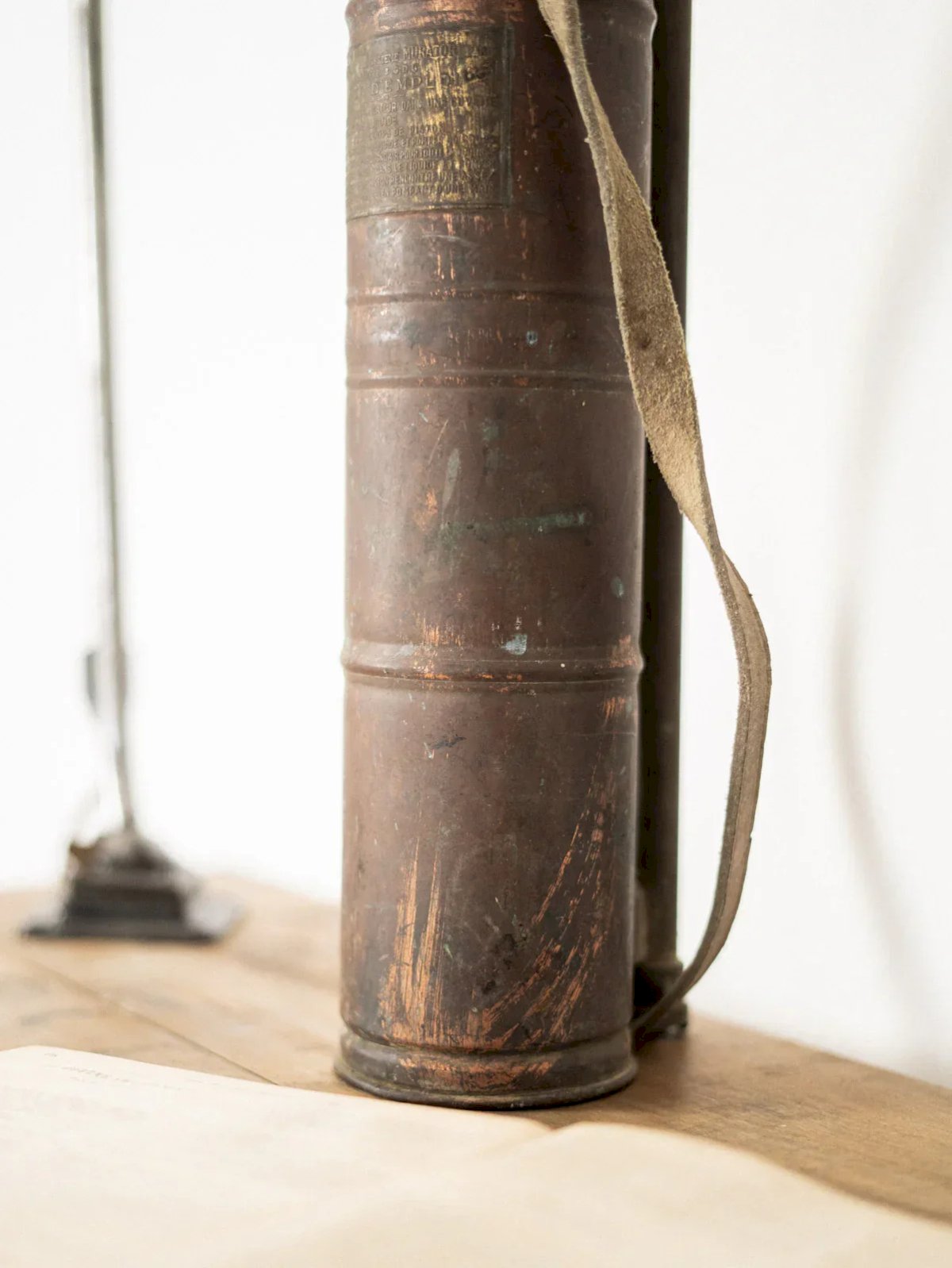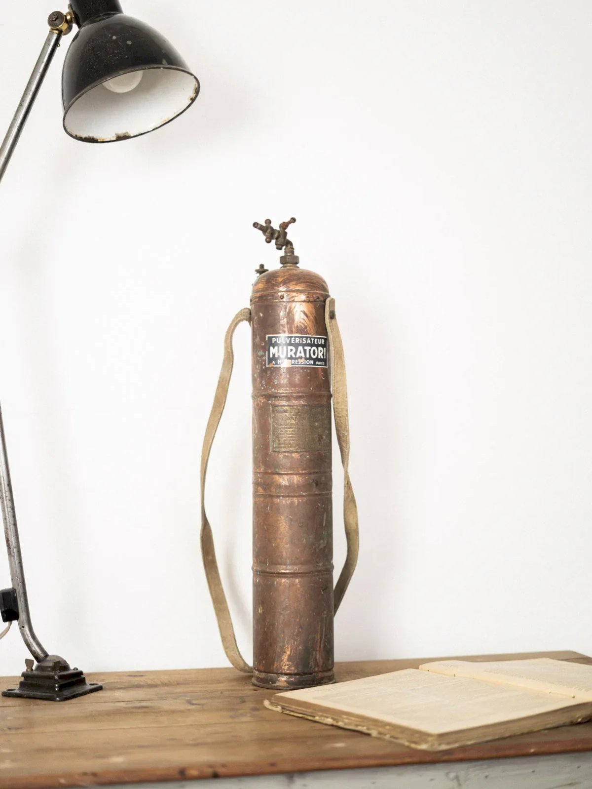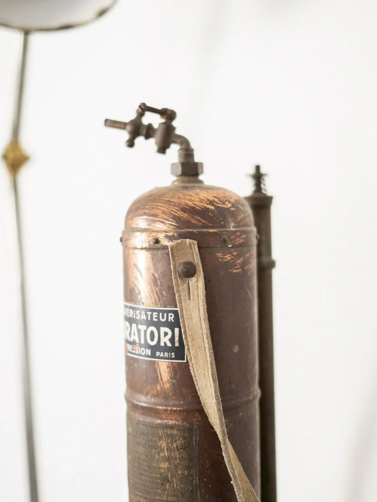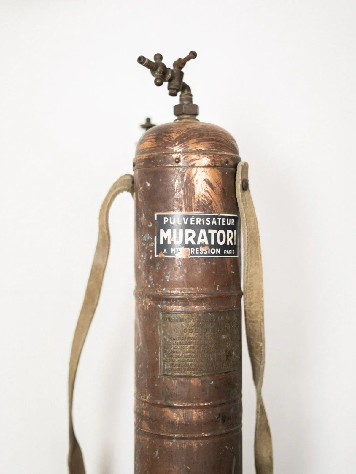 Discover our copper sprayer full of character, featuring a patinated leather handle that combines authenticity and refinement. A testament to traditional craftsmanship, it was once used to gently mist plants. Today, it naturally finds its place as a beautiful decorative object, adding a touch of charm and history to your interior. Its aged copper finish gives it a unique patina, making this object a singular piece. A decorative element full of soul, ideal for lovers of authenticity and beauty. Length: 15 cm Width: 10.5 cm Height: 60 cm Diameter: 10.5 cm Condition: Used: Item has been used. Item showing some signs of superficial wear... Used: Item has been used. Item showing some signs of superficial wear, fully operational and functioning correctly. It may be a demonstration model or an item returned to store after a short period of use. Any potential imperfections. Brand: Debongout Type: Vintage product Material: Copper, Leather Style: Contemporary.