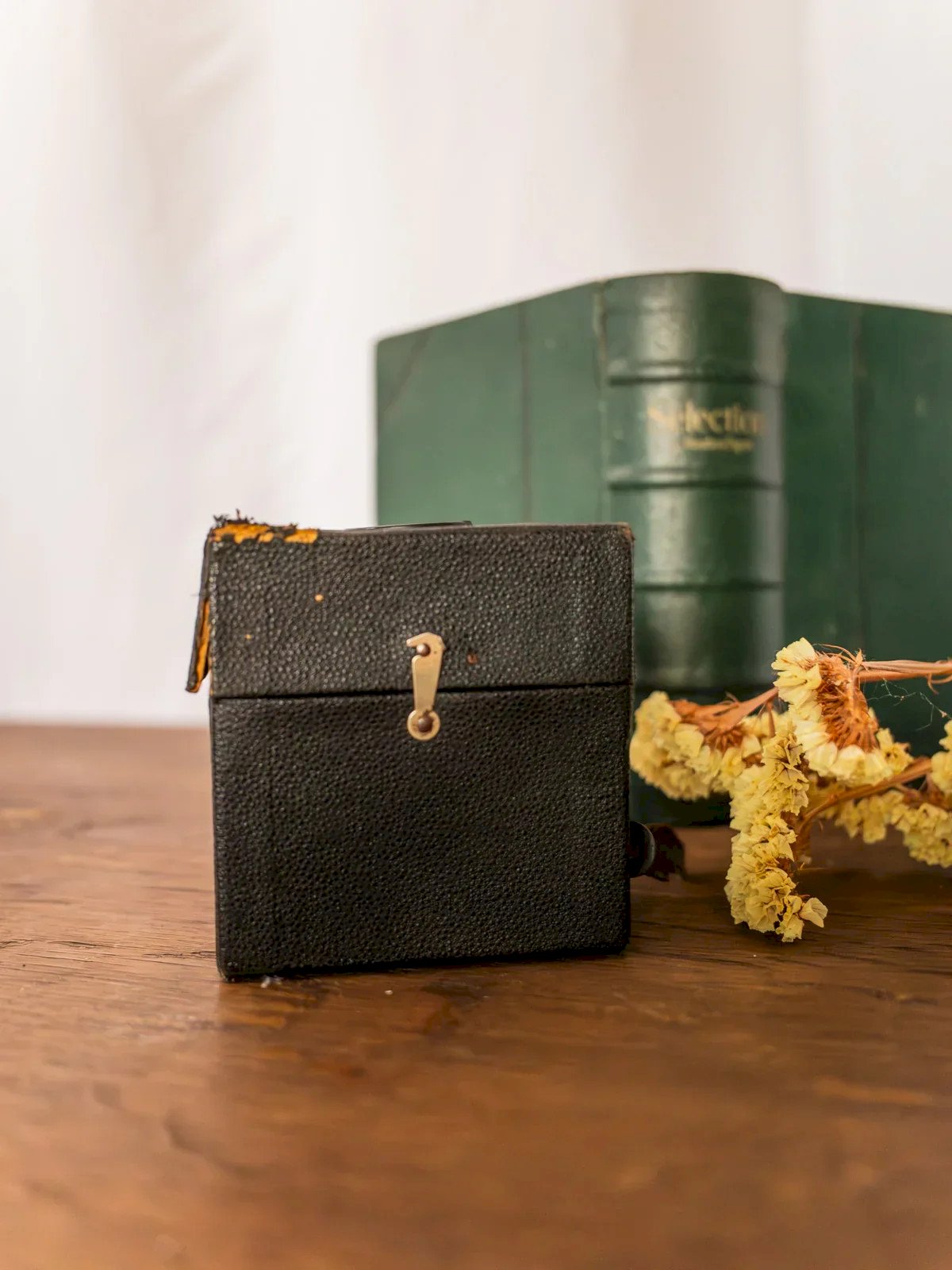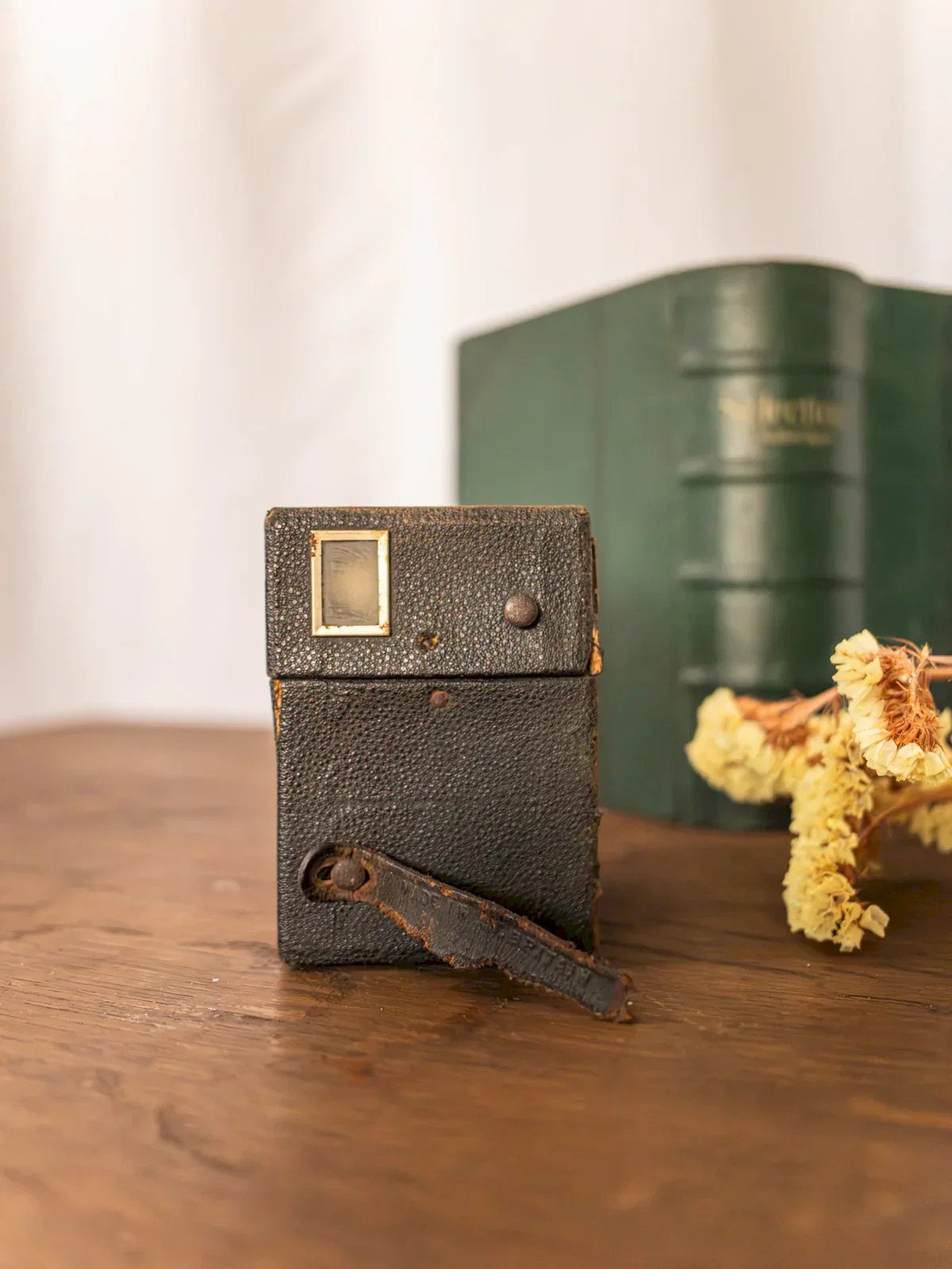 Discover this vintage camera with a black casing, an emblem of retro design and elegant sobriety. Its sculptural presence, combining patinated metal and glass lens, makes it a perfect decorative object for a library, an office, or a display case, inviting travel and past stories. It blends seamlessly into both contemporary interiors and more bohemian settings, adding a subtle touch of character and visual memory, with wear and traces of time that reflect its authentic nature. Length: 12 cm Width: 8 cm Height: 11.5 cm Condition: Used: An item that has been used. The item shows some superficial signs of wear, fully operational and functioning correctly. It may be a demonstration model or an object returned to the store after a short period of use. Any imperfections. Brand: Debongout Type: Thrifted Product Material: Plastic, Cardboard, Iron, Glass Style: Contemporary