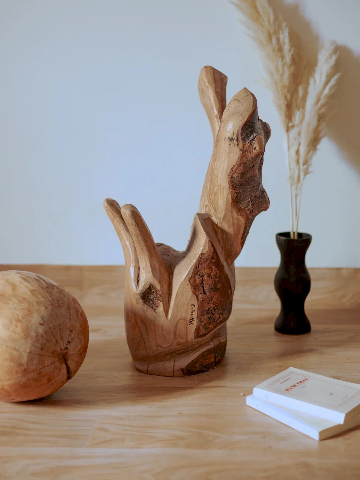 Add a decorative egg on its light wood stand, a sculptural piece that brings an airy and contemporary silhouette to your interior. Its imposing height and balanced proportions make it an elegant focal point for an entryway, living room, or showcase, while the natural wood conveys a warm and organic atmosphere. Place it on a console, a low furniture piece, or directly on the floor to structure the space. Vertical slot on the egg, natural woodwork. Height: 160 cm Diameter: 43 cm Condition: Used: Item that has been used. Item showing some signs of superficial wear,... Used: Item that has been used. Item showing some signs of superficial wear, fully operational and functioning correctly. It may be a demonstration model or an item returned to the store after a short period of use, including any imperfections. Brand: Debongout Type: Vintage product Material: Wood Style: Contemporary