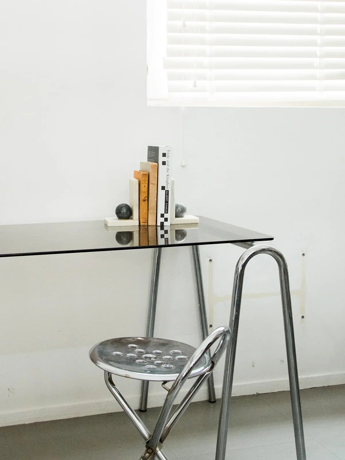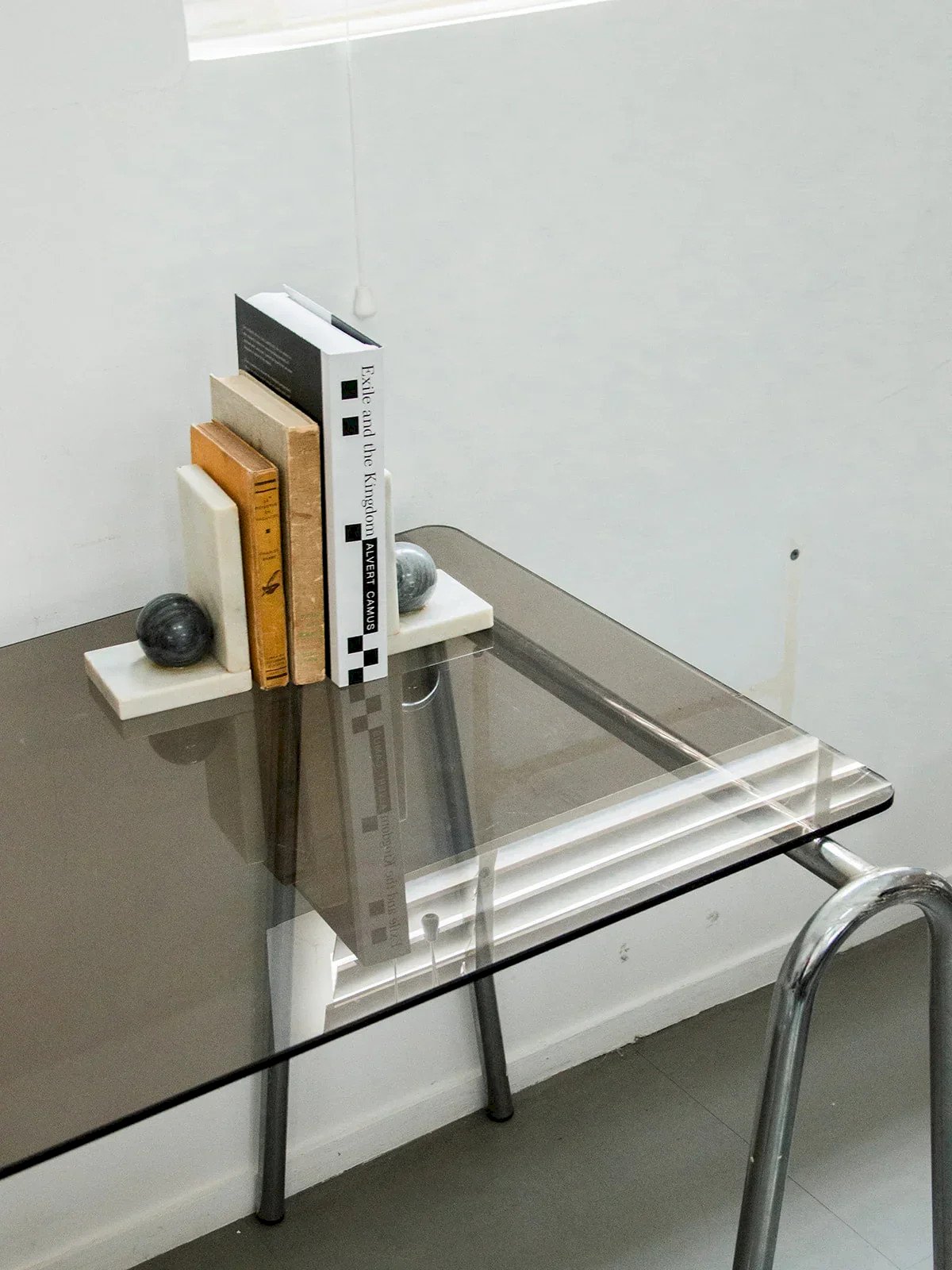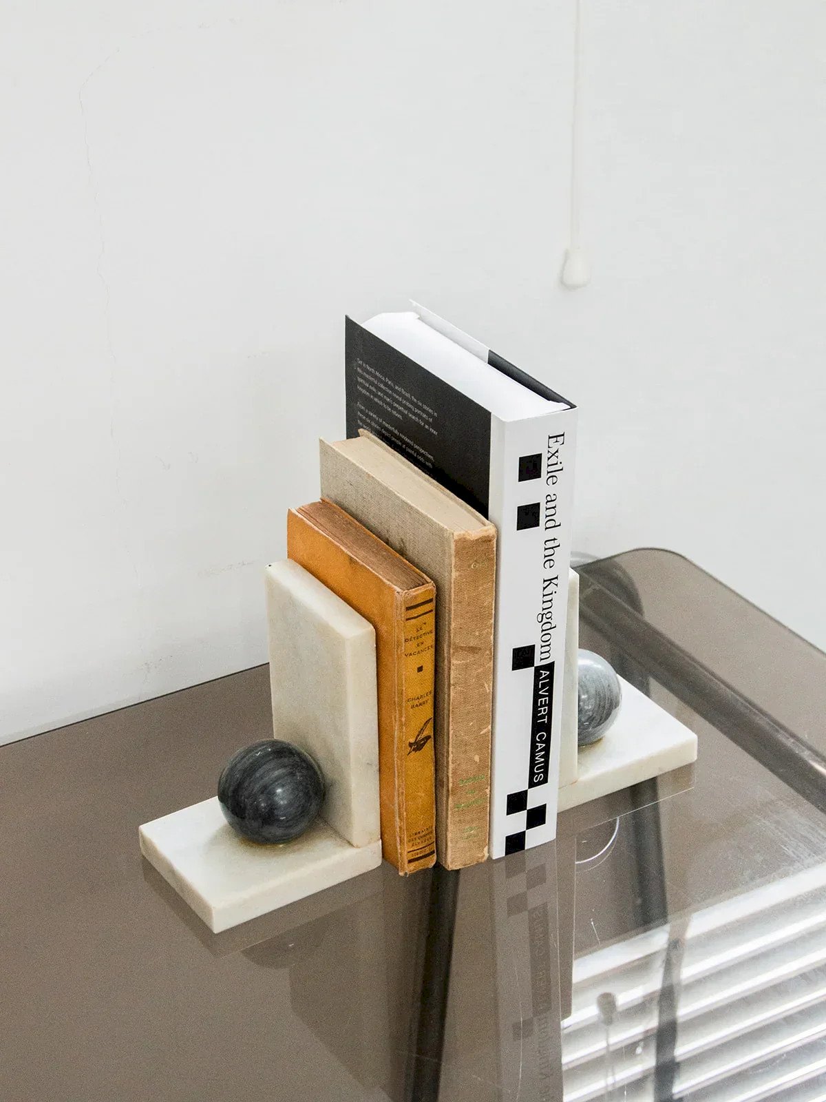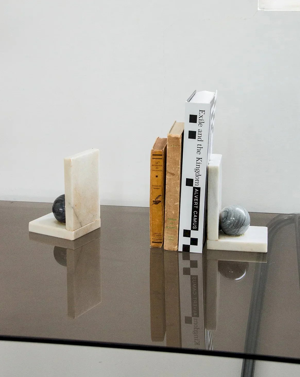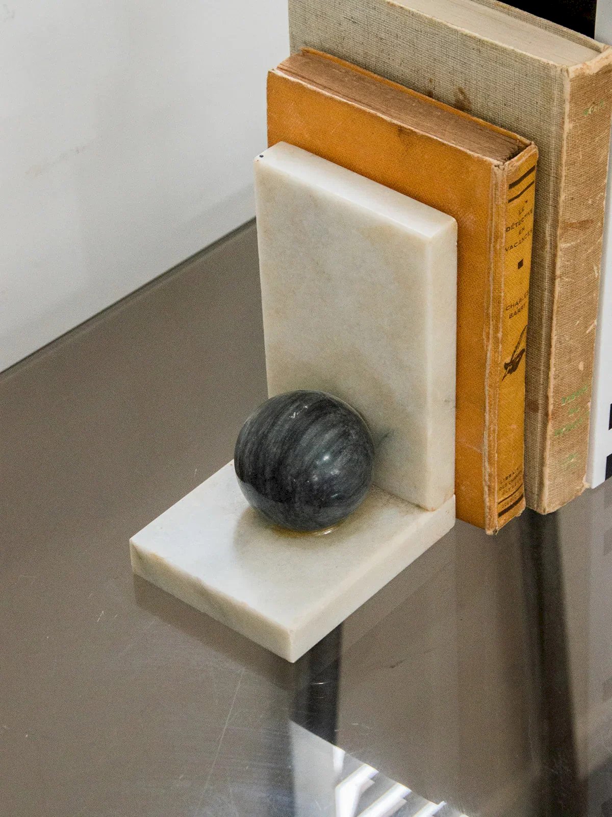 Discover this marble bookend, an elegant piece that combines functionality and aesthetics. Each element is adorned with a gray marble ball, adding a sculptural and refined touch. Solid and stable, it keeps your books in place while decorating your shelf. Perfect for a library or a stylish office. A beautiful object that withstands the test of time with character. Length: 10.5 cm Height: 15.5 cm Depth: 9 cm Condition: Used: Item that has been used. Item showing some superficial wear, ...Used: Item that has been used. Item showing some superficial wear, fully operational and functioning properly. It may be a demonstration model or an item returned to the store after a short period of use. Any possible imperfections. Brand: Debongout Type: Vintage product Material: Marble Style: Contemporary