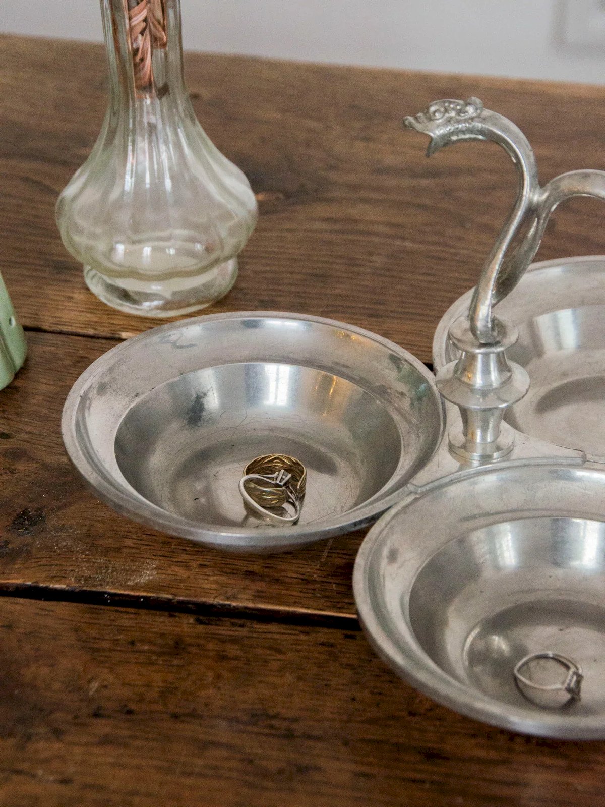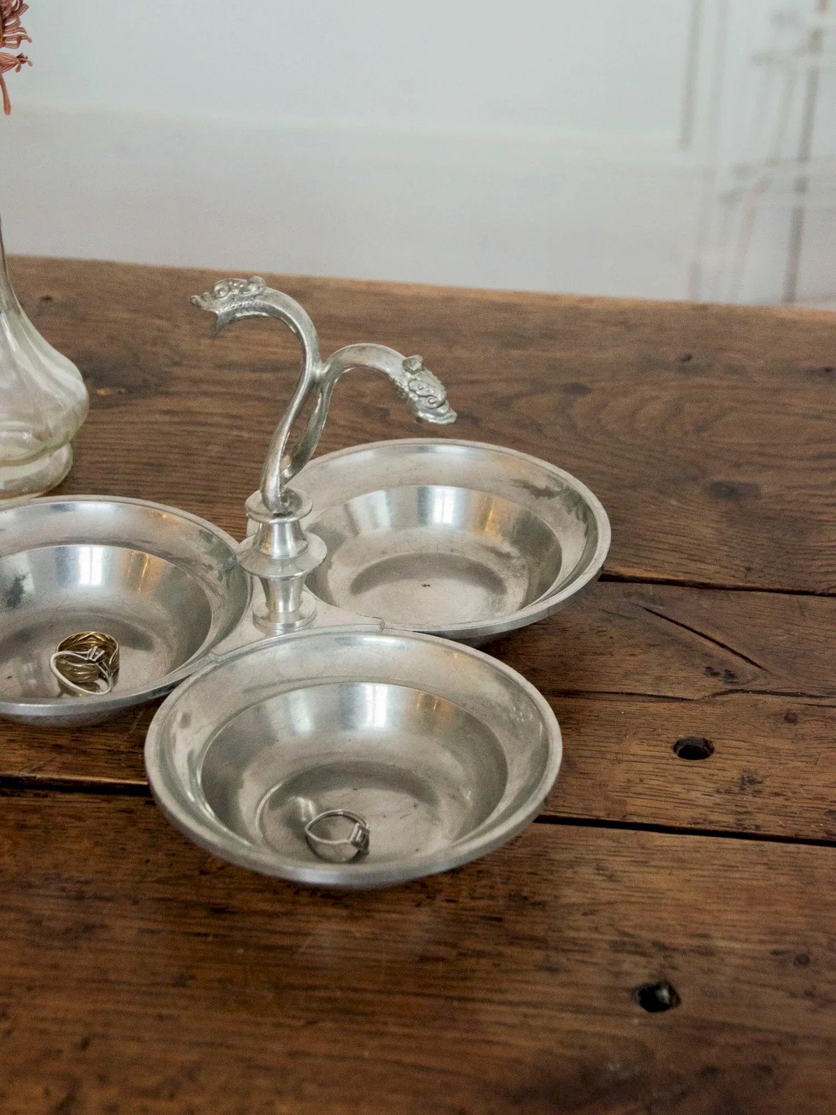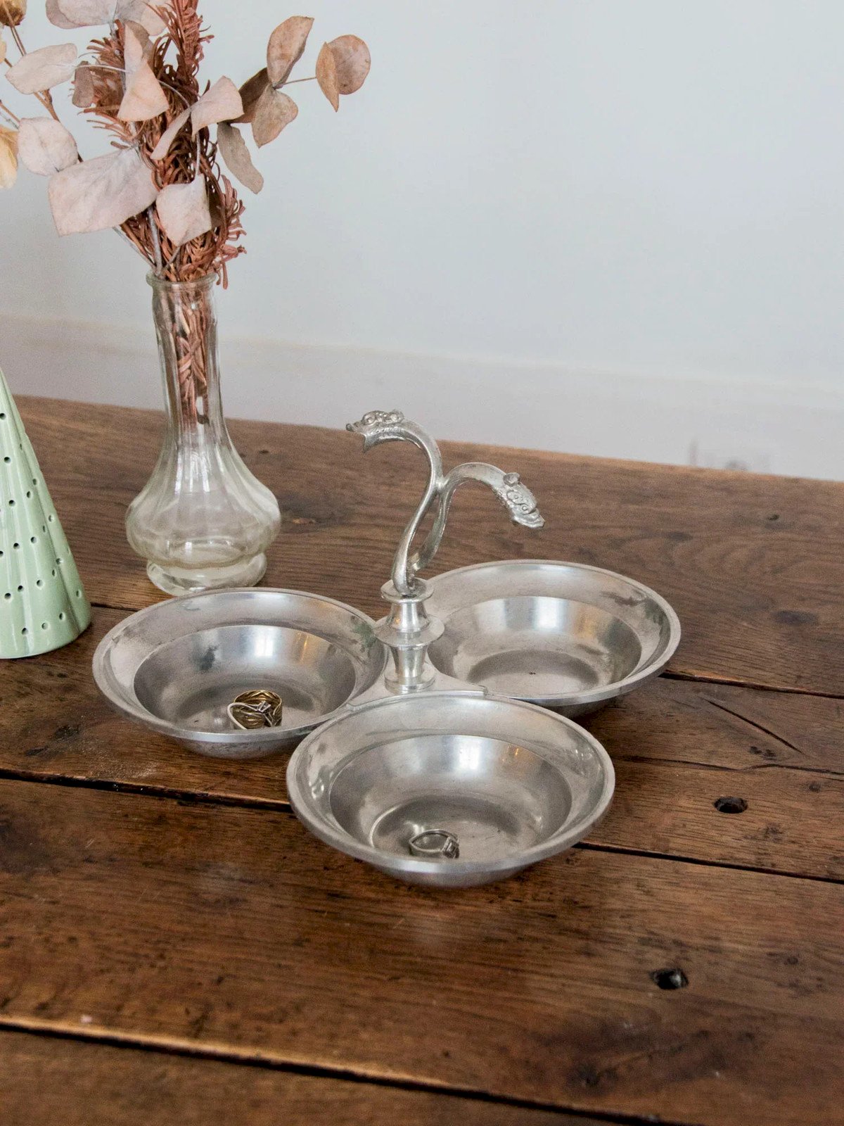 Invite mystery to your table with this metal appetizer bowl, carved with three dragon heads that give it a singular and decorative character. Compact yet clever, it accommodates tapas, condiments, or olives in compartments designed for a friendly and staged service. Its metallic finish adds a touch of Asian inspiration and raw elegance, making it ideal for a host's table or as a curiosity placed on a shelf. Length: 24 cm Width: 24 cm Height: 10 cm Condition: Used: Item that has been used. Item showing some superficial signs of wear, ...Used: Item that has been used. Item showing some superficial signs of wear, fully operational and functioning correctly. It may be a demonstration model or a returned item after a short period of use. Any possible imperfections. Brand: Debongout Type: Vintage product Material: Metal Style: Contemporary