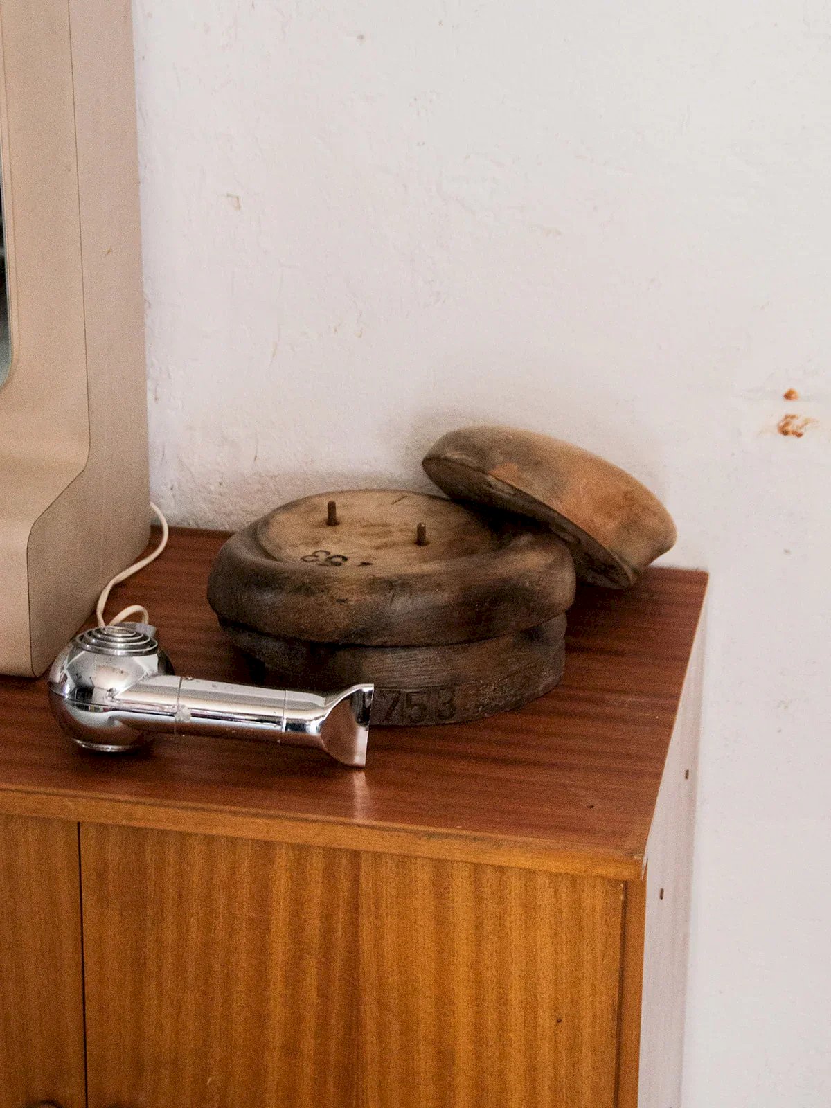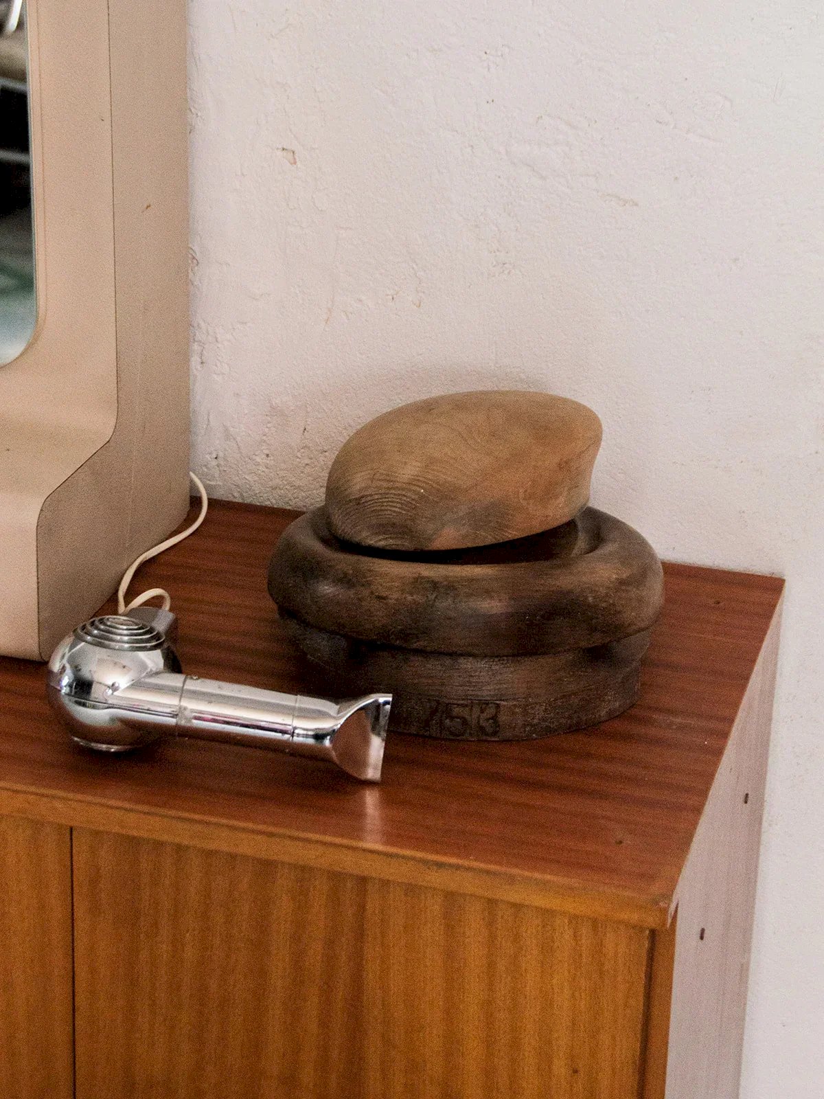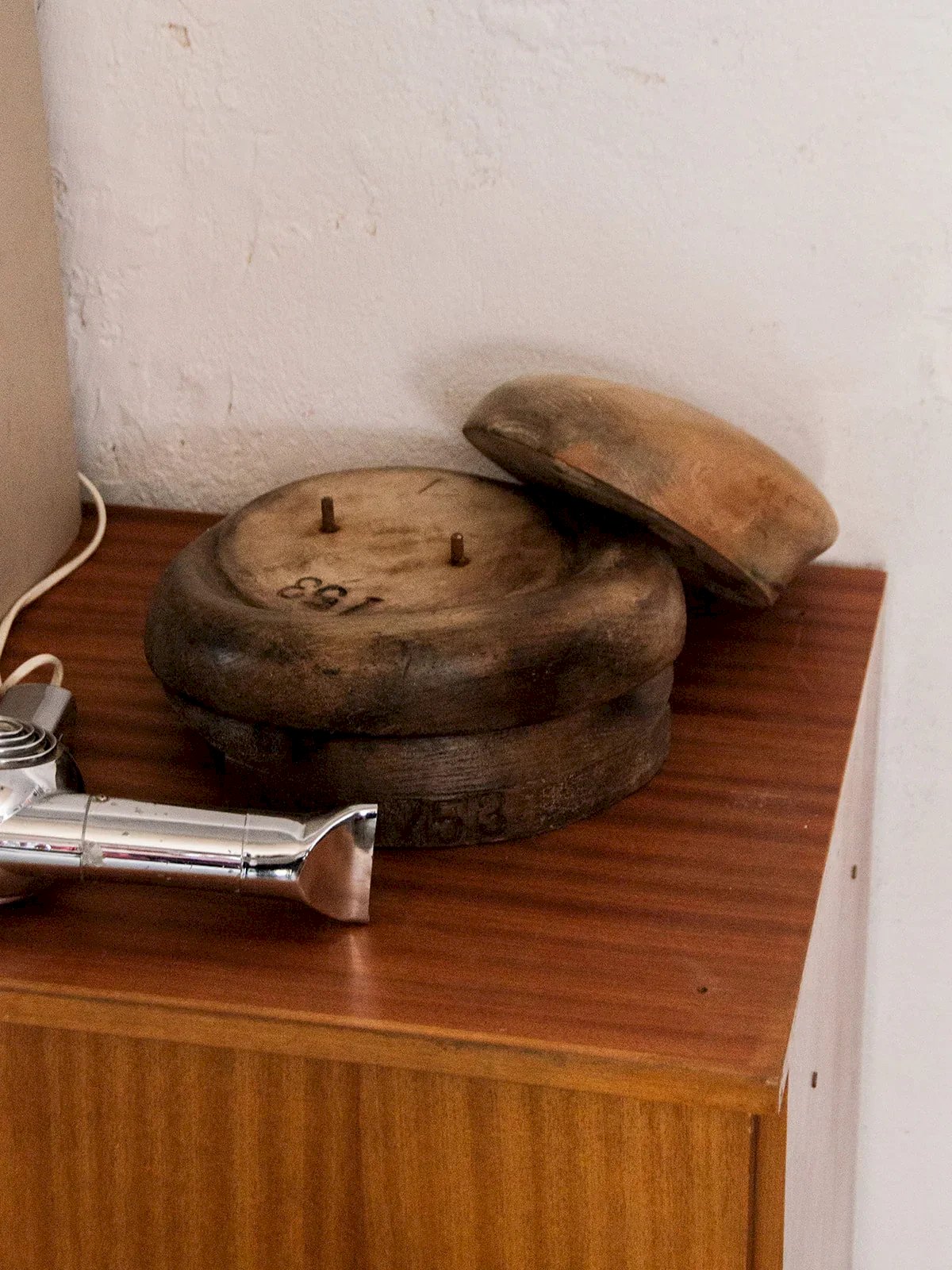 Discover this elegant wooden support, once used for hat making, now transformed into a decorative object full of character. Its unique shape makes it an original piece that catches the eye. It will add a touch of authenticity to a shelf, a console, or a workshop. Its patinated wood gives it a unique charm. An ideal decoration for lovers of unusual objects filled with history. Height: 18 cm Diameter: 24 cm Condition: Used: Item that has been used. Item showing some superficial signs of wear, fully operational and functioning correctly. It may be a demonstration model or an item returned to the store after a short period of use, with any possible imperfections. Brand: Debongout Type: Thrifted product Material: Wood Style: Contemporary
