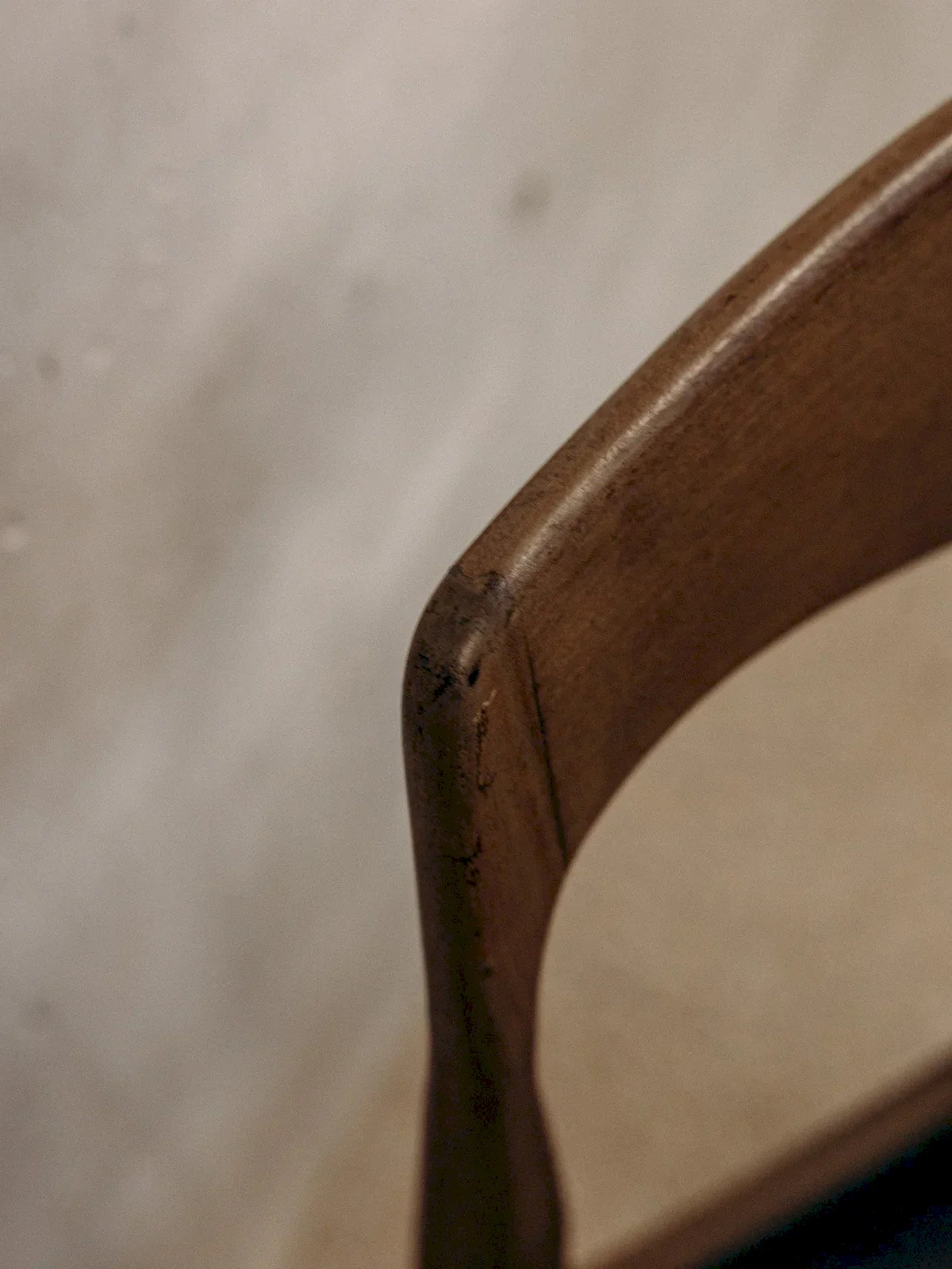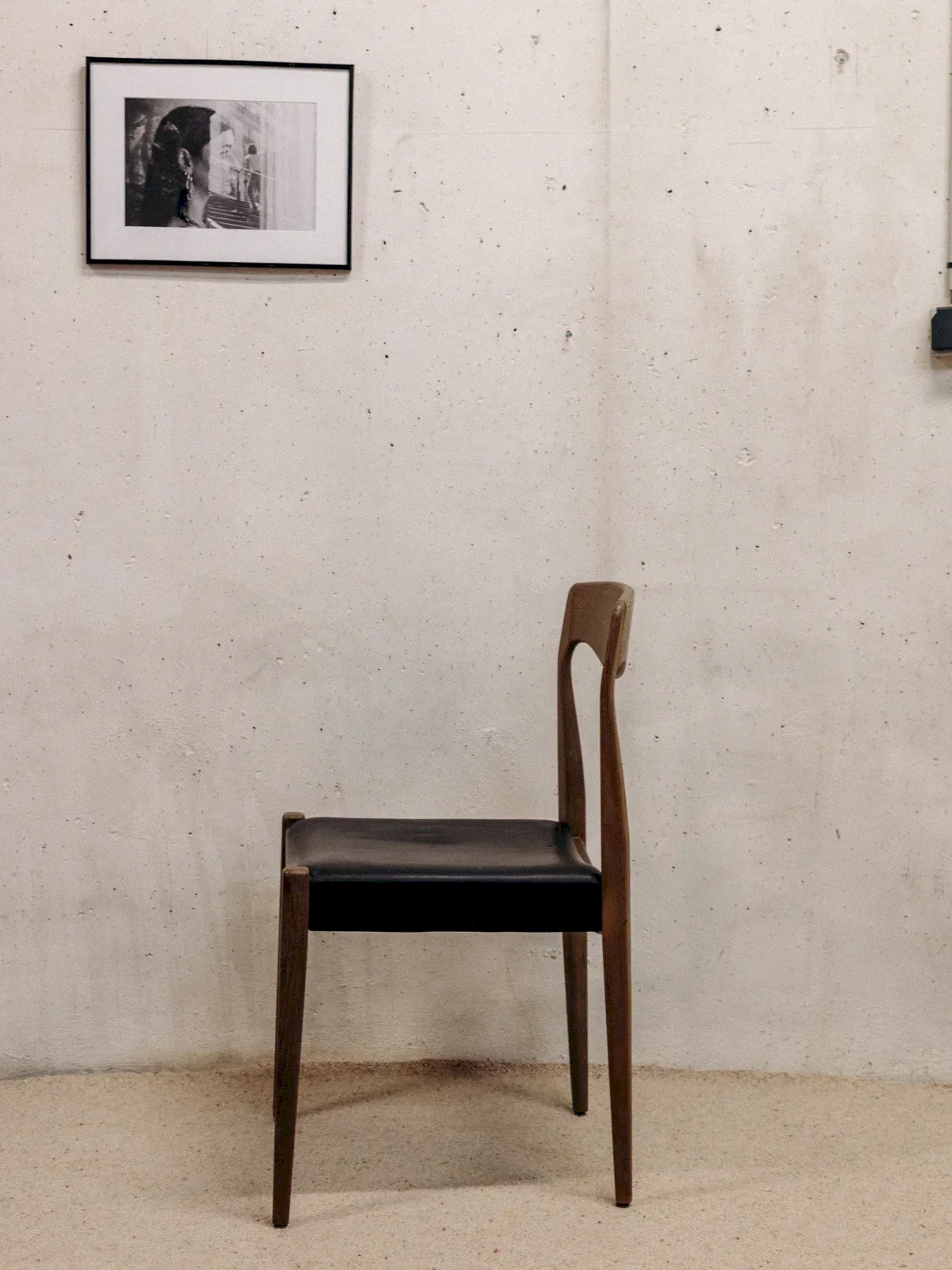 Bring a touch of Scandinavian elegance to your home with this Danish chair featuring a sleek design. Its black faux leather seat combines comfort and style, while its sturdy wooden frame ensures exceptional durability. Although there are some signs of wear, they reflect the authentic character of this vintage piece. Ideal for completing a dining area or a workspace, this chair is a real asset for your decor. Width: 42 cm Height: 82 cm Seat height: 46 cm Depth: 48 cm Condition: Used: Item has been used. Item showing some superficial signs of wear, fully operational and functioning correctly. It may be a display model or an item returned to the store after a short period of use. Any possible imperfections. Color: Multicolored Height: Wood, Faux leather Width: Chairs Brand: Debongout Type: Thrifted product Material: Wood, Faux leather Style: Contemporary