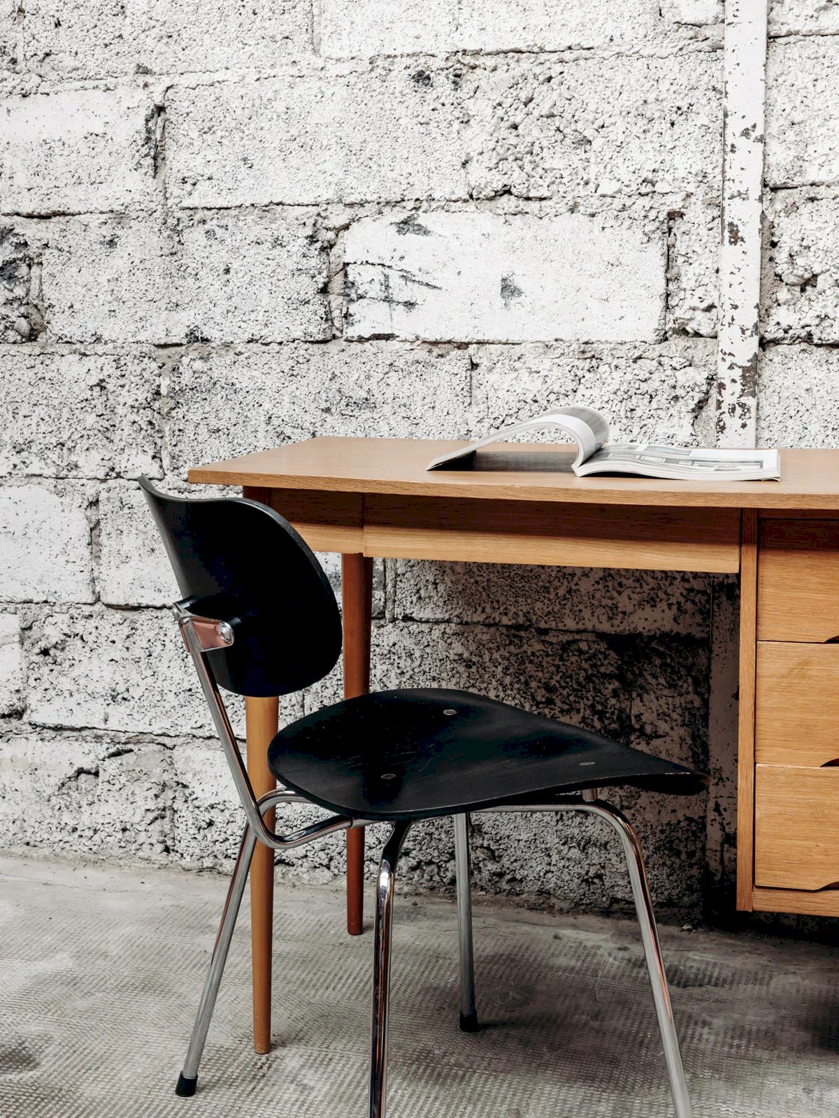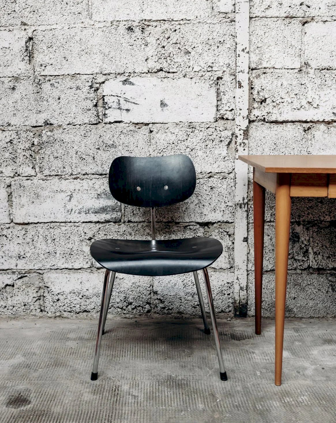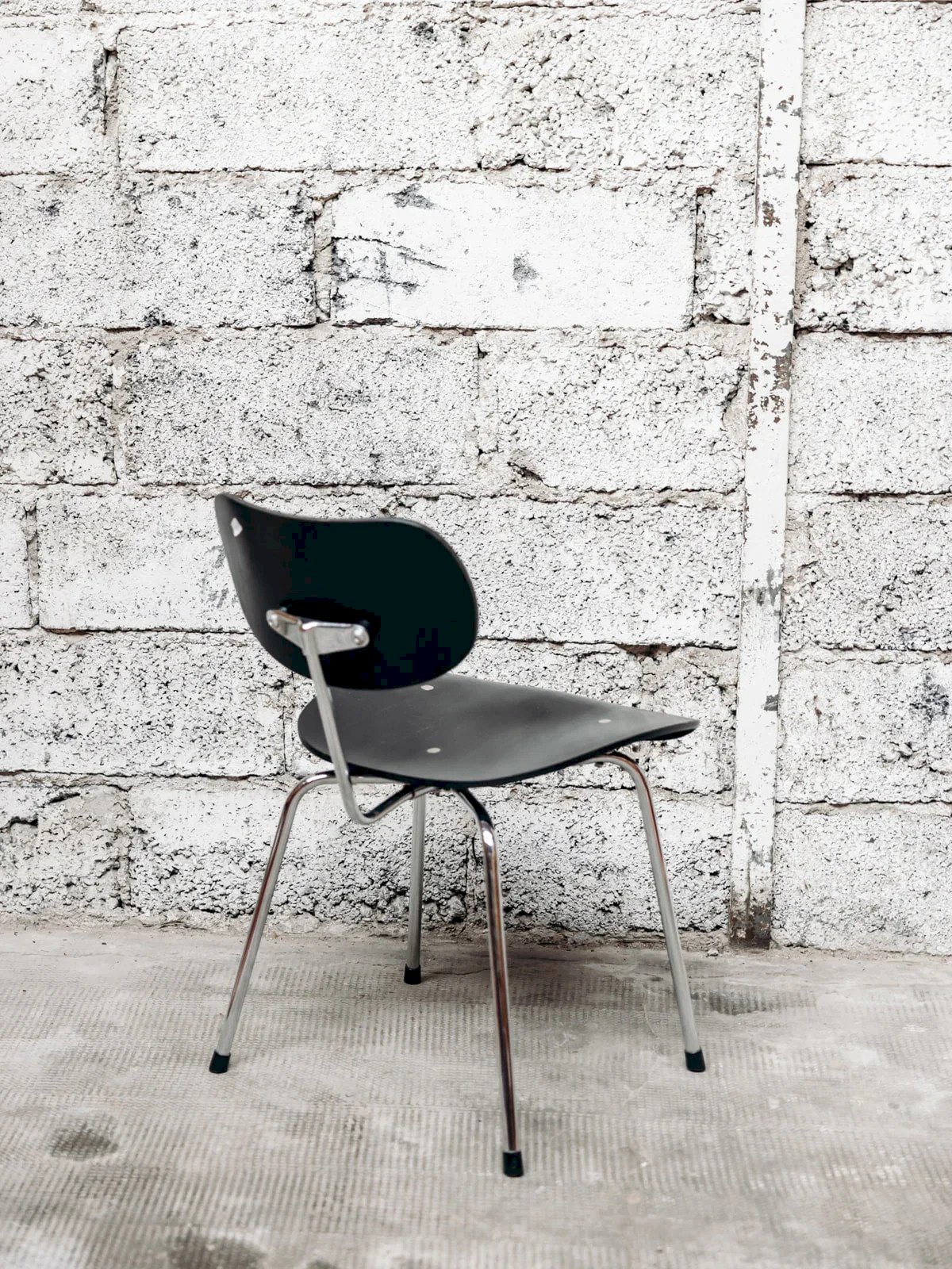 Discover this black wooden chair with chrome metal legs, designed by Egon Eiermann, a true classic of design. Its modern and sleek look adds a sophisticated touch to any interior. Comfortable and durable, this chair is ideal for the dining room or office. Add a timeless style to your decor with this iconic piece that combines aesthetics and functionality. Length: 46 cm Height: 76 cm Seat Height: 47 cm Depth: 51 cm Condition: Used: Item that has been used. Item showing some superficial signs of wear, fully operational and functioning properly. It may be a demonstration model or an item returned to the store after a short period of use. Any possible imperfections. Color: Multicolor Height: Chrome, Metal, Wood Width: Chairs Brand: Debongout Type: Vintage product Material: Chrome, Metal, Wood Style: Contemporary