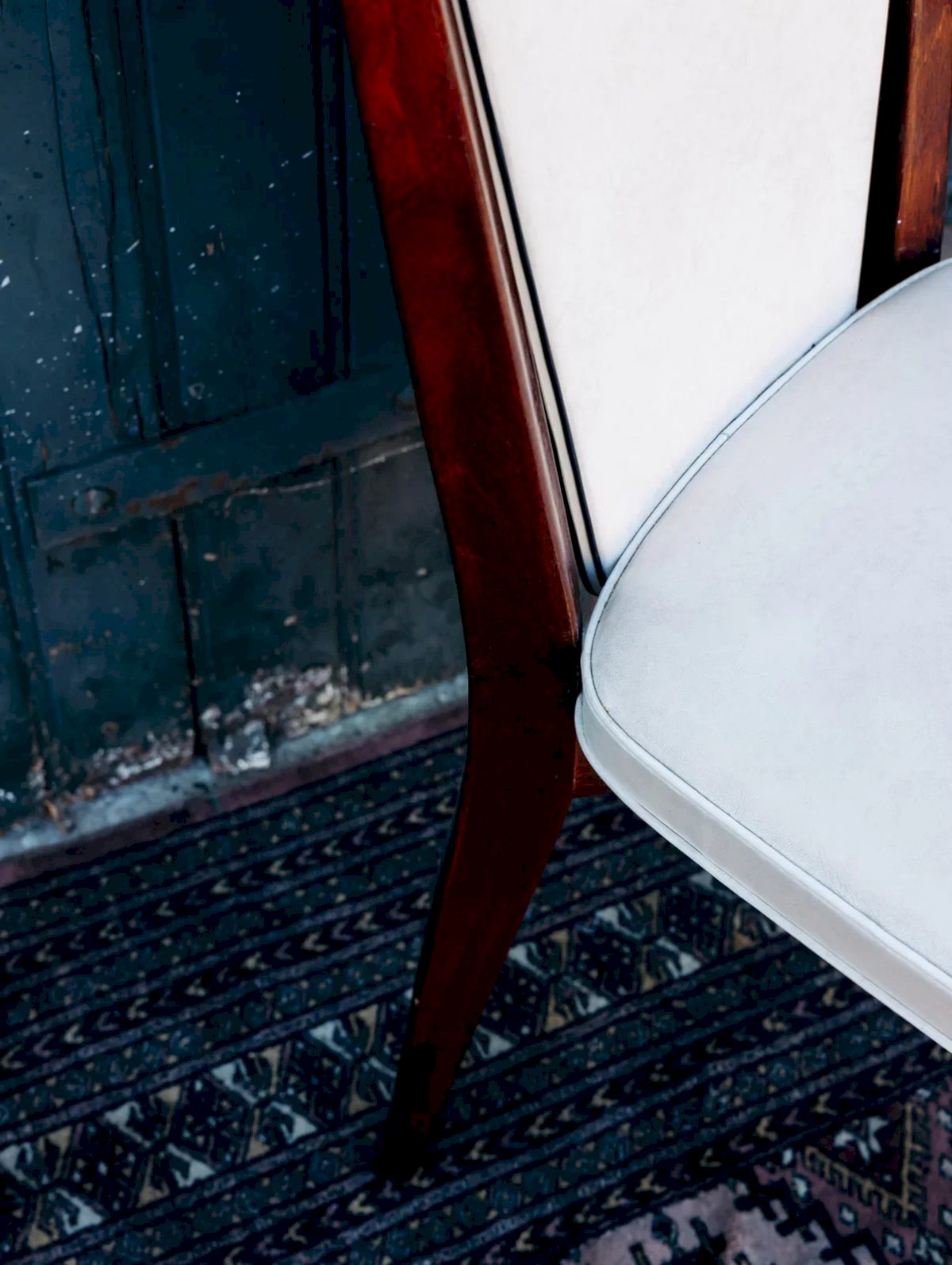 Discover our chair in white wood and faux leather, combining comfort and elegance in a Scandinavian design. With its high backrest, it offers optimal support while adding a modern touch to your interior. The clean lines and quality materials make it a perfect choice to enhance your dining room or office. Bring a note of sophistication to your space with this timelessly styled chair. Online exclusive, the meeting will take place at your home! Length: 39 cm Width: 37 cm Height: 93 cm Seat height: 47 cm Condition: Used: Item that has been used. Item showing some superficial wear, fully operational and functioning correctly. It may be a demonstration model or an item returned to the store after a short period of use, including any imperfections. Color: Multicolor Height: Faux leather, Wood Width: Chairs Brand: Debongout Type: Vintage product Material: Faux leather, Wood Style: Contemporary
