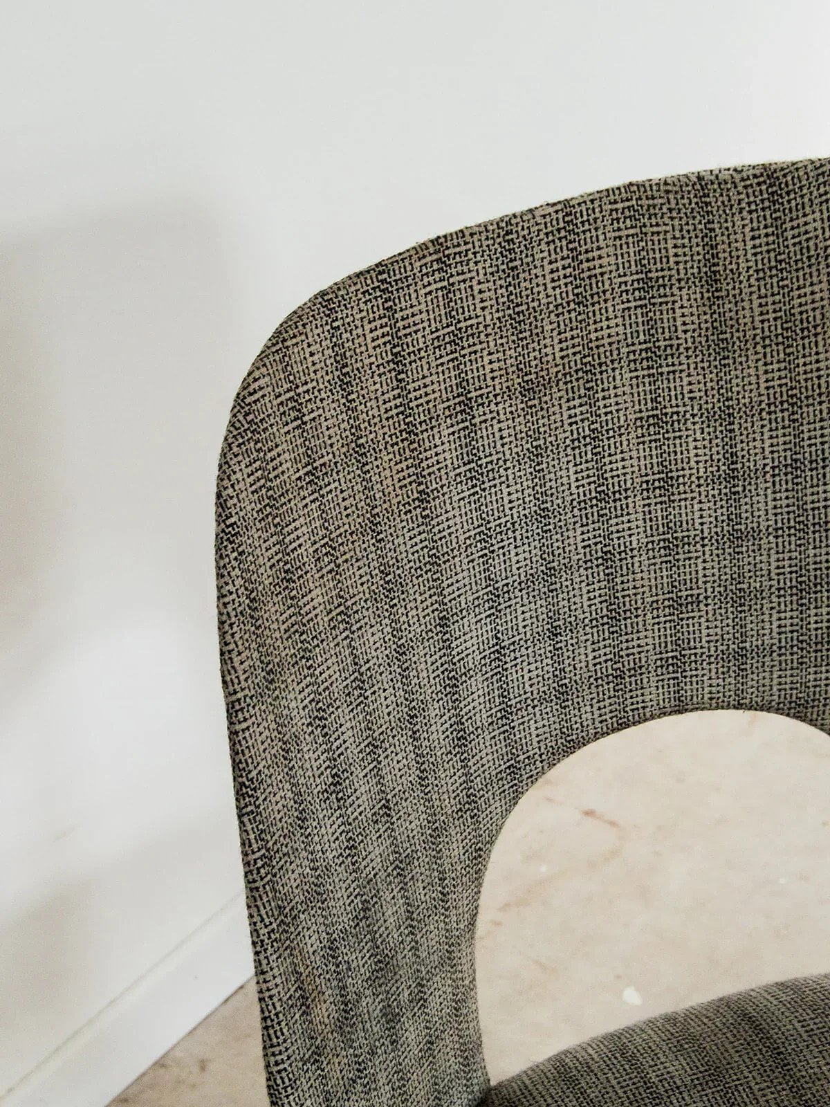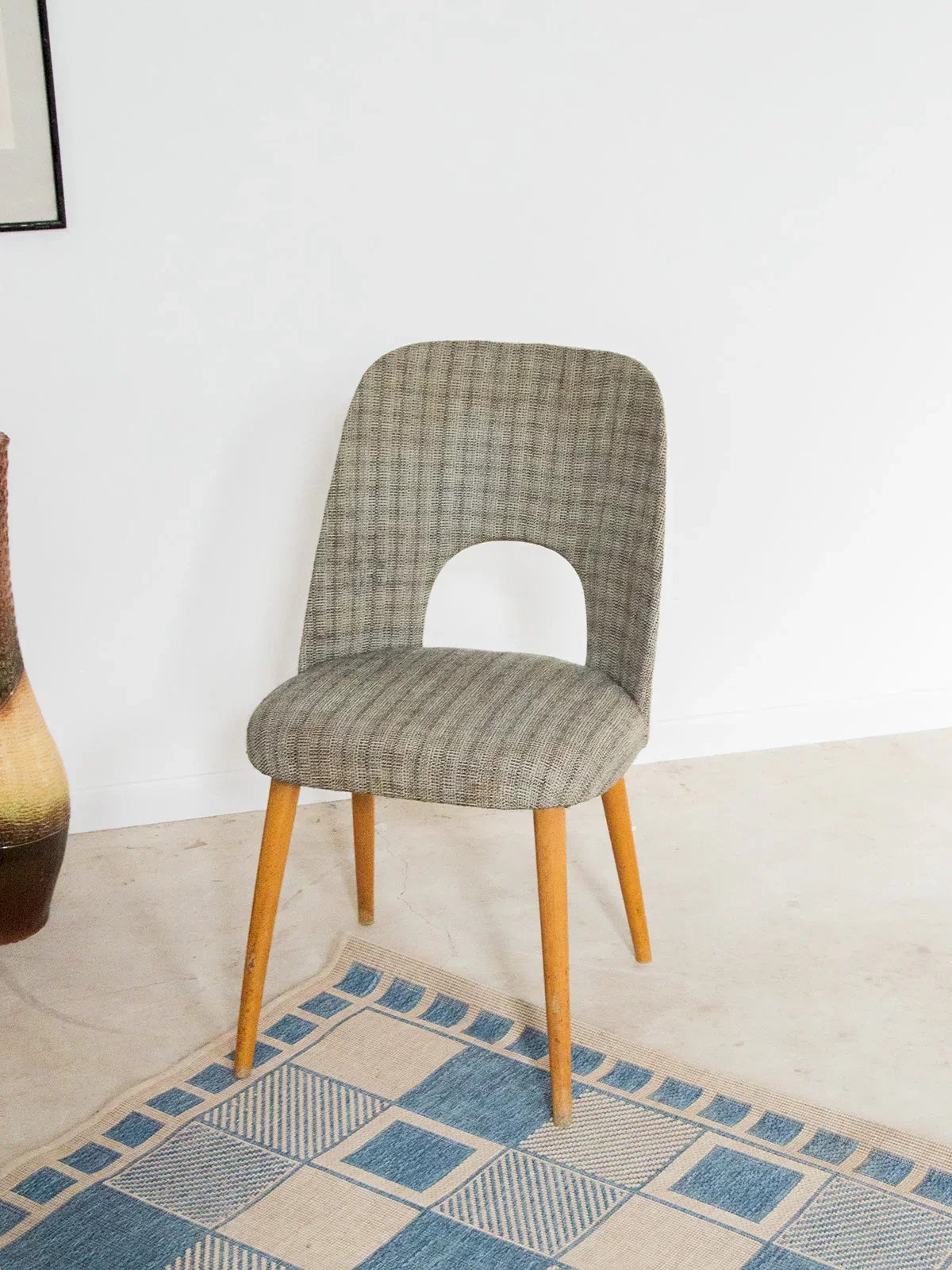 Discover this elegant gray fabric chair, perfect for adding a touch of charm to your interior. Its wooden structure, although slightly damaged, reflects a unique character and a story to tell. Comfortable and aesthetically pleasing, it will easily fit into various decor styles, whether in a living room, a bedroom, or a dining room. Give your spaces a piece with authentic and warm style. Online exclusive, the meeting will take place at your home! Length: 44 cm Width: 44 cm Height: 80 cm Seat Height: 44 cm Condition: Used: Item that has been used. Item showing some superficial signs of wear, ...Used: Item that has been used. Item showing some superficial signs of wear, fully operational and functioning correctly. It may be a demonstration model or an item returned to the store after a short period of use. possible imperfections. Color: Multicolor Height: Fabric, Wood Width: Chairs Brand: Debongout Type: Vintage Product Material: Fabric, Wood Style: Contemporary