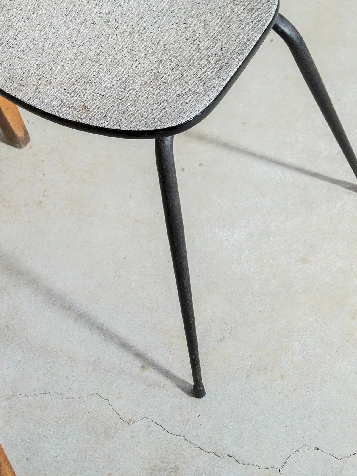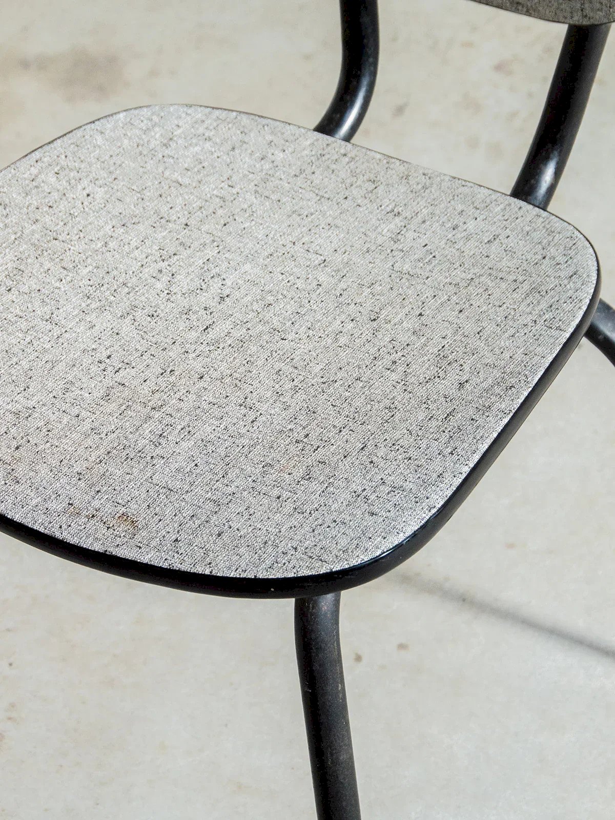 Treat yourself to this gray metal and faux leather chair with a contemporary design. Its black metal frame, subtly patinated, adds a touch of originality while ensuring robustness and stability. The comfort of the gray leather adds a sophisticated note, perfect for enhancing your interior. Ideal for your dining room or office, this chair brilliantly combines style and practicality. Length: 37 cm Width: 35 cm Height: 81 cm Seat height: 43 cm Condition: Used: Item has been used. Item shows some signs of superficial wear... Used: Item has been used. Item shows some signs of superficial wear, fully operational and functioning properly. It may be a display model or an item returned to the store after a short period of use. any possible imperfections. Color: Multicolor Height: Metal, Faux leather Width: Chairs Brand: Debongout Type: Curated product Material: Metal, Faux leather Style: Contemporary