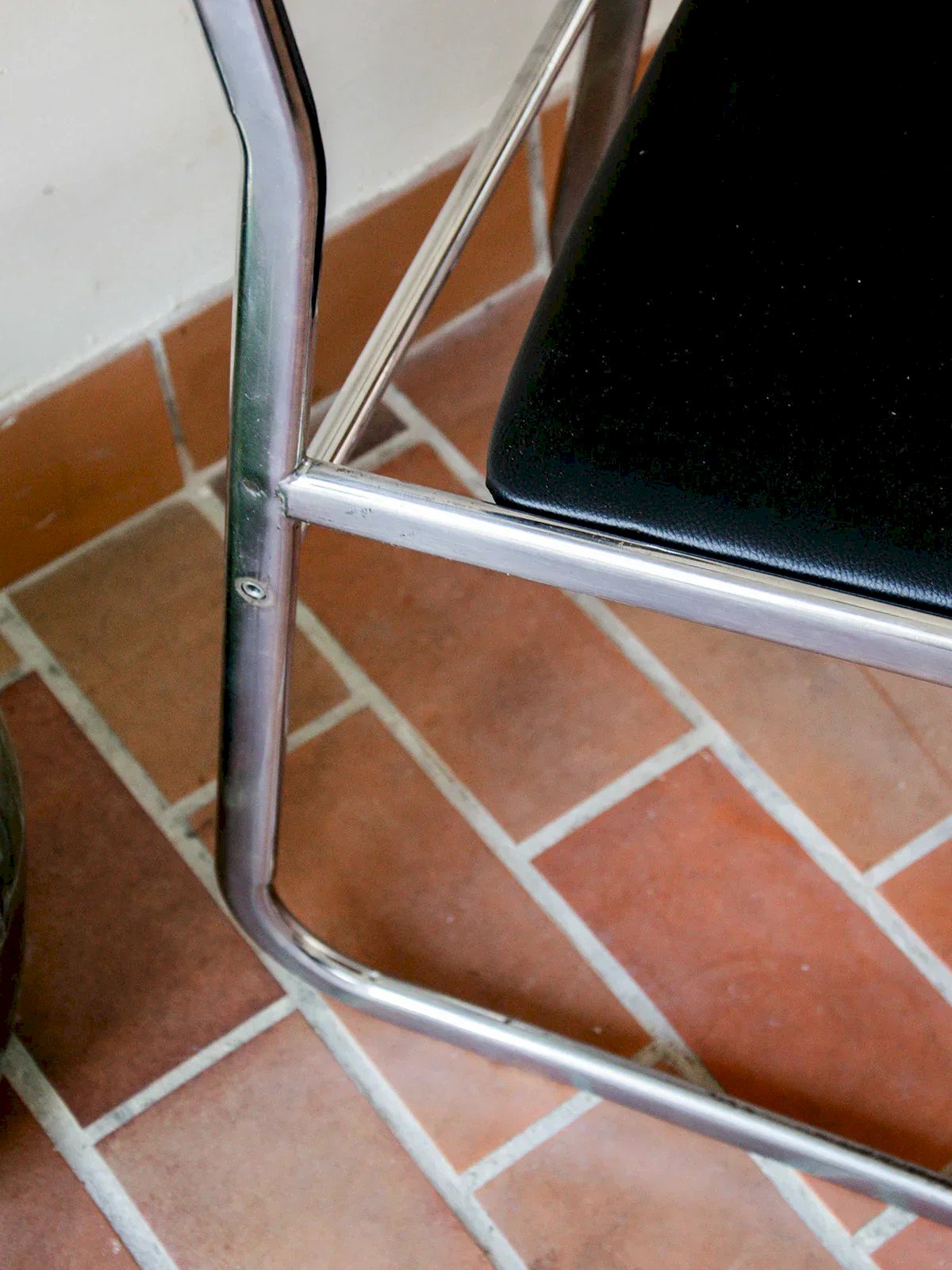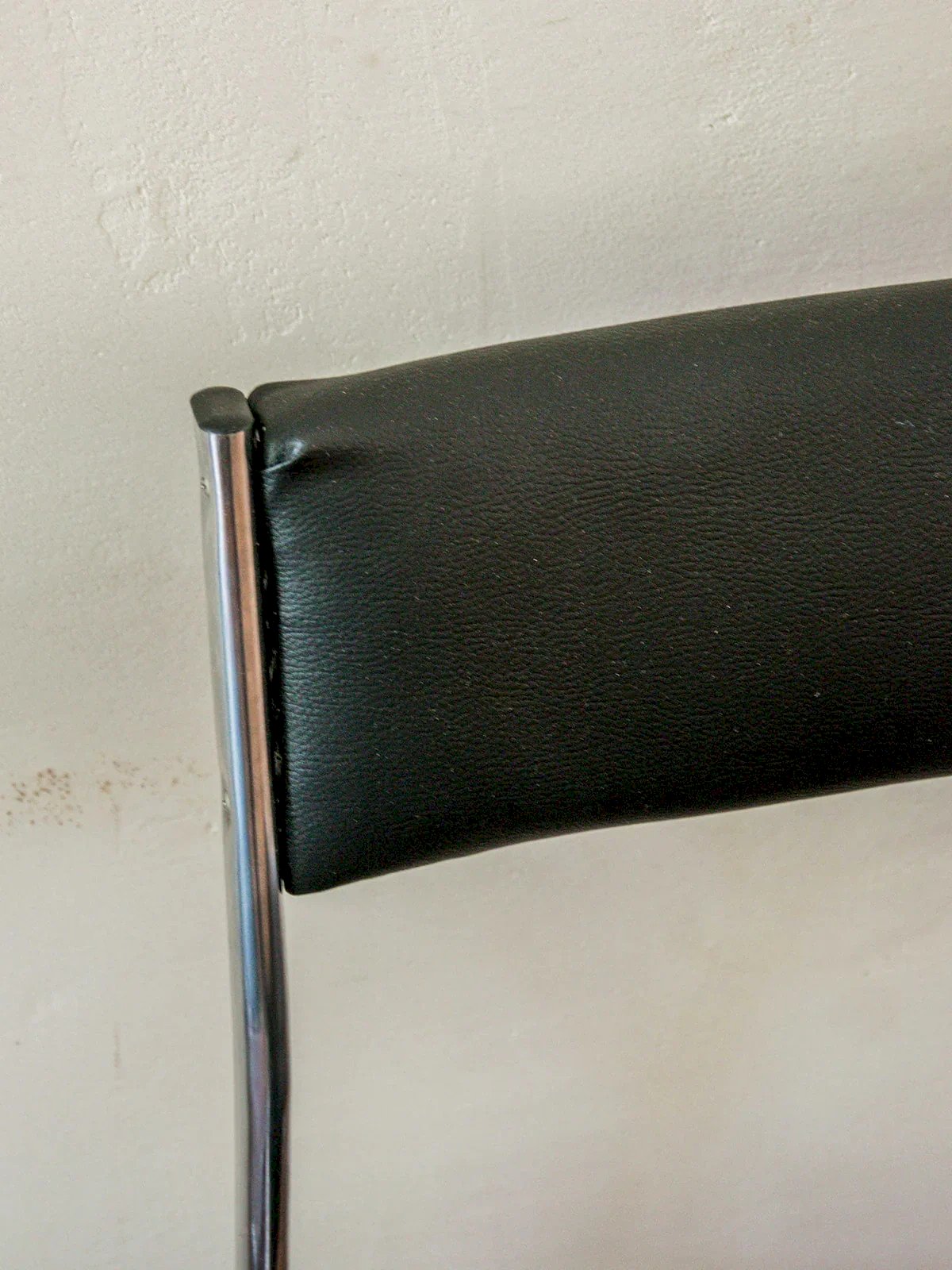 With their minimalist design, these two chairs with clean lines combine a chrome tubular structure and a black faux leather seat. The slightly curved small backrest offers discreet comfort, perfect around a table or as additional seating. A duo with a decidedly retro and graphic look. Length: 43 cm Width: 50 cm Height: 78 cm Seat Height: 42 cm Condition: Used: Item that has been used. Item showing some superficial signs of wear, fully operational and working correctly. It may be a demonstration model or an item returned to the store after a short period of use along with any potential imperfections. Color: Multicolor Height: Chrome Width: Chairs Brand: Debongout Type: Thrifted Product Material: Chrome Style: Contemporary.