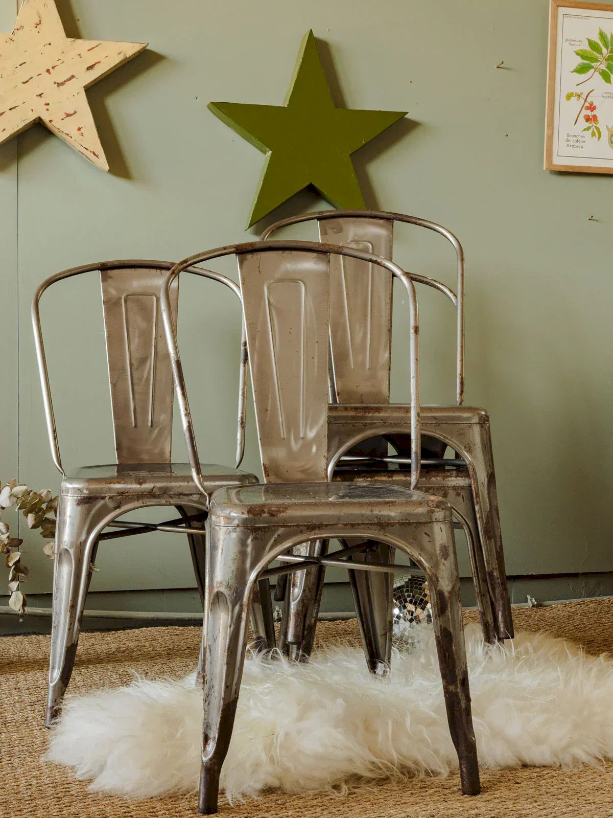 Discover the Tollix chair in patinated gray metal, a must-have of industrial design. Each piece features unique traces of wear and patina, showcasing its authentic charm. Sold individually, this chair combines sturdiness and aesthetic appeal, adding a vintage touch to your interior. Four pieces are available to enhance your space stylishly. Length: 42 cm Width: 35.5 cm Height: 84.5 cm Seat height: 43.5 cm Condition: Used item. Item shows some superficial wear marks... Used item. Item shows some superficial wear marks, fully operational and functioning correctly. It may be a demonstration model or an item returned to the store after a short period of use. any possible imperfections. Color: Multicolor Height: Metal Width: Chairs Brand: Debongout Type: Vintage product Material: Metal Style: Contemporary
