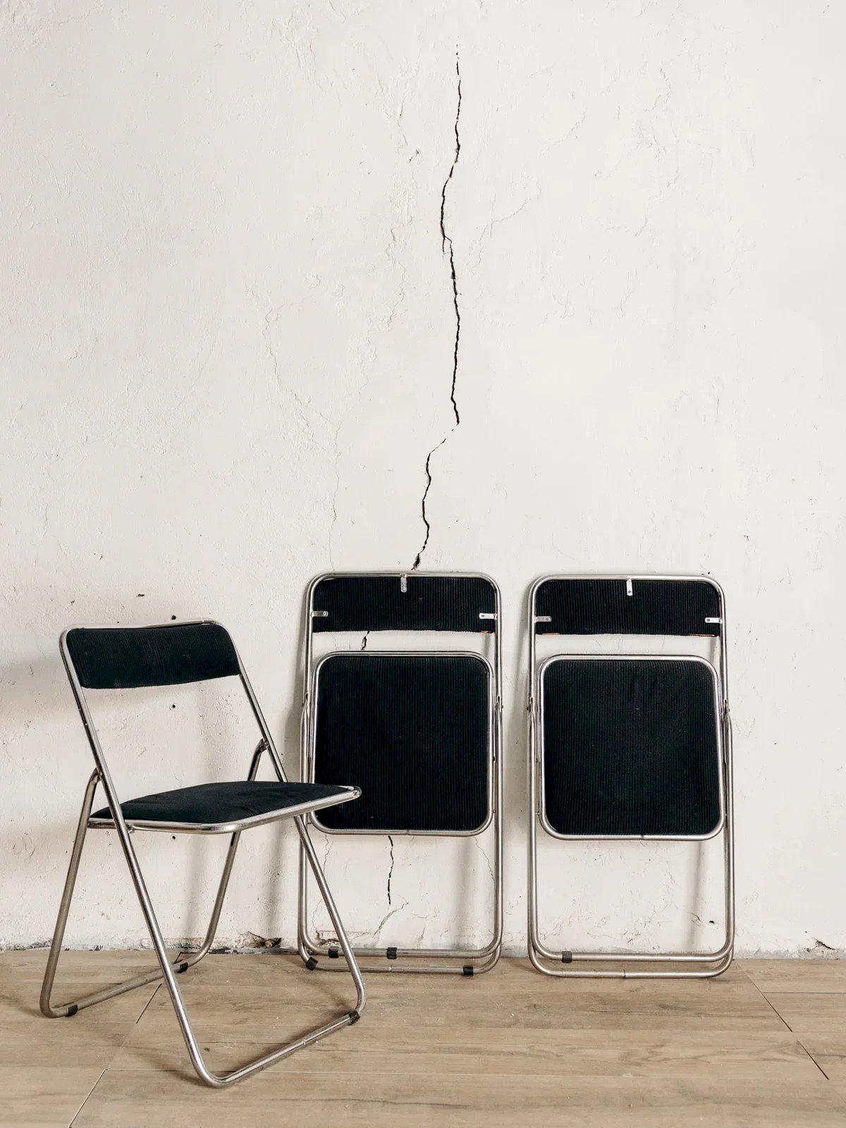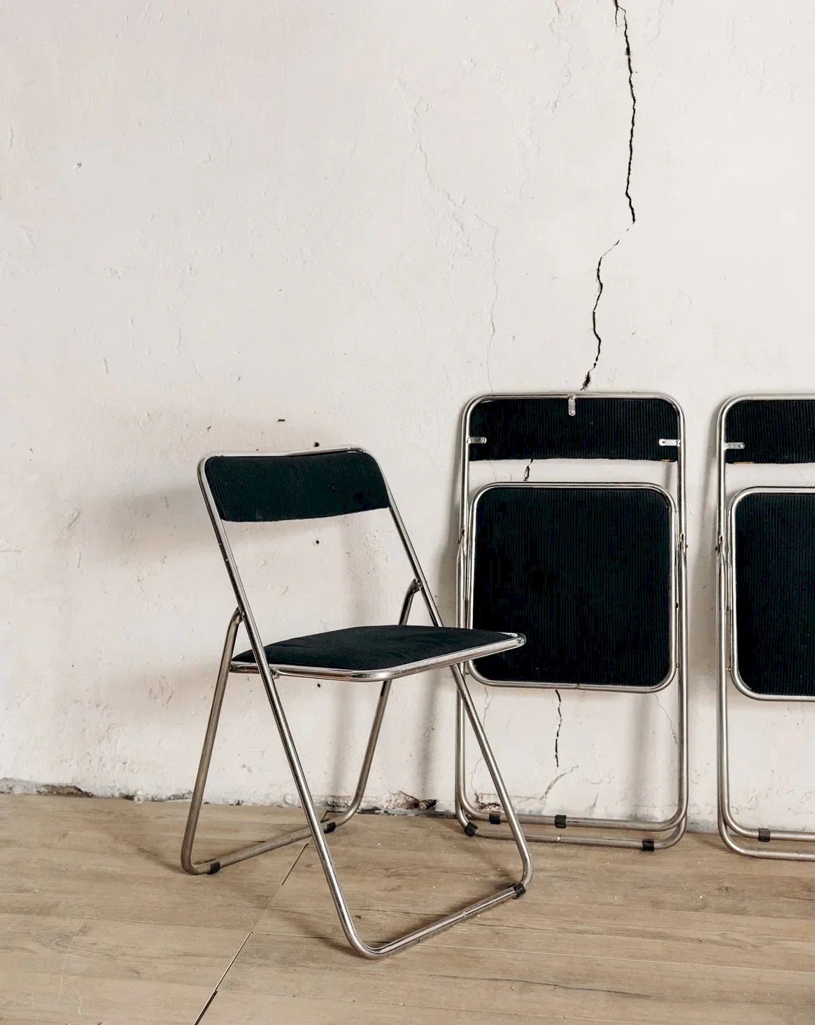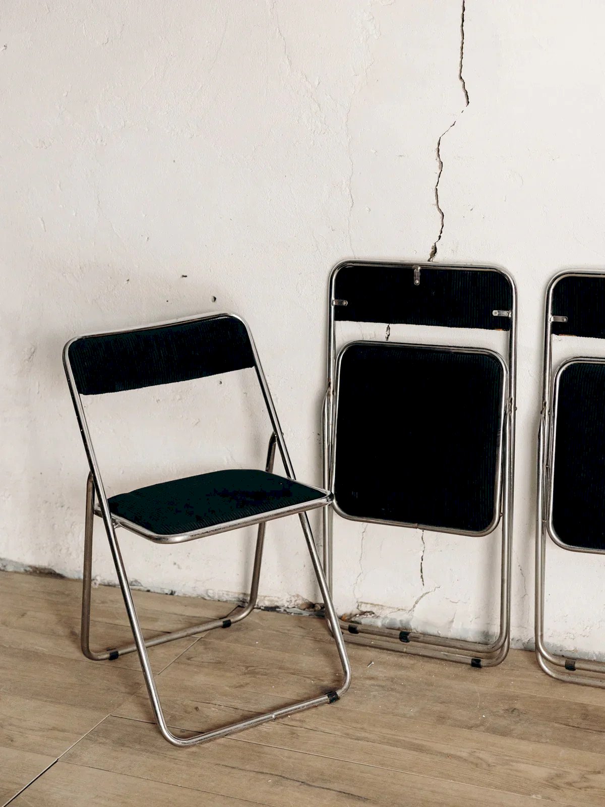 Discover our set of foldable metal chairs, combining functionality and elegance. Their black fabric seat adds a contemporary touch, while their folding design allows for easy and convenient storage. Perfect for outdoor dining or social moments, these chairs offer the ideal balance of comfort and style, harmoniously fitting into any type of space. Sold separately, 6 units available. Length: 45 cm Height: 88 cm Seat height: 45 cm Depth: 41 cm Condition: Used: Item has been used. Item showing some signs of superficial wear, ...Used: Item has been used. Item showing some signs of superficial wear, fully operational and functioning correctly. It may be a demonstration model or an item returned to the store after a short period of use. possible imperfections. Color: Multicolor Height: Fabric, Metal Width: Chairs Brand: Debongout Type: Thrift product Material: Fabric, Metal Style: Contemporary