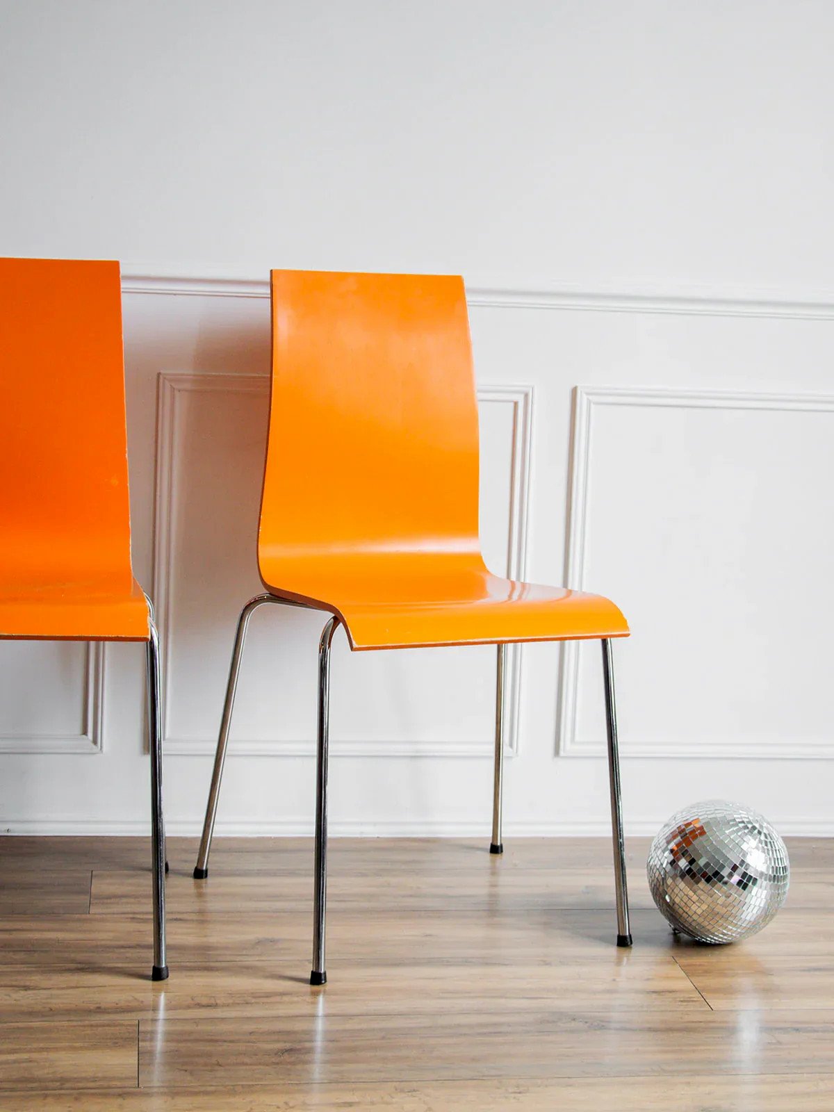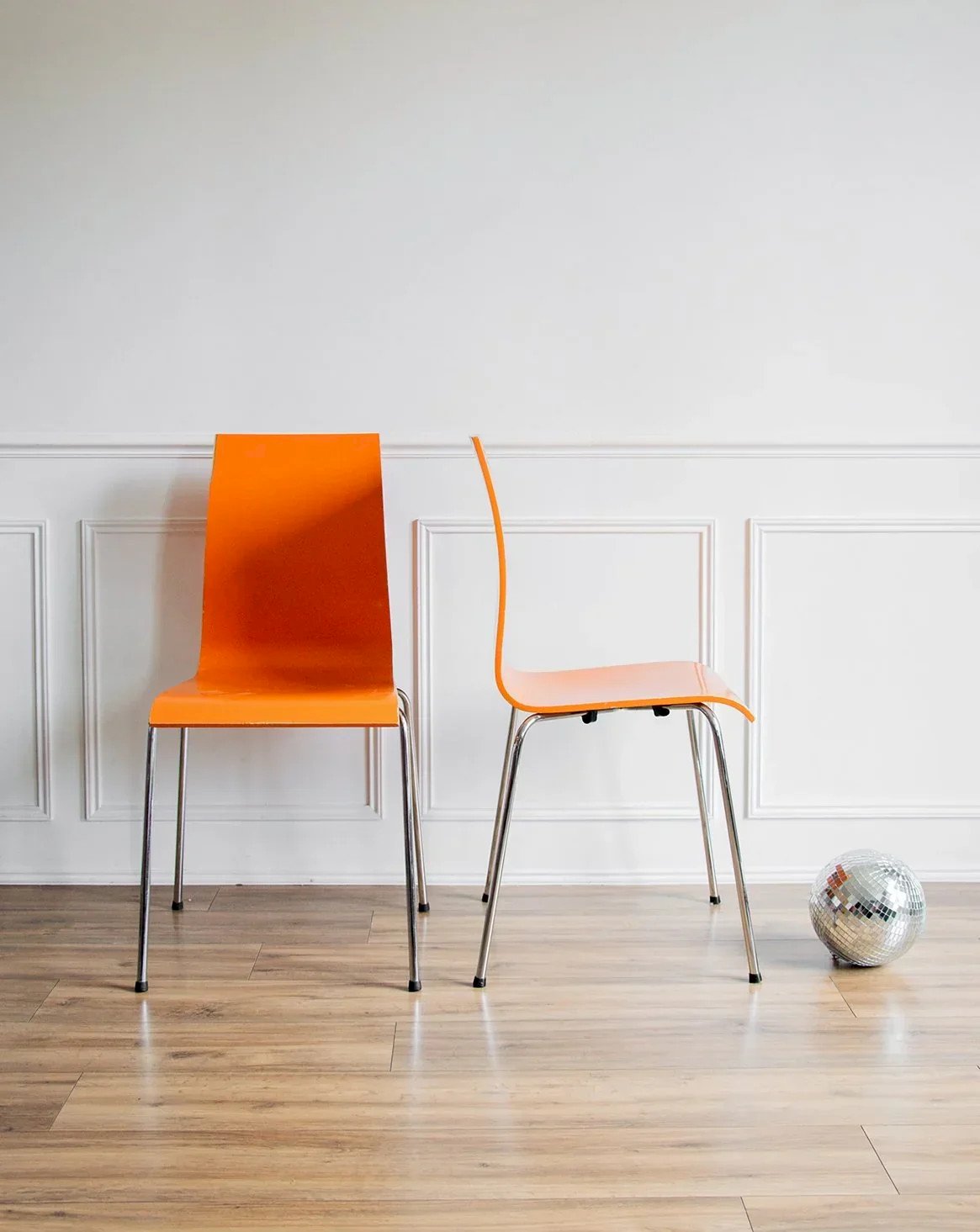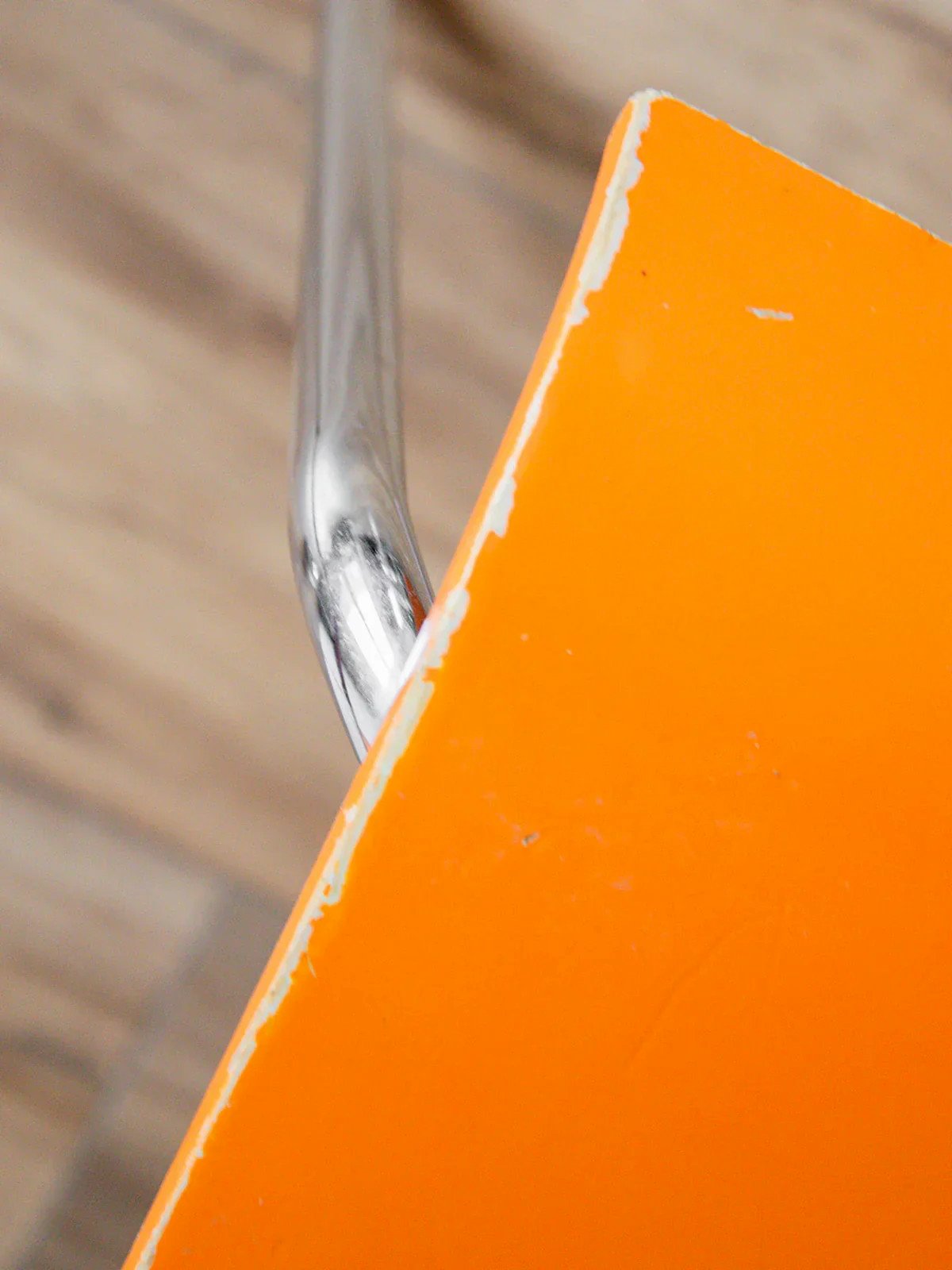 Add a vintage touch to your interior with this unique orange wooden chair. Its high backrest and chrome base combine comfort and aesthetics. An ideal choice for those who appreciate the charm of objects with a second life. Please note that these vintage pieces show some chipping on the edges, seat, and backrest, reflecting their history. Sold separately, seven pieces available. Seat width: 40.5 cm Height: 90.5 cm Seat height: 47 cm Depth: 43.5 cm Seat depth: 40.5 cm Condition: Used: Item has been used. Item shows some superficial signs of wear, ... Used: Item has been used. Item shows some superficial signs of wear, fully operational and functioning correctly. It may be a demonstration model or an item returned to the store after a short period of use. the possible imperfections. Color: Multicolor Height: Wood, Metal Width: Chairs Brand: Debongout Type: Vintage product Material: Wood, Metal Style: Contemporary