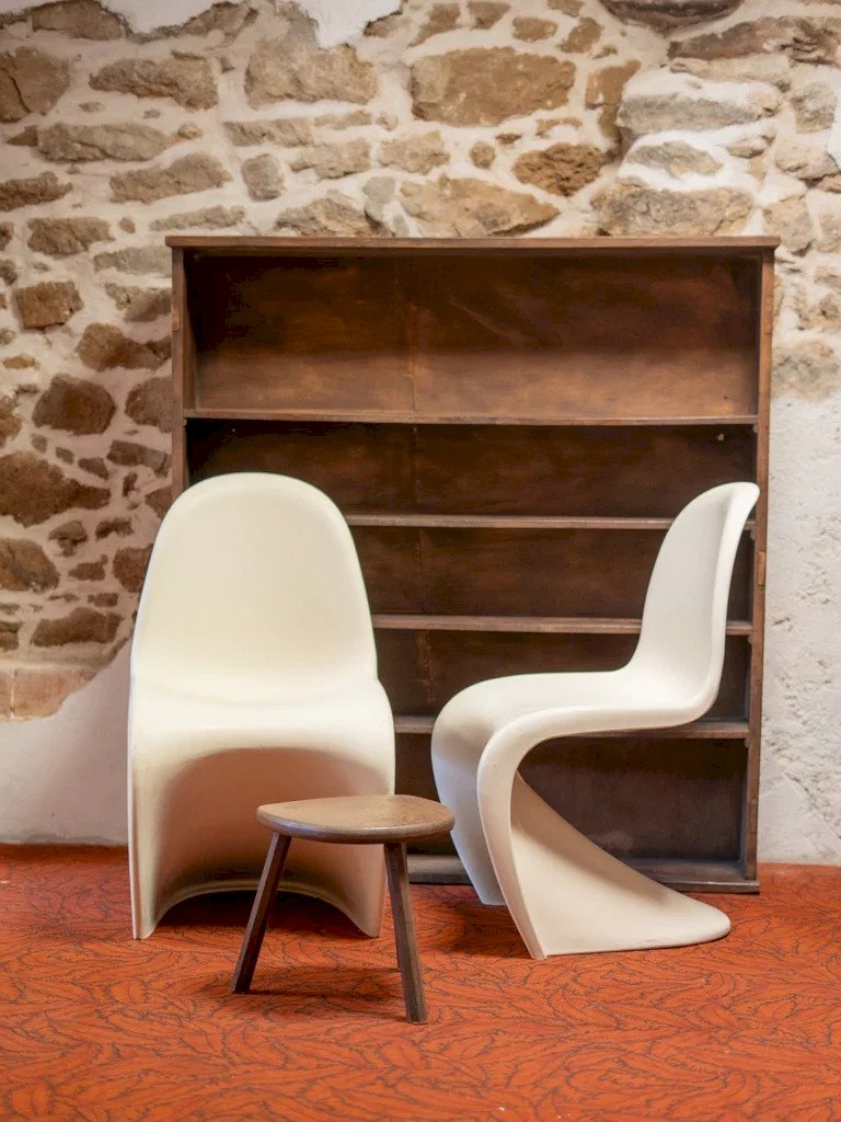 Discover our iconic pair of Panton-style chairs from the 90s. Made of fiberglass, they combine comfort and aesthetics in a bold and timeless design. With their elegant and fluid silhouette, these chairs will add a touch of modernity to your interior. Don't wait any longer to treat yourself to this iconic piece with a unique charm! 3 lots available, sold individually. Length: 49 cm Width: 38.5 cm Height: 85.5 cm Seat height: 47.5 cm Condition: Used: Item has been used. Item shows some superficial signs of wear, ... Used: Item has been used. Item shows some superficial signs of wear, fully operational and functioning properly. It may be a demonstration model or an item returned to the store after a short period of use. any imperfections. Color: Multicolor Height: Fiberglass Width: Chairs Brand: Debongout Type: Thrifted product Material: Fiberglass Style: Contemporary