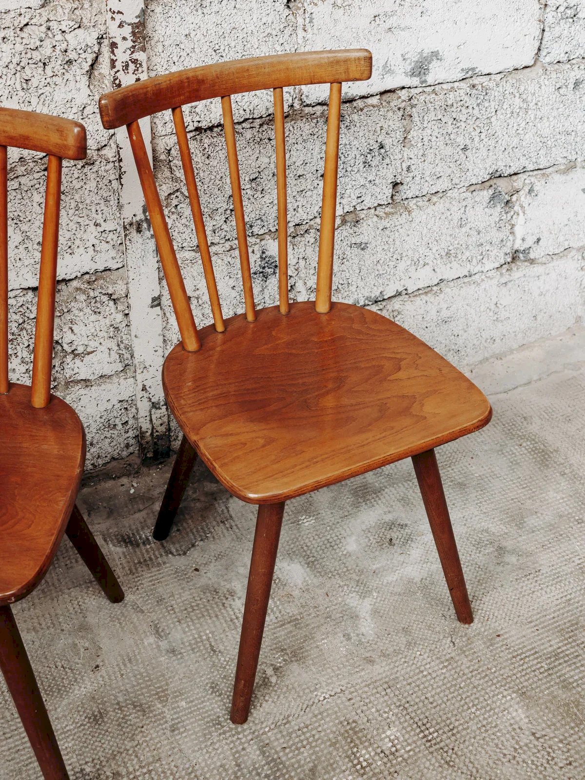 Bring a touch of freshness and comfort to your interior with this pair of light wood chairs. The 5-bar backrest ensures optimal support while offering a sleek and modern design. With their large seats, these chairs are ideal for relaxing moments or friendly meals. Their light wood brings brightness and lightness to any room. A perfect choice to complete a dining room or a dining area in a natural and elegant style. Length: 41 cm Height: 83 cm Seat height: 46 cm Depth: 41 cm Condition: Used item. Item showing some signs of superficial wear, fully operational and functioning correctly. It may be a display model or an item returned to the store after a short period of use. Any imperfections. Color: Multicolor Height: Wood Width: Chairs Brand: Debongout Type: Vintage product Material: Wood Style: Contemporary