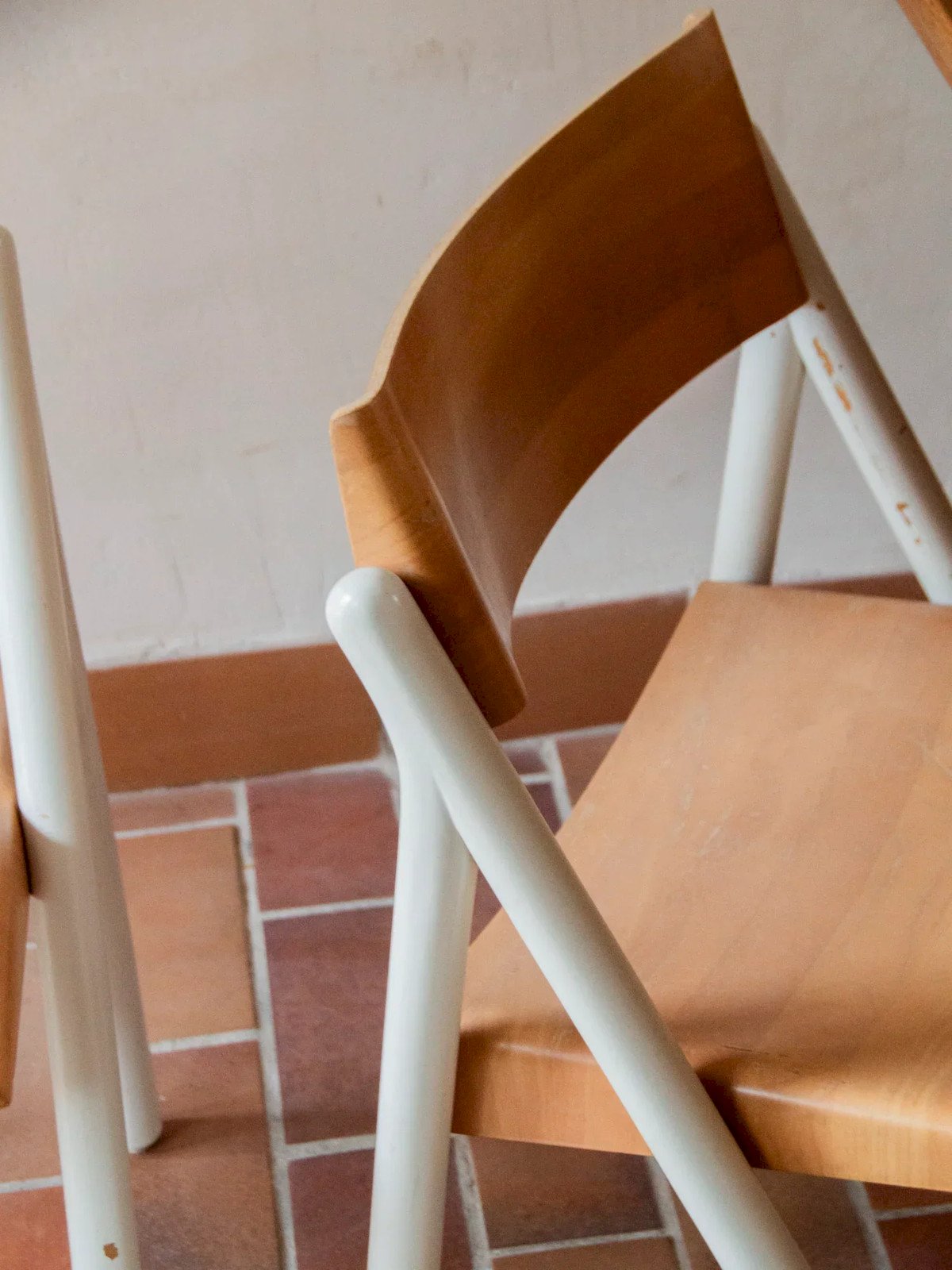 Discover these iconic 80s chairs with a sleek and elegant design. Their bicolor combination of light wood and white adds a touch of modernity and character to your interior. Inspired by the famous Noruega chairs by Gastão Machado, they blend lightness and sturdiness, providing a comfortable seat ideal for the living room or office. Although the set shows some signs of wear, it remains in very good overall condition and ensures excellent stability for daily use. Width: 51 cm Height: 76 cm Seat Height: 45 cm Depth: 47 cm Condition: Used: Item has been used. Item shows some superficial signs of wear...Used: Item has been used. Item shows some superficial signs of wear, fully operational and functioning correctly. It may be a demonstration model or an item returned to the store after a short period of use. Any imperfections. Color: Multicolor Height: Wood Width: Chairs Brand: Debongout Type: Vintage product Material: Wood Style: Contemporary