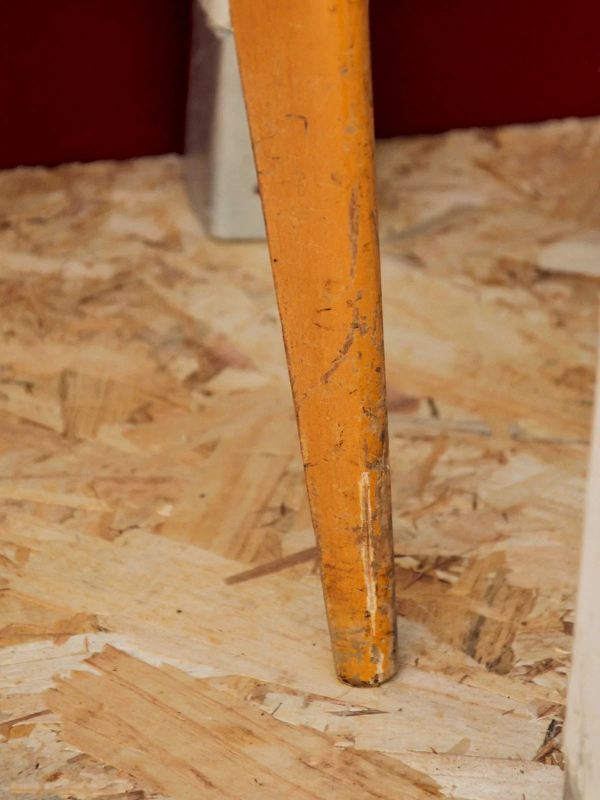 A chair with a distinctly retro charm. Made of warm wood and featuring a bright red vinyl seat, it brings a nice dose of character to your interior. We love its simple yet assertive look, the details that tell its story, and the little marks of time that make it unique. Perfect around a dining table or in a cozy coffee corner, it infuses a friendly and vintage atmosphere without ever being over the top. Sold separately, three pieces available. Length: 39 cm Height: 86 cm Seat height: 46 cm Depth: 41 cm Seat depth: 36 cm Condition: Used item with some superficial signs of wear..., used item with some superficial signs of wear, fully operational and functioning correctly. It may be a display model or an item returned to the store after a short period of use, including any potential imperfections. Color: Multicolor Height: Wood, Skai, Vinyl Width: Chairs Brand: Debongout Type: Vintage product Material: Wood, Skai, Vinyl Style: Contemporary