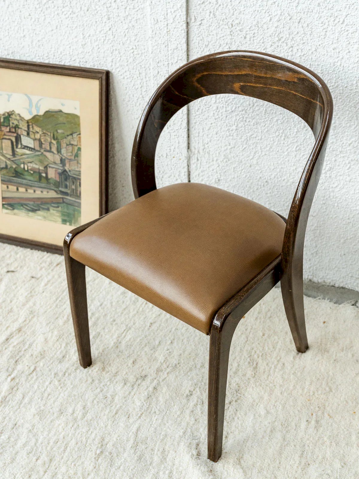 Discover the Baumann gondola chairs, combining elegance and comfort. Made of quality wood with a faux leather covering, they bring a contemporary touch to your interior. Their clean and ergonomic design makes them the perfect choice for your living room or dining room. Treat yourself to furniture that is both aesthetic and functional, ideal for your moments of conviviality. Sold in sets of 2 chairs, 3 sets available. Web exclusive, the meeting will take place at your home! Width: 48.5 cm Height: 79.5 cm Seat height: 47.5 cm Seat depth: 43 cm Condition: Used: Item has been used. Item shows some signs of superficial wear, ... Used: Item has been used. Item shows some signs of superficial wear, fully operational and functioning correctly. It may be a display model or a returned item after a short period of use. any possible imperfections. Color: Multicolor Height: Wood, Faux leather Width: Chairs Brand: Debongout Type: Vintage product Material: Wood, Faux leather Style: Contemporary