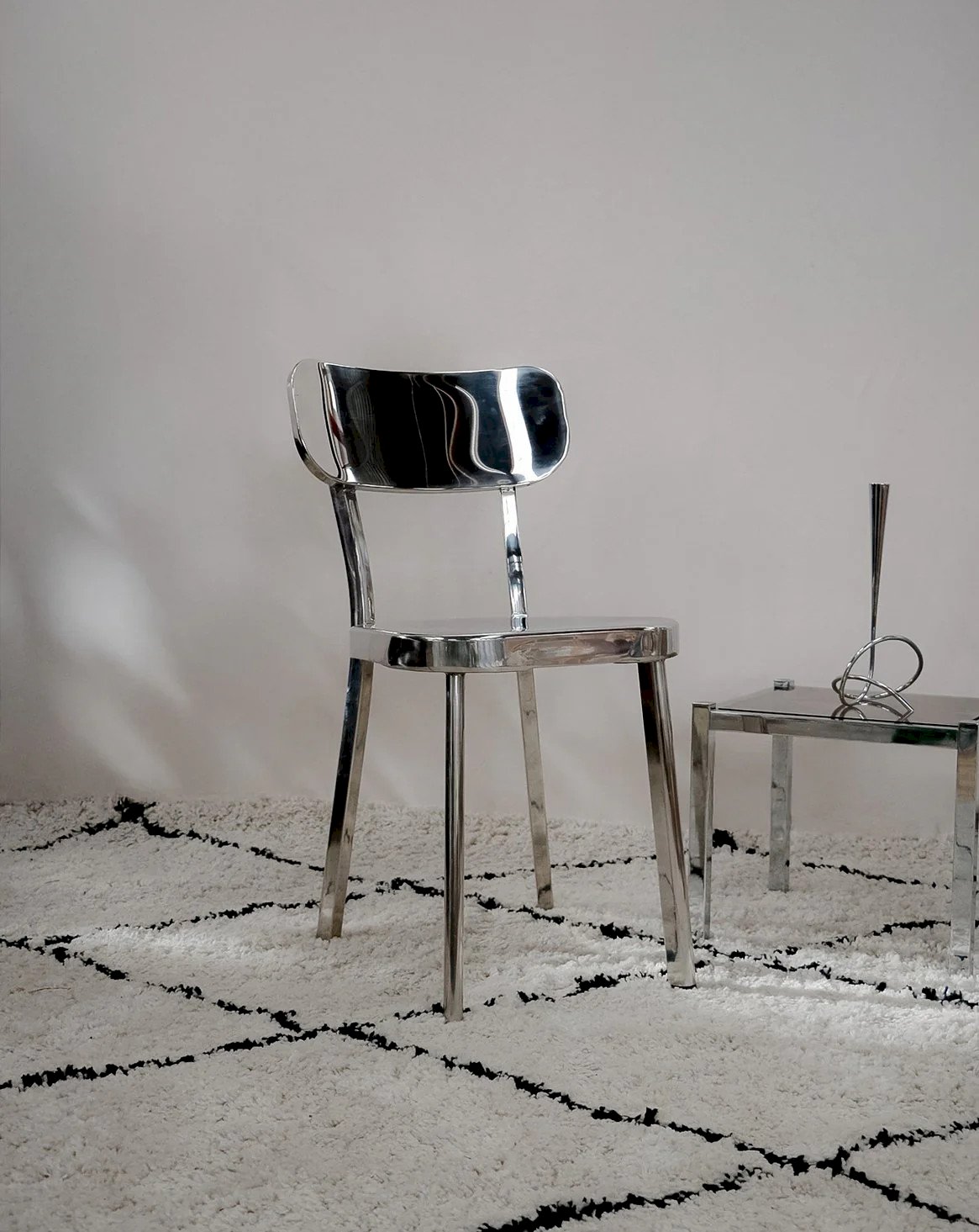 Adopt this chrome stainless steel chair, the embodiment of a sober and contemporary design from the 2000s. Its slender profile and compact seat offer a practical seating solution for a narrow kitchen or a minimalist dining room, while the seat height makes it compatible with most tables. The polished metal base elegantly structures the whole and reflects light to enliven the space. An easy-to-integrate chair for an urban and refined ambiance. Sold individually, two pieces are available. Sold individually, 2 quantities are available. Width: 42 cm Seat width: 33 cm Depth: 42 cm Seat depth: 35 cm Height: 77 cm Seat height: 45 cm Condition: Used: Item has been used. Item shows some superficial signs of wear, ... Used: Item has been used. Item shows some superficial signs of wear, fully operational and functioning correctly. It may be a display model or an item returned to the store after a short period of use, with any potential imperfections. Color: Multicolor Height: Stainless steel, Metal Width: Chairs Brand: Debongout Type: Vintage product Material: Stainless steel, Metal Style: Contemporary