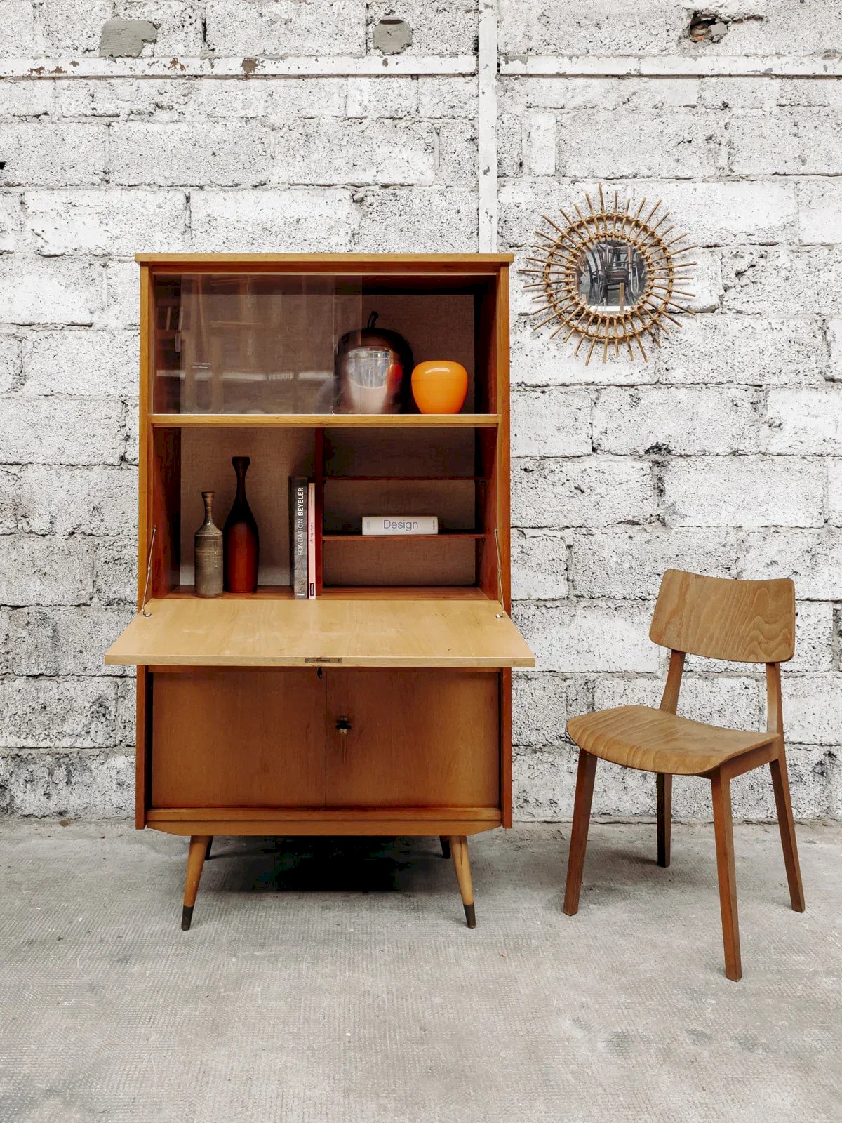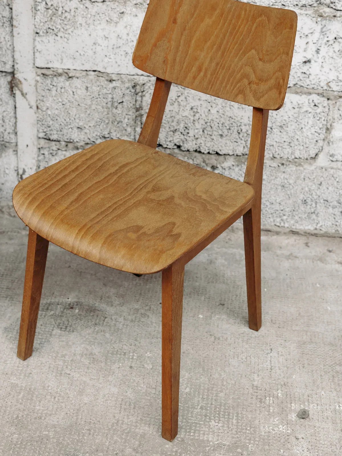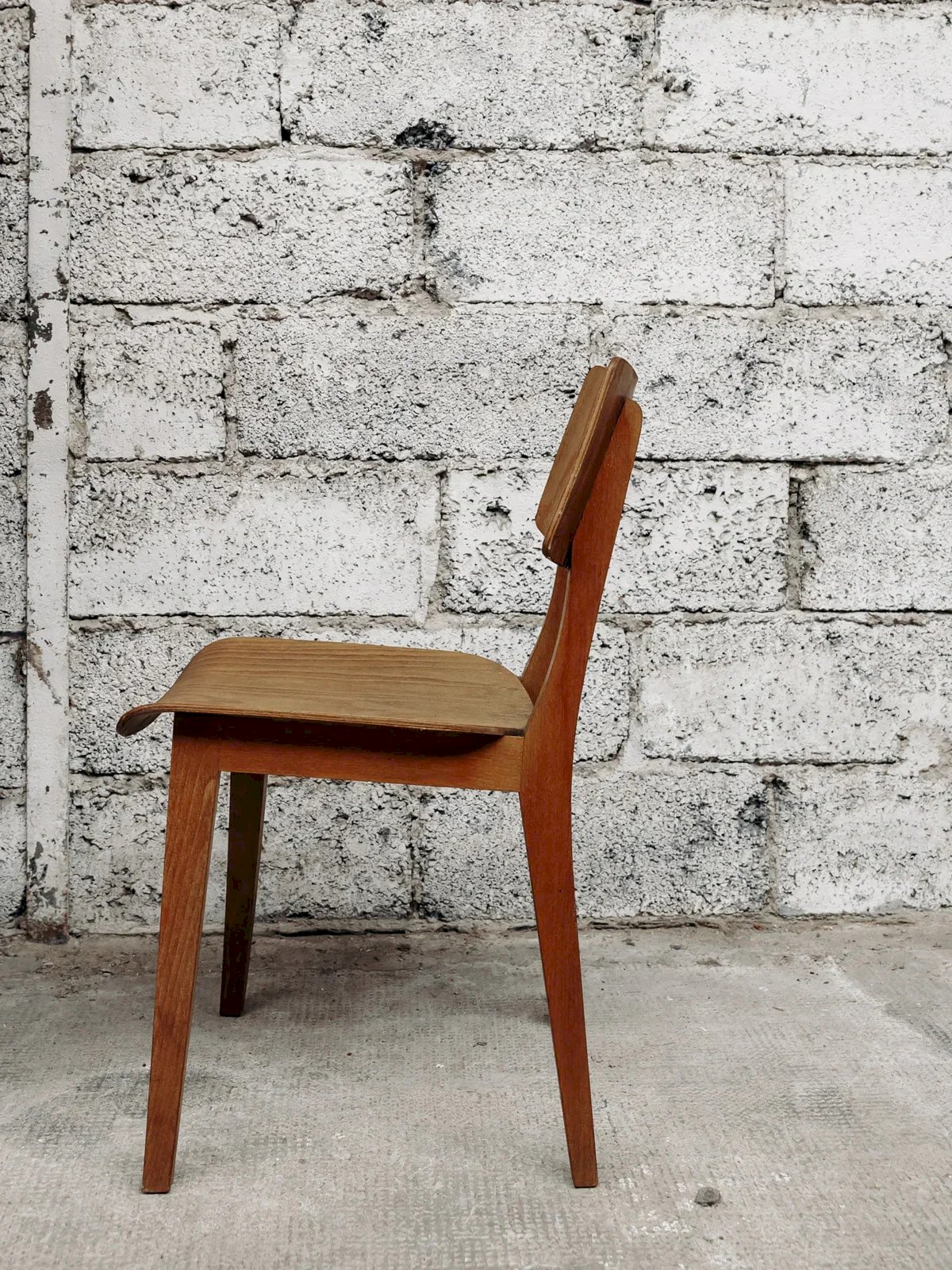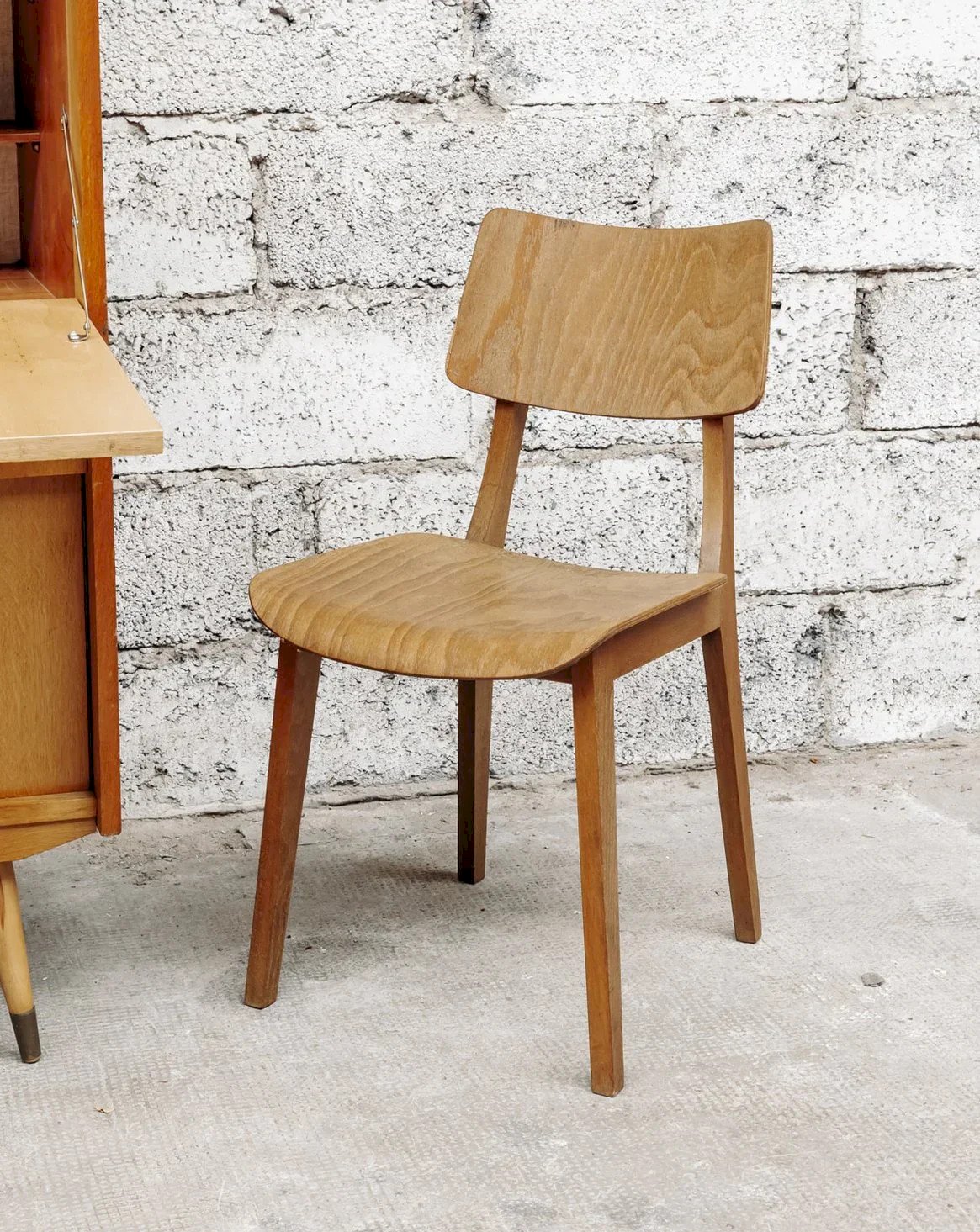 This small wooden chair in the French modernist style combines simplicity and elegance. Its sleek design and geometric lines perfectly characterize the spirit of modernism while providing subtle comfort. Perfect for adding a touch of sophistication and character to your interior, it easily fits into a modern or vintage space. Online exclusive, the meeting will take place at your home! Length: 41 cm Width: 43 cm Height: 80 cm Seat height: 46 cm Condition: Used: Item that has been used. Item showing some superficial signs of wear, fully operational and functioning correctly. It may be a display model or an item returned to the store after a short period of use. possible imperfections. Color: Multicolored Height: Wood Width: Chairs Brand: Debongout Type: Thrifted product Material: Wood Style: Contemporary