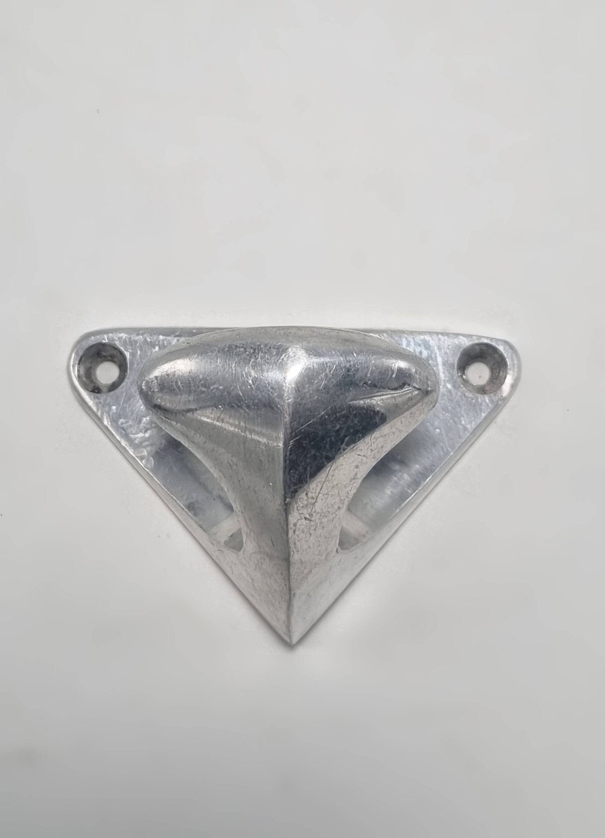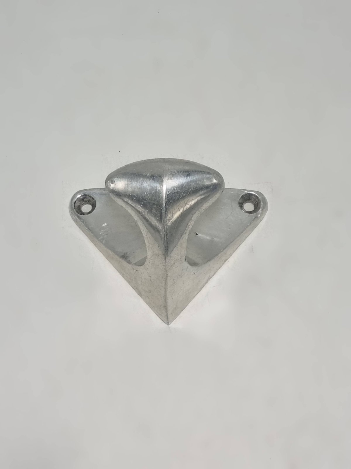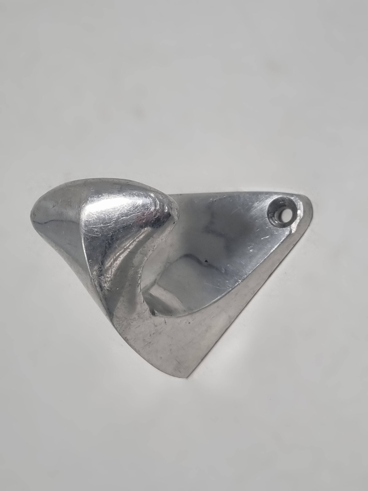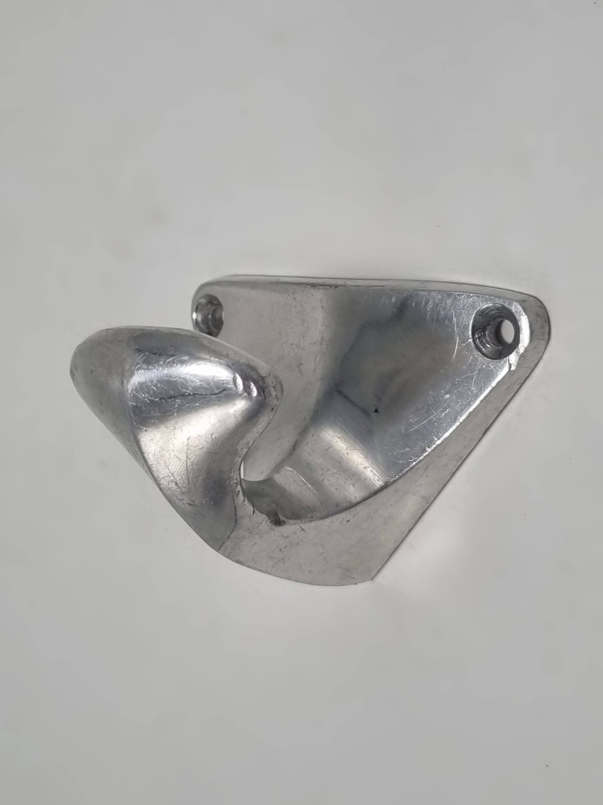 Vintage aluminum coat hook, probably dating from the 1950s-1960s. Vintage piece showing scratches and signs of use, which attest to its authenticity. Dimensions: 8 x 5.5 x 5.5 cm Weight: 80 g L: 8 W: 5.5 H: 5.5